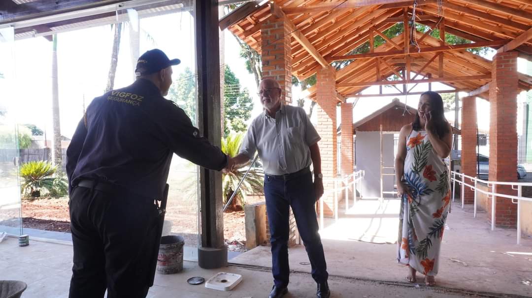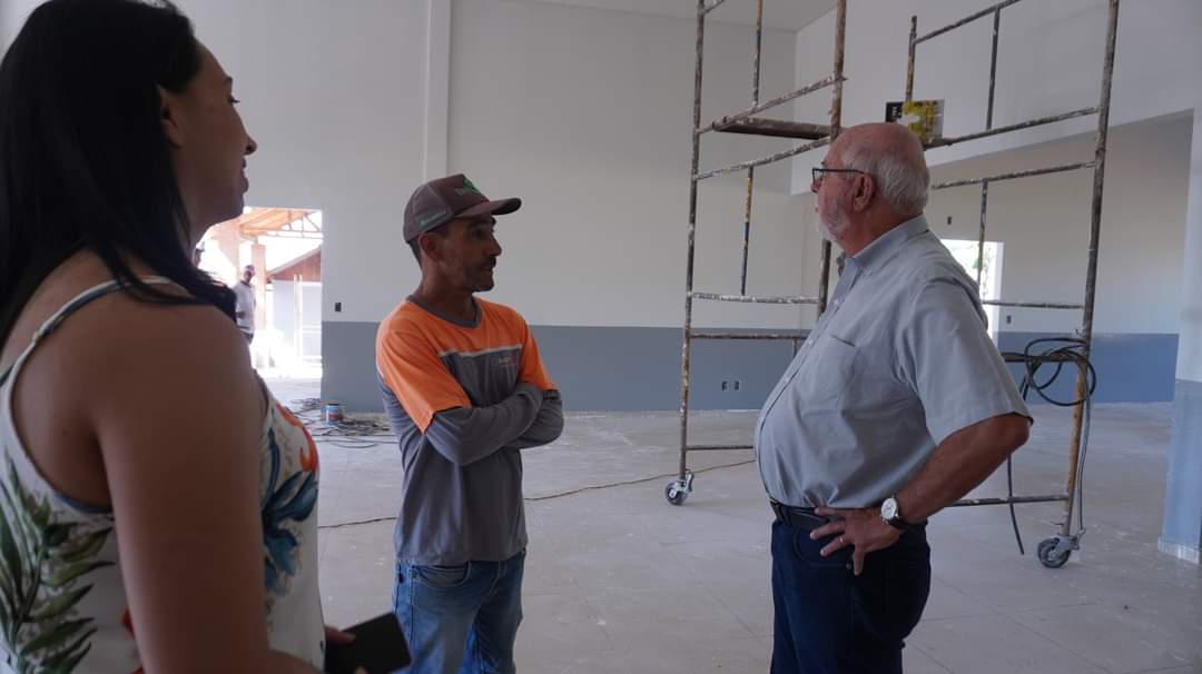 O prefeito Ailton Maistro e a secretária de Assistência Social Michele Pereira foram conferir o andamento da obra de reforma do prédio do Centro de Convivência do Idoso (CCI), situado na rua Antônio Campaner, 177, no Conjunto Domingos Neves.
