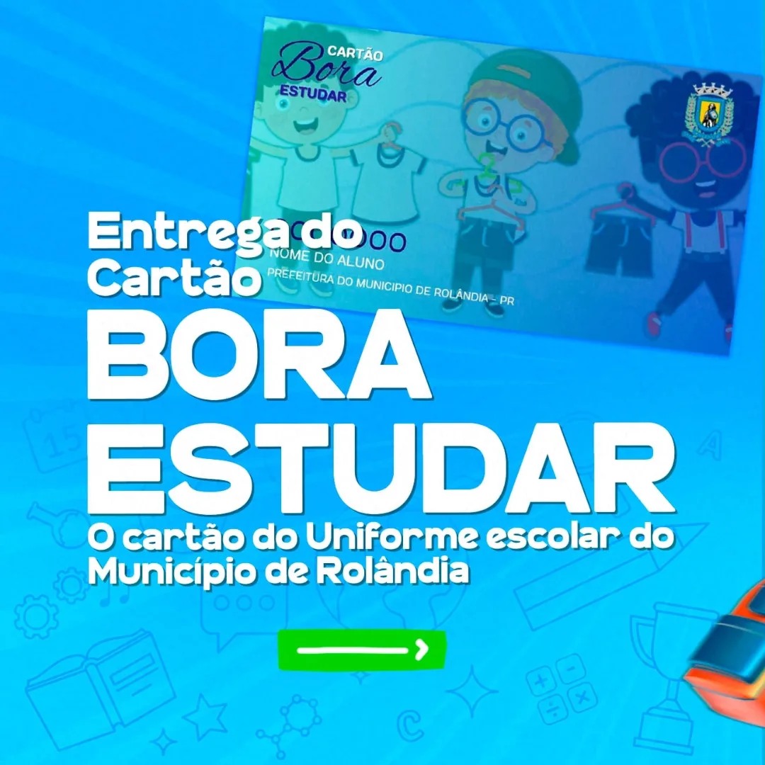 A Prefeitura de Rolândia, por meio da secretaria de Educação, vai entregar o cartão "Bora, estudar!" para que os responsáveis pelos alunos comprem o uniforme escolar das crianças!
