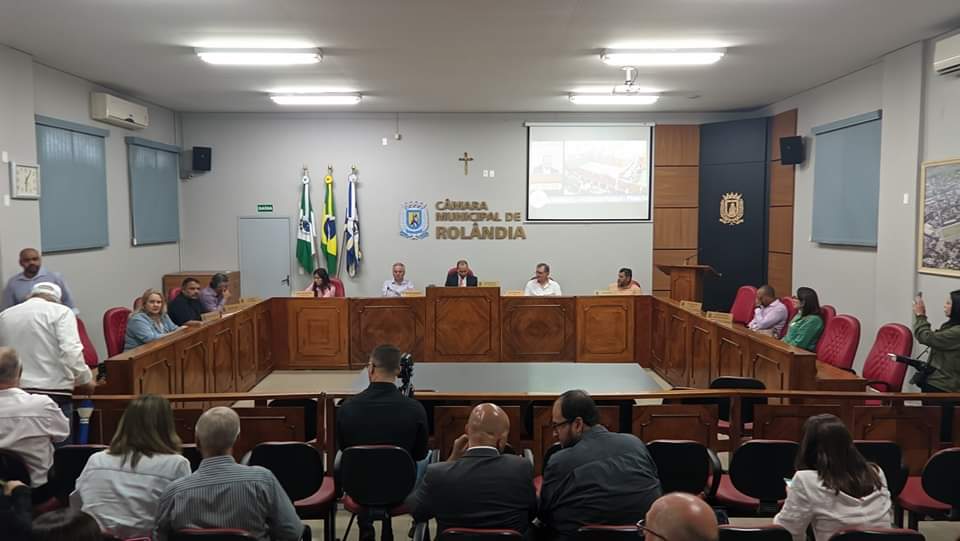 O prefeito Ailton Maistro, a primeira-dama Ana Maria Mungo Maistro, o procurador Geral, Wilson Socio Júnior, o secretário de Planejamento Zeca Salgueiro, a secretária de Educação, Leise Camargo e o secretário de Esportes, Odyr Polaco acompanharam na noite desta quinta-feira (25), uma audiência pública realizada pela Comissão Especial Mista de Revisão do Plano Diretor de Rolândia (CEM - PD).