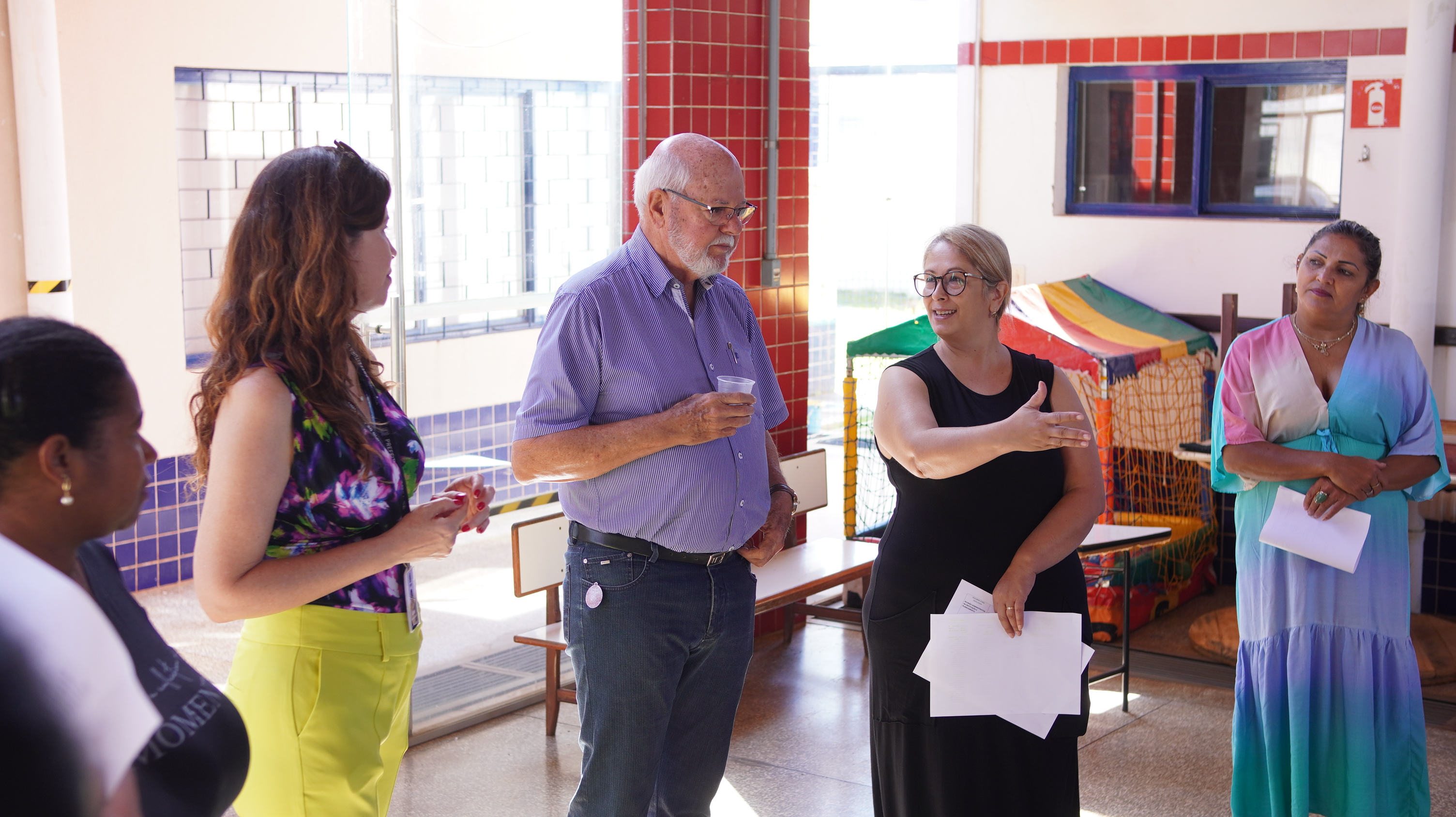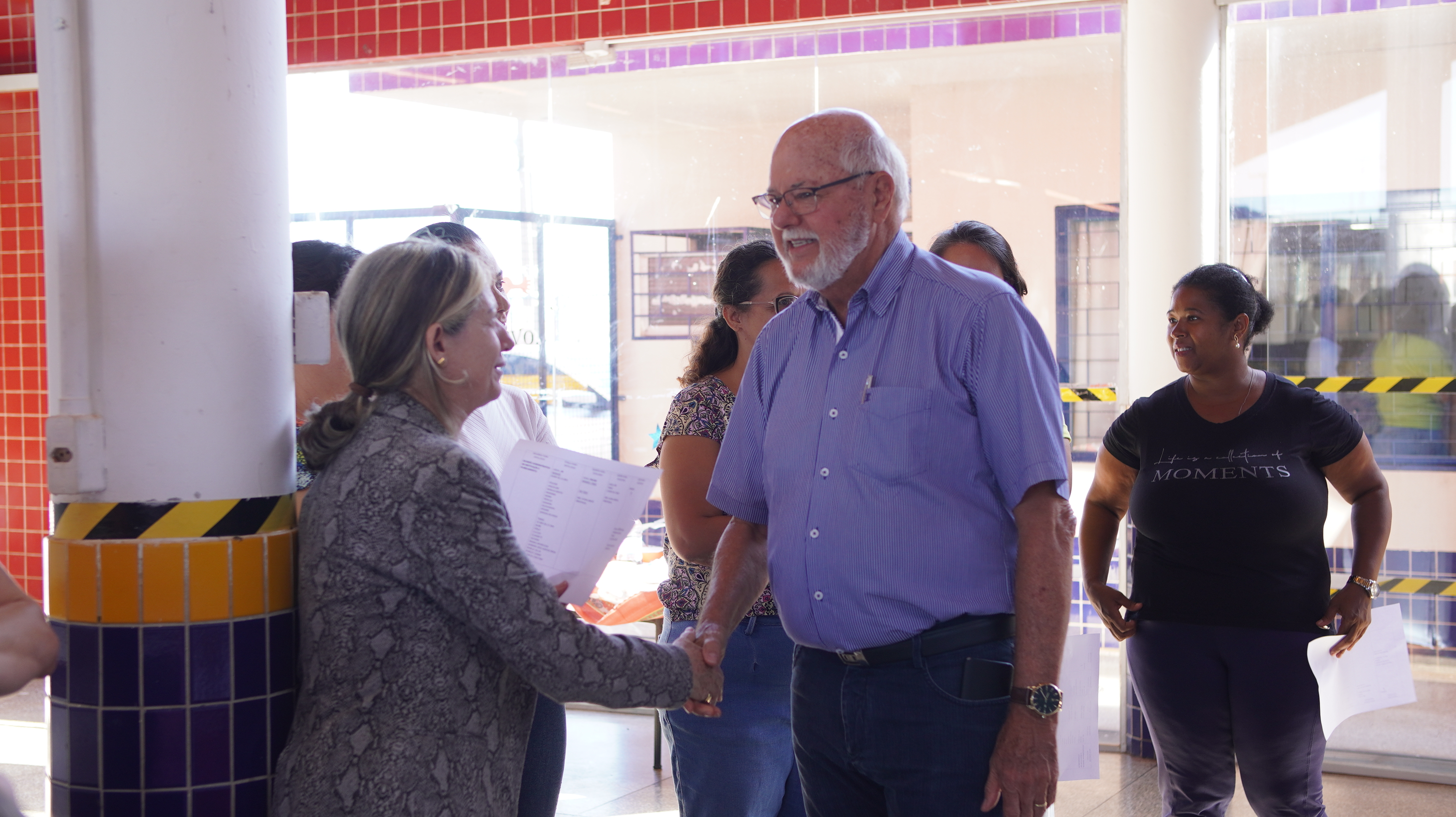 Maistro e Leise estiveram pela manhã na Geralda Chaves Tiradentes, com a diretora Gisele Segatel e equipe; na escola Monteiro Lobato (Santiago) com a diretora Vanessa Balsan e equipe; e nos Centros Municipais de Educação Infantil (CMEI´s) São Josemaria Escrivá (Jardim Santiago) – com a diretora Maria Neide Nascimento e equipe; Hans Helmut Behrend (San Fernando) – com a diretora Selma Soares e equipe; e no Zilda Arns (San Fernando) – com a diretora Sandra Reverso e equipe.