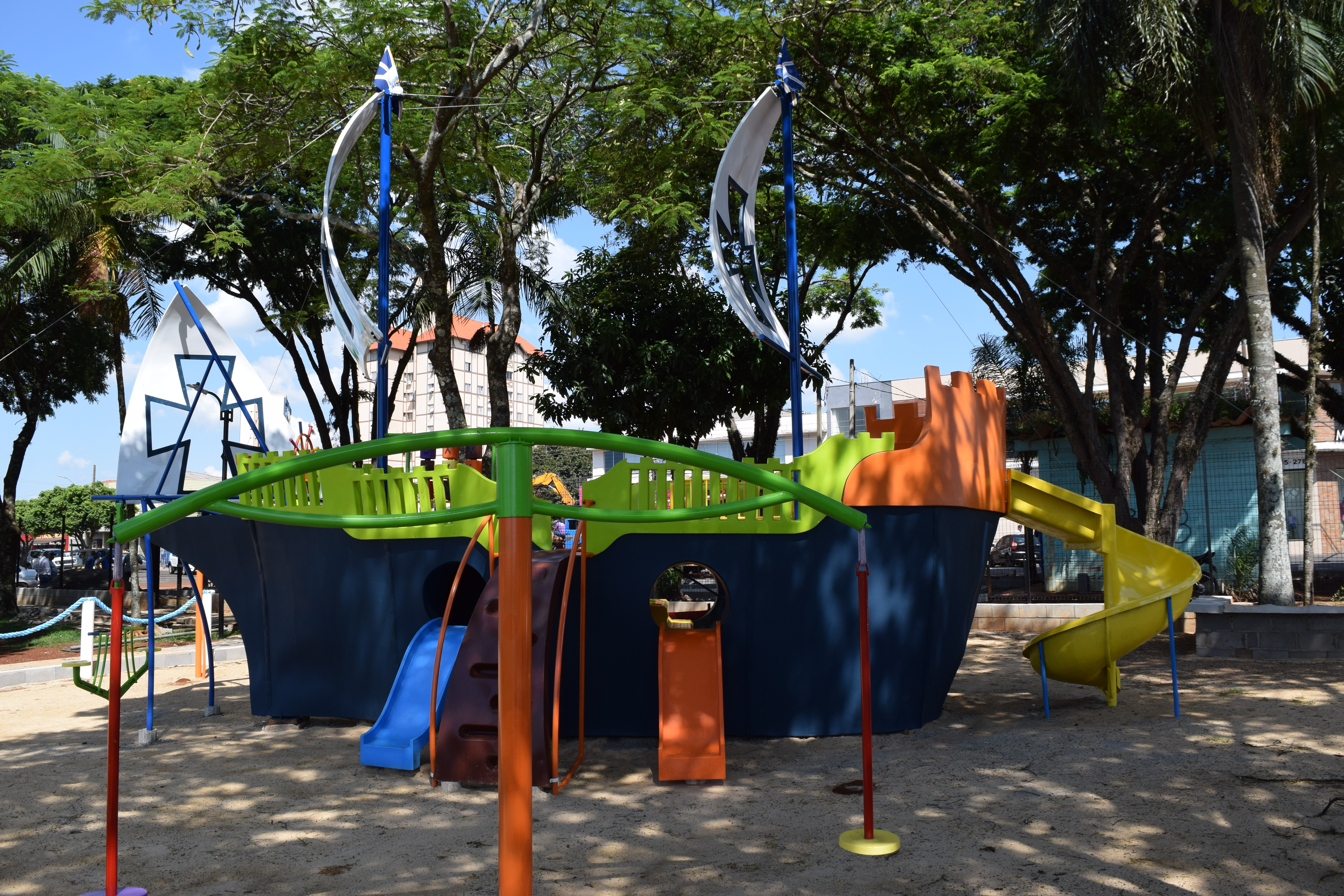 A secretaria de Serviços Públicos está concluindo a instalação do parque temático infantil na Praça Castelo Branco, na região central de Rolândia.