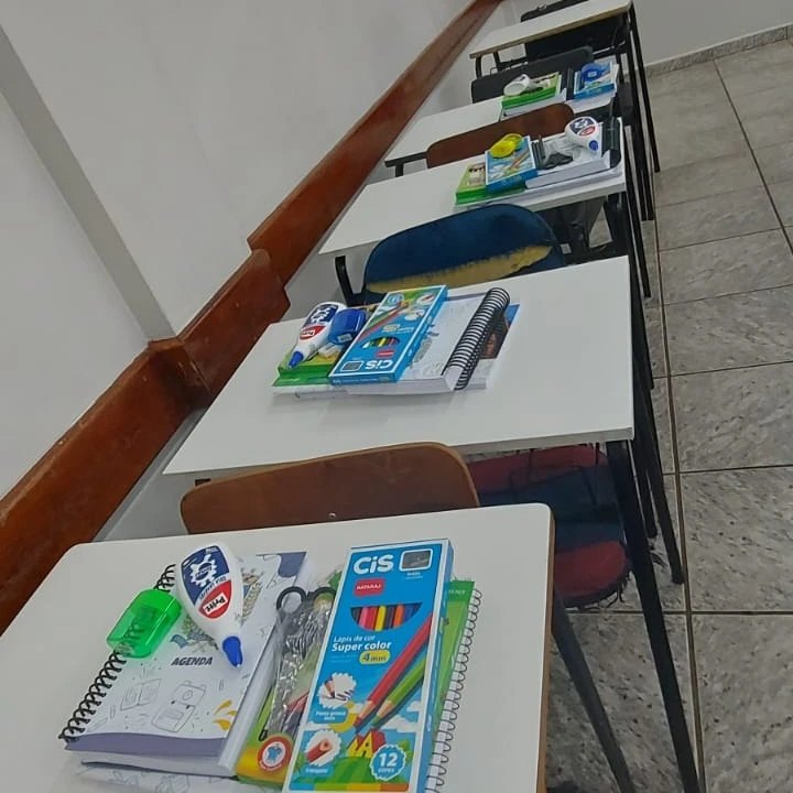 Na chegada, os materiais escolares estavam disponíveis e os estudantes já iniciaram muito bem o ano letivo! A pedagoga da unidade é Kelly Cristina Pinho!