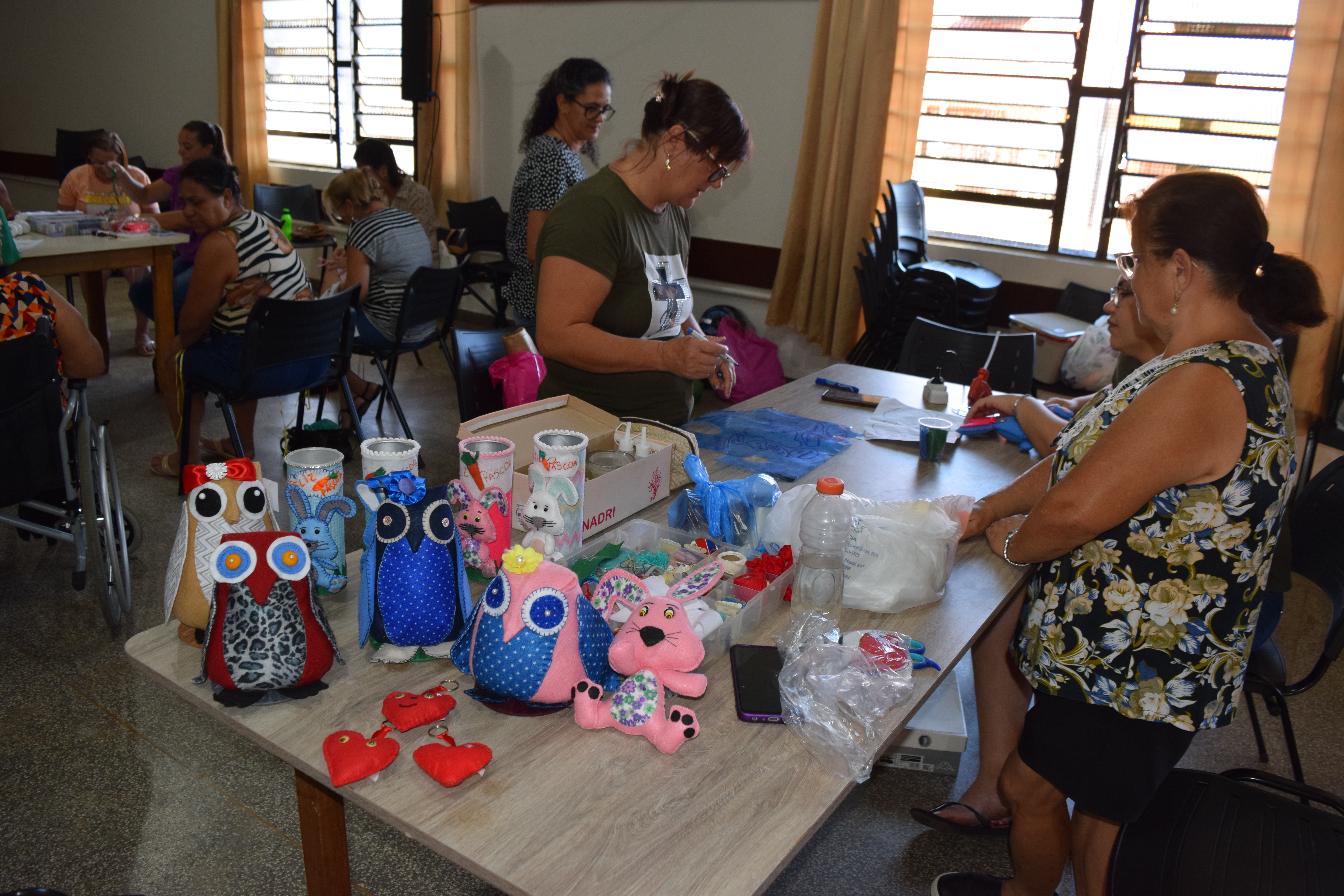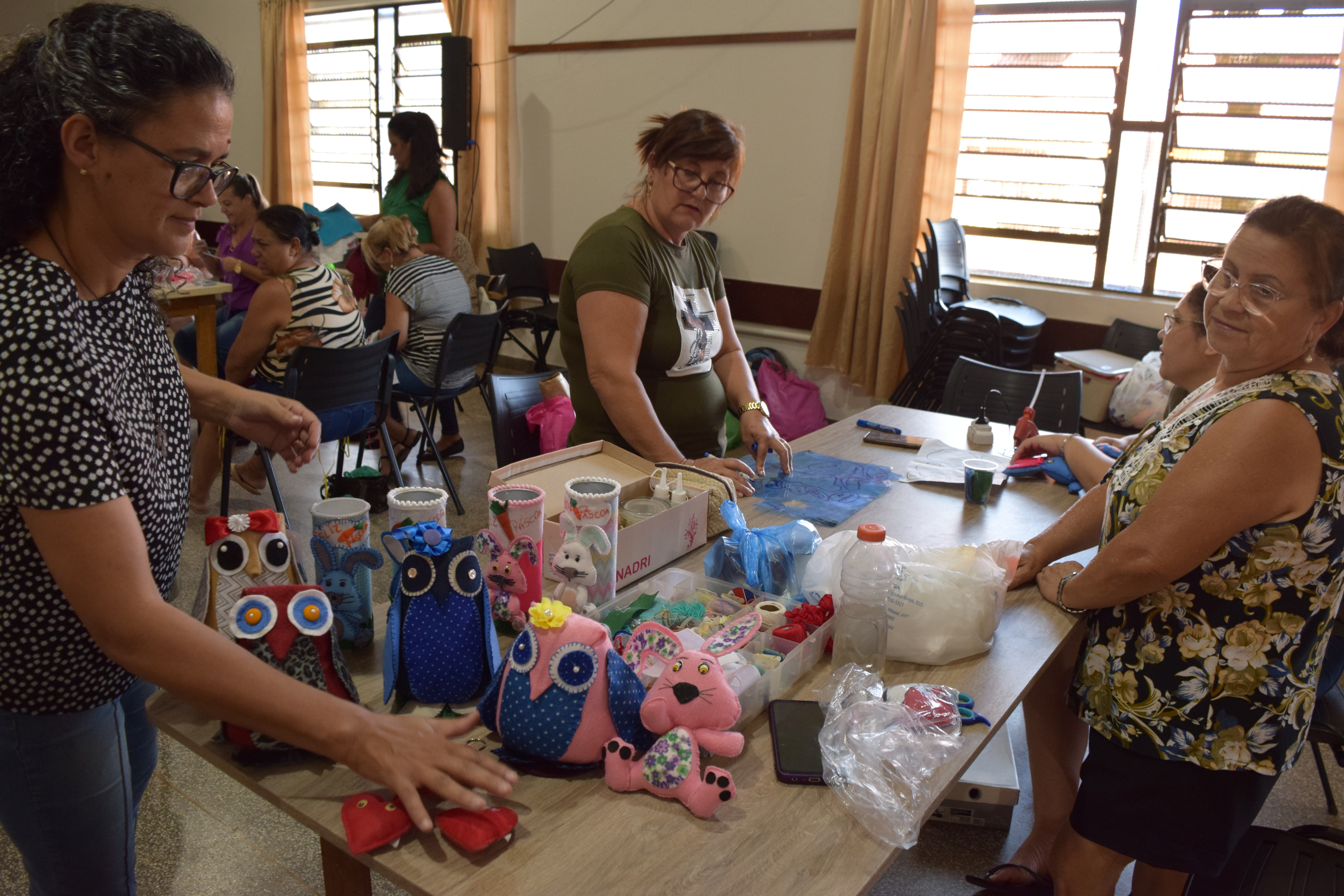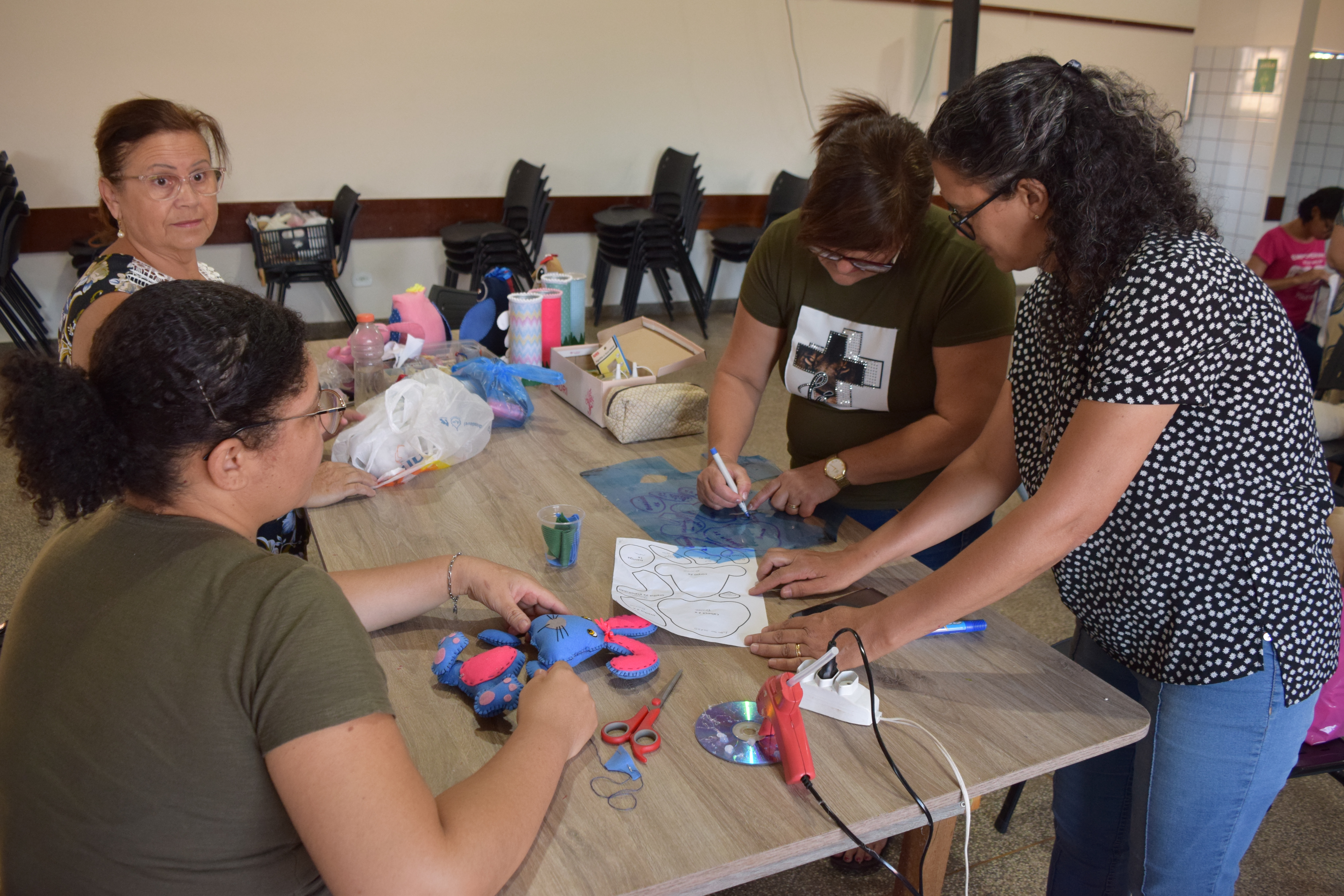 Pelos menos 25 mulheres de vários bairros participam do curso gratuito de costura criativa, crochê amigurumi e utilização de recicláveis que são ministrados pelas professoras Luciene Gomes de Sá Freitag, Eupídia Aparecida Riva e Rosangela Gonçalves.