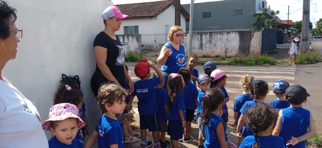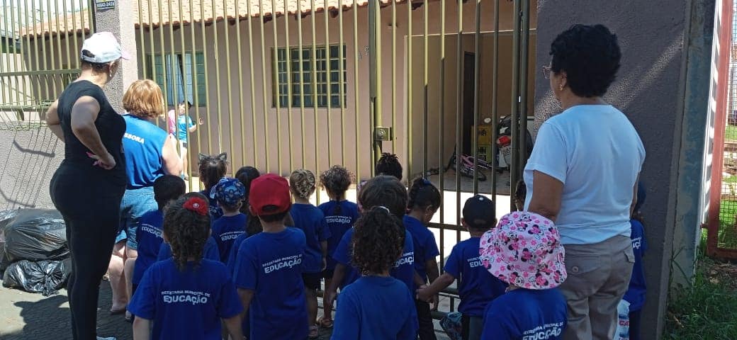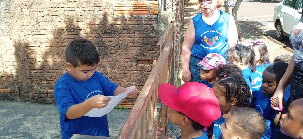 A turma do Infantil 3 G, do período vespertino, das professoras Dolores Lopes e Adriana Cristina Fernandes do Cmei Marly do Nascimento Santos, do Parigot de Souza, realizou uma caminhada no dia 3 de abril ao redor da instituição com o objetivo de observar como estavam os quintais das casas e as ruas.