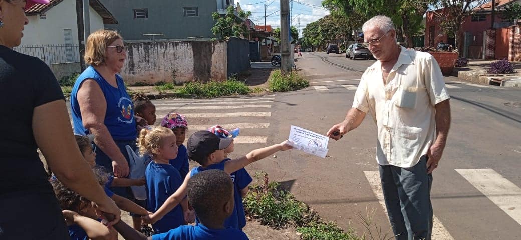As próprias crianças entregaram esse material às pessoas das casas e das ruas com a ajuda da professora, algumas até conseguiram explicar sozinhas o que cada um precisa fazer para evitar o aumento de casos de dengue.