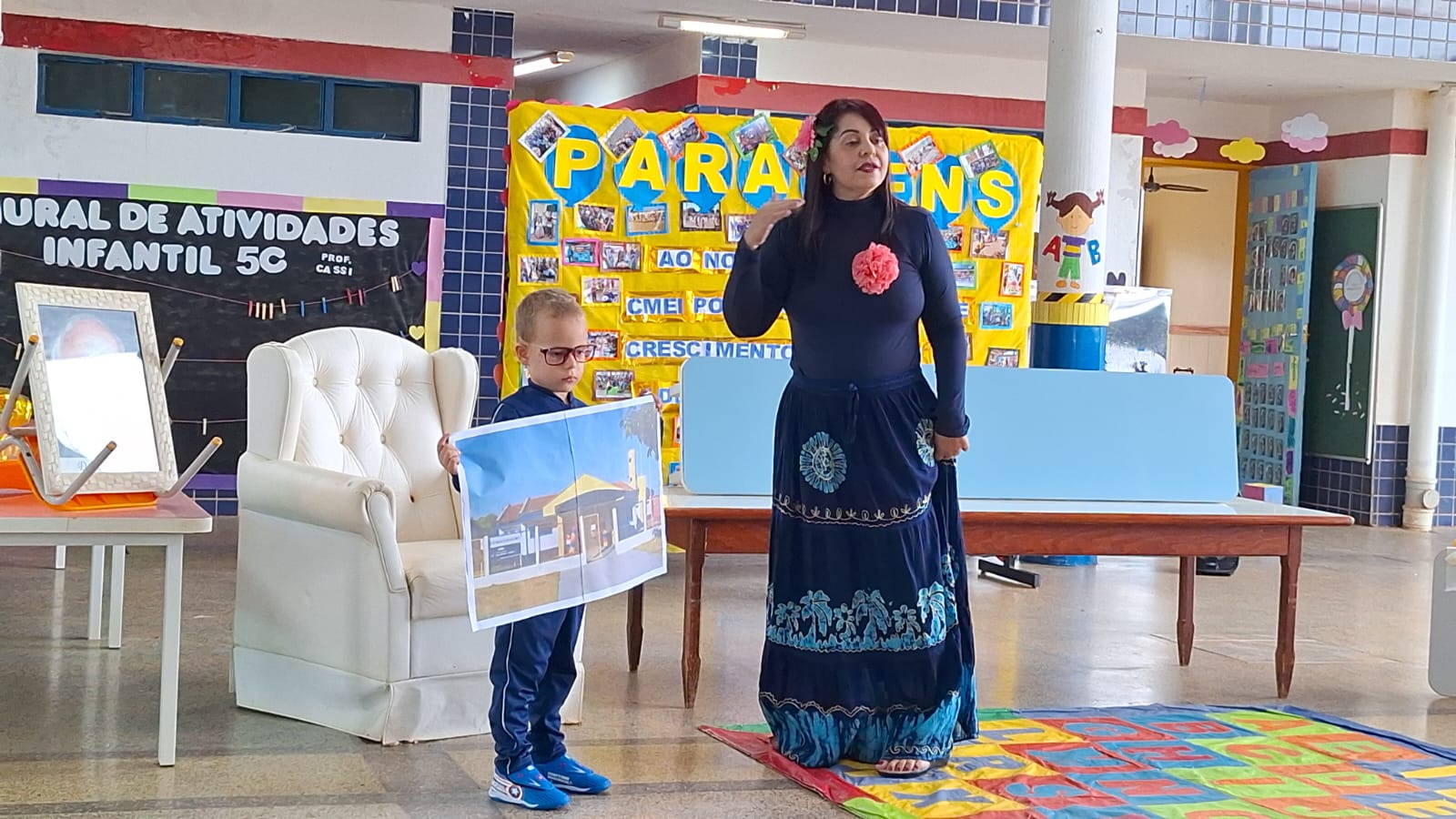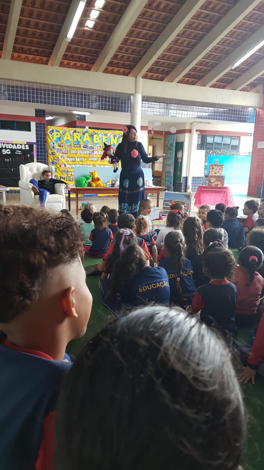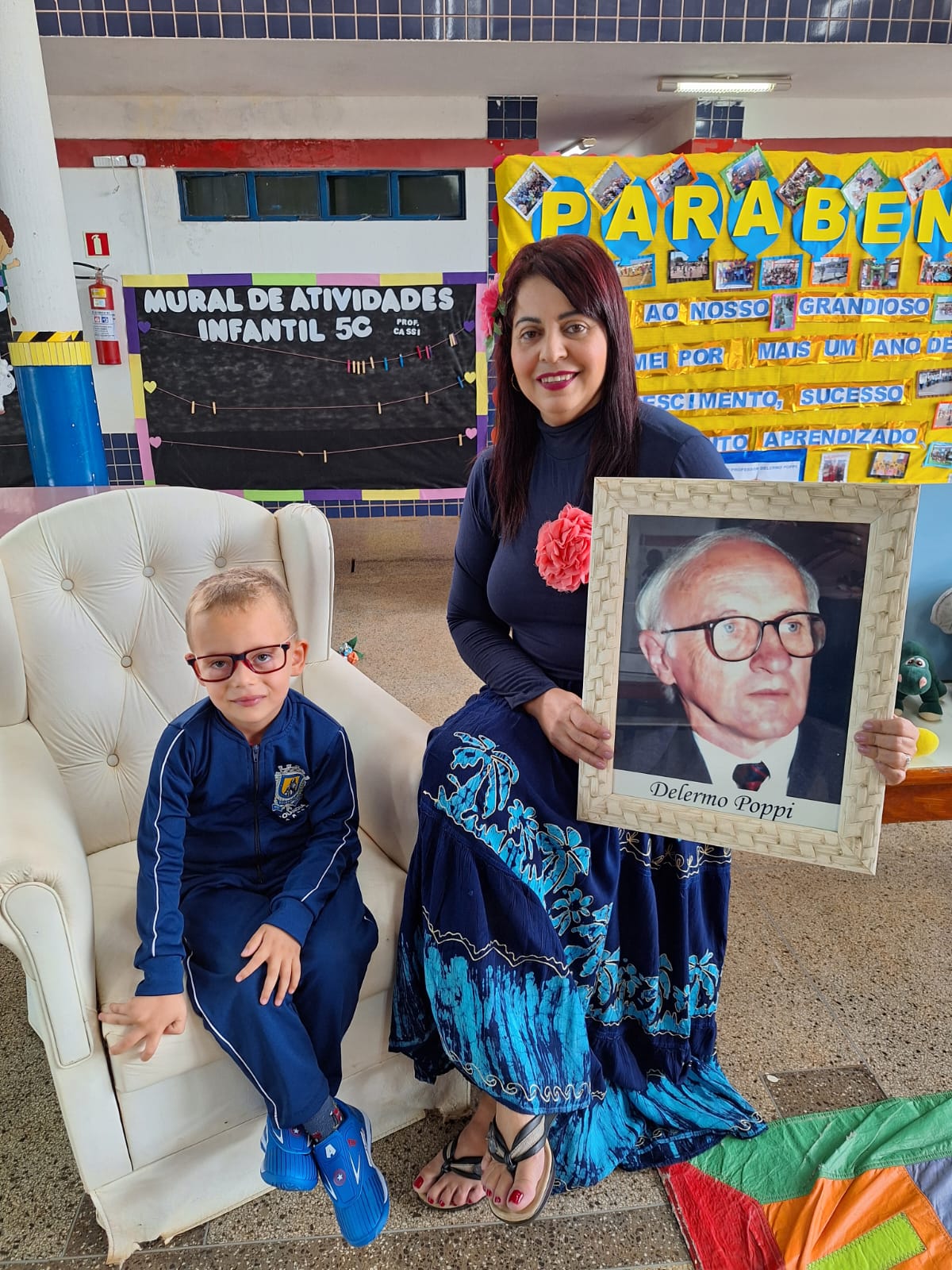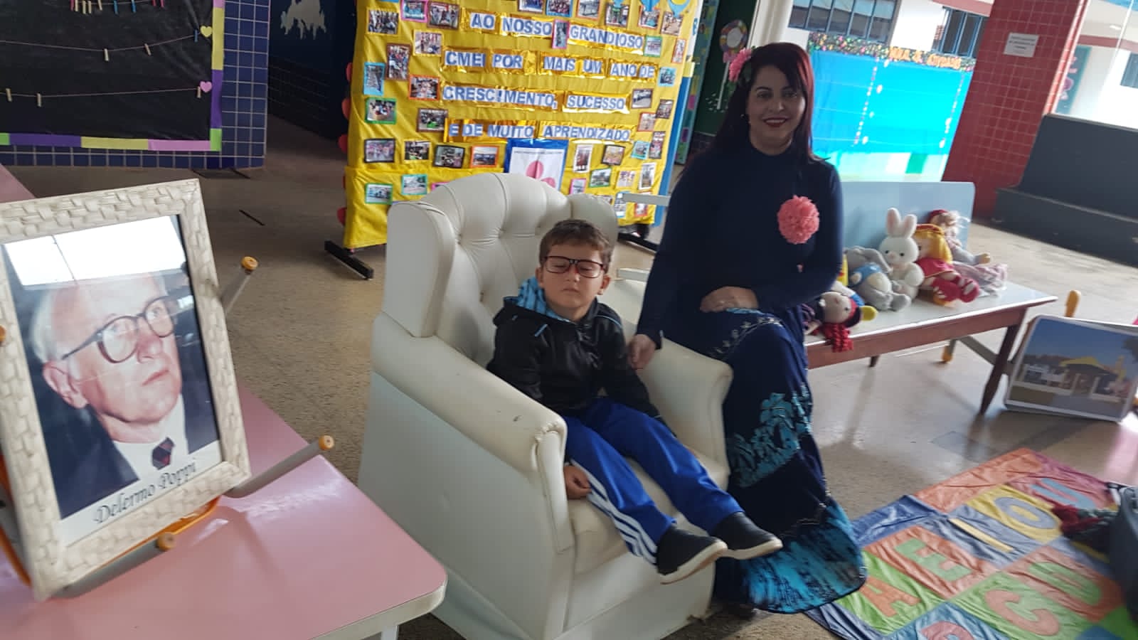 O dia foi comemorado com apresentações de músicas, histórias e até uma homenagem feita ao Professor Delermo Poppi, o qual deu o nome ao centro de educação infantil.