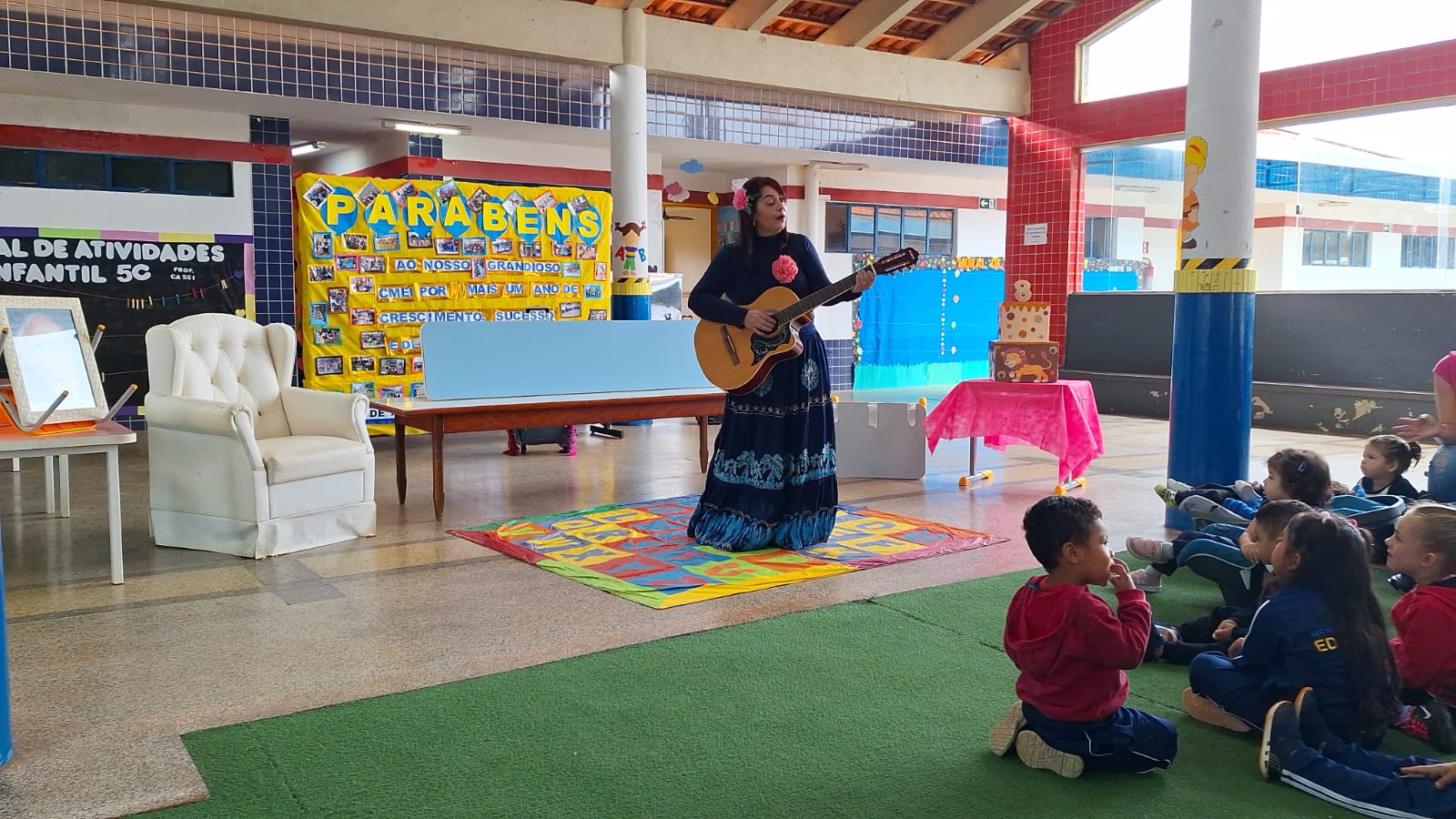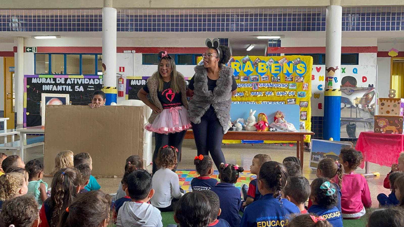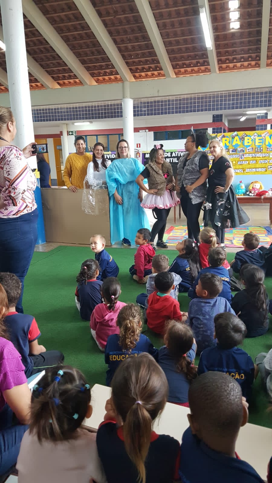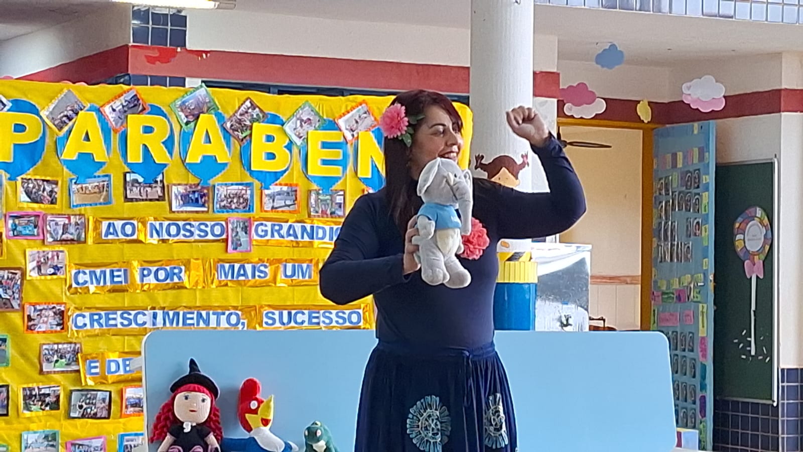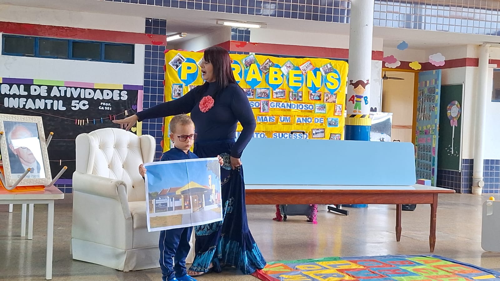 O dia foi comemorado com apresentações de músicas, histórias e até uma homenagem feita ao Professor Delermo Poppi, o qual deu o nome ao centro de educação infantil.