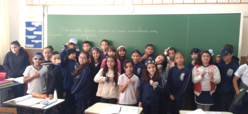 Alunos da Escola Municipal Arthur da Costa e Silva, centro, se vestem de azul em referência ao mês de abril, mês de conscientização e conhecimento sobre o autismo.