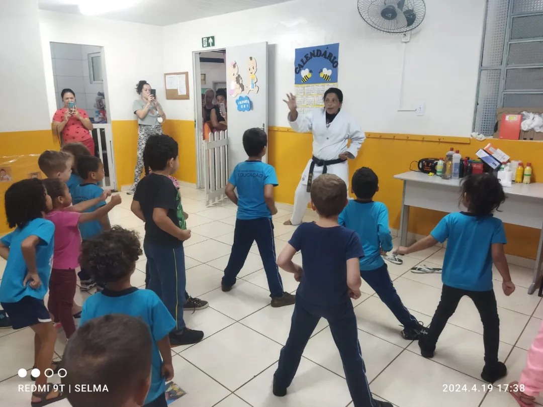 O Centro Municipal de Educação Infantil (Cmei) Hans Helmut Behrend, no San Fernando, junto com a Academia Vera Karatê, da Sensei Vera Araújo, está oferecendo aulas gratuitas para os alunos matriculados na instituição.