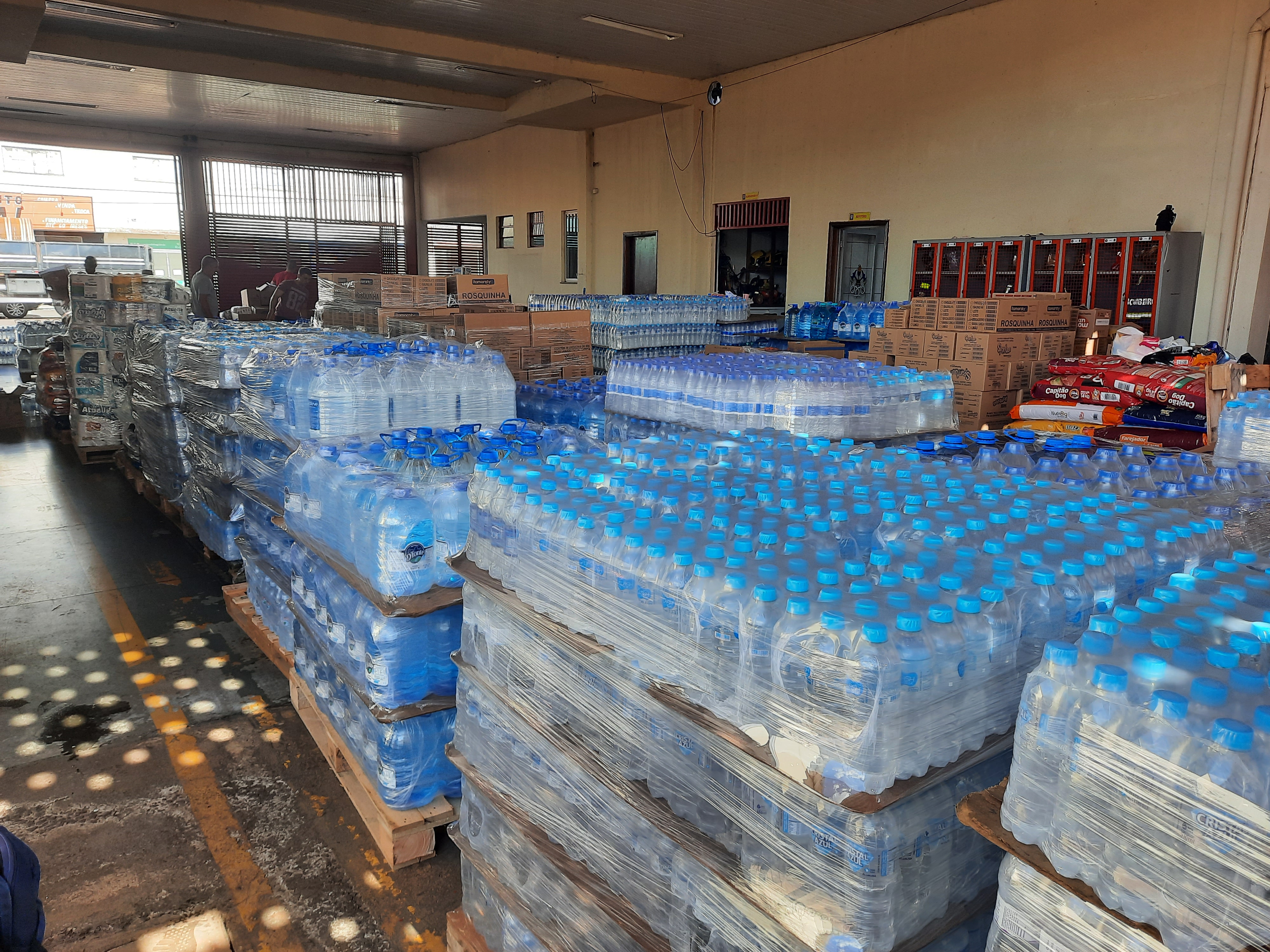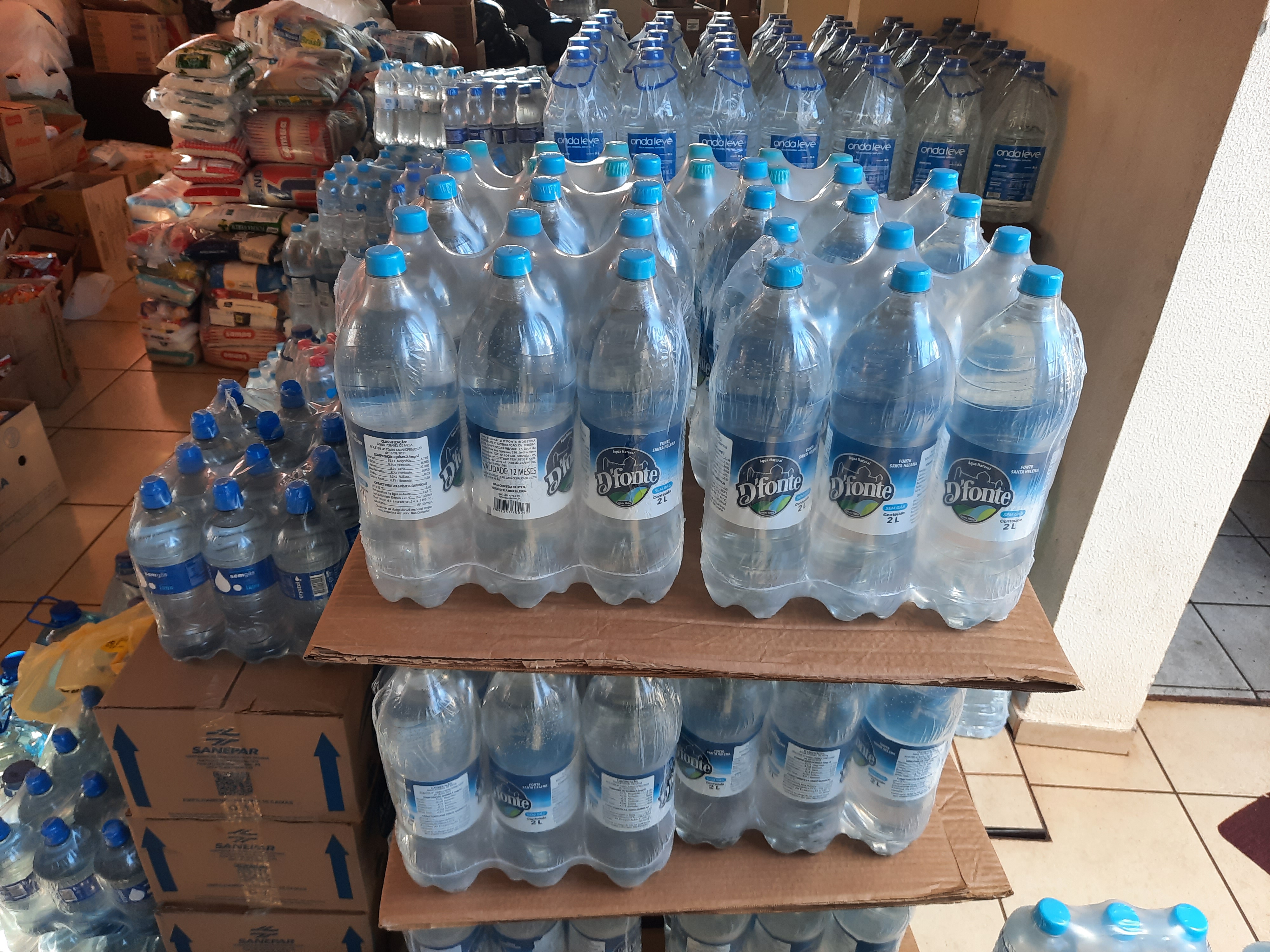 Mais de 18 mil litros de água e mais de seis toneladas de alimentos foram arrecadados até o momento entre outros donativos.