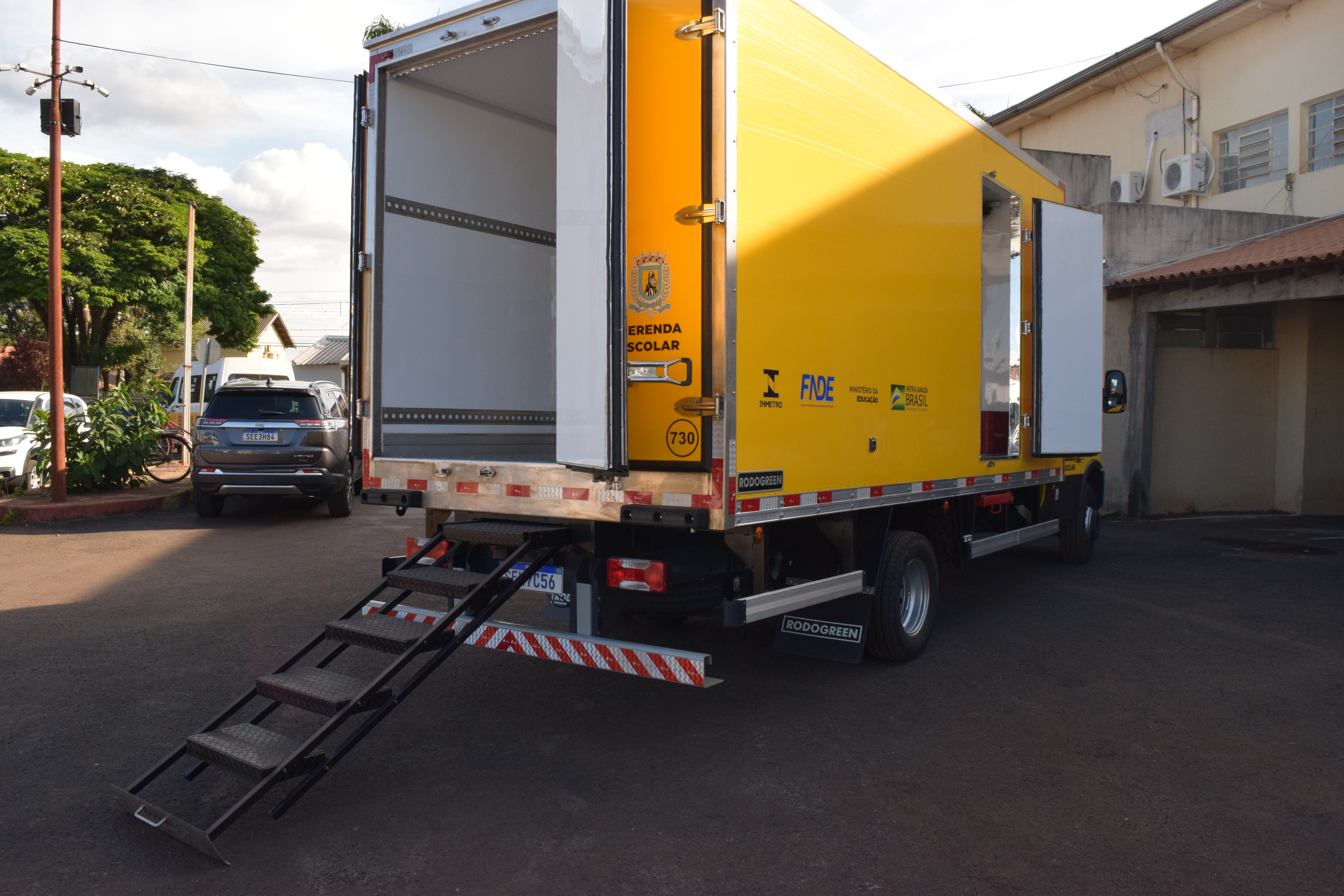 Eles conferiram o andamento do trabalho do caminhão frigorífico, que faz o transporte dos alimentos da merenda escolar da rede municipal de ensino.