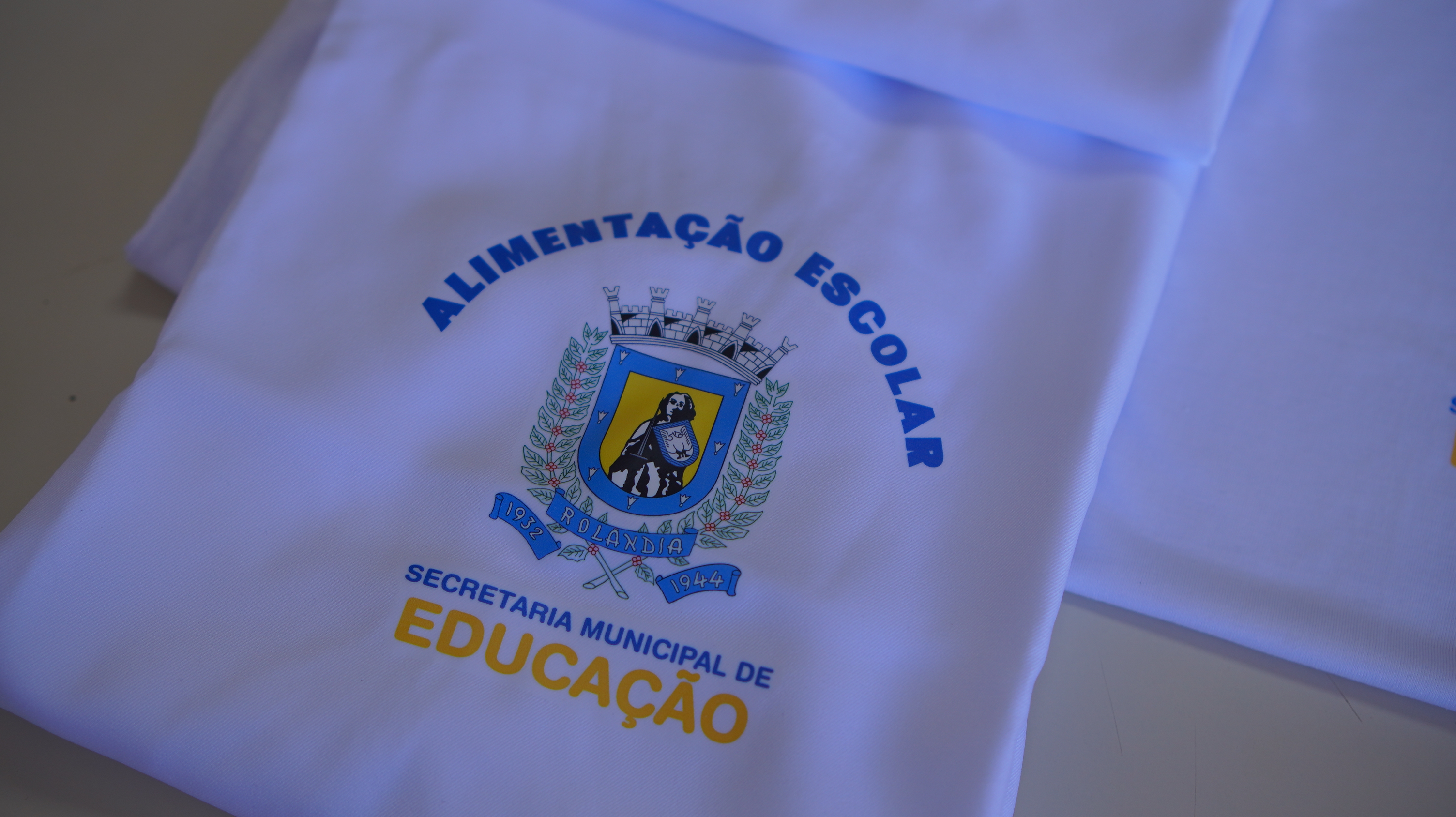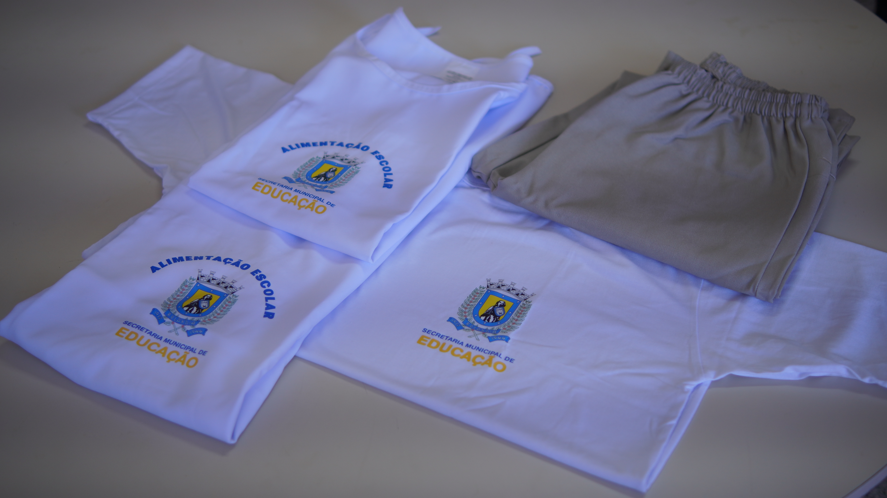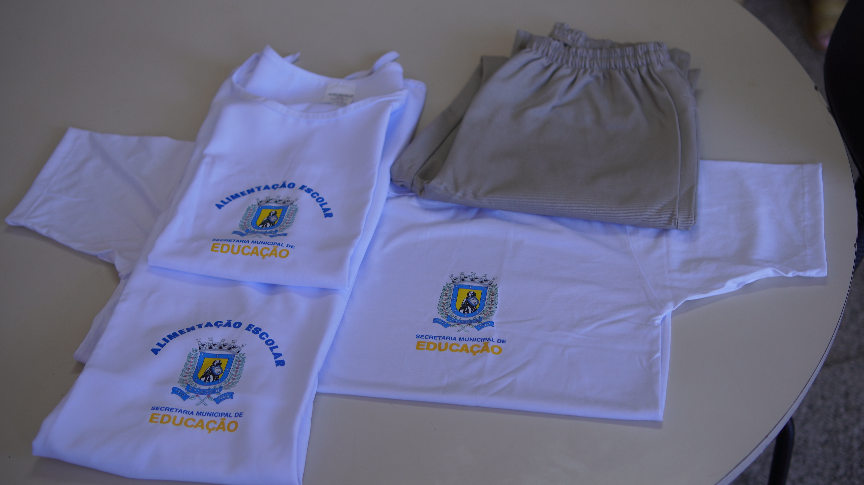O uniforme das merendeiras é completo e composto de camiseta, jaleco, calça e sapato e o pessoal da limpeza um jaleco.
