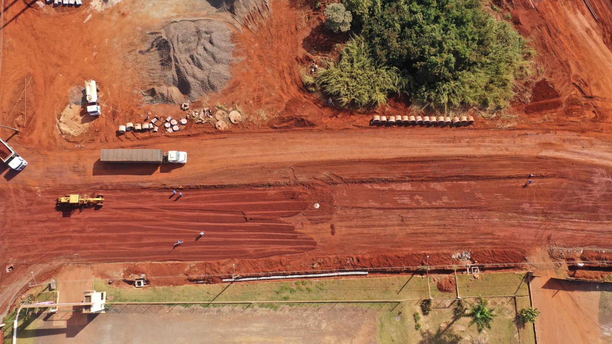 Agora, já está na fase de base para a pavimentação.
