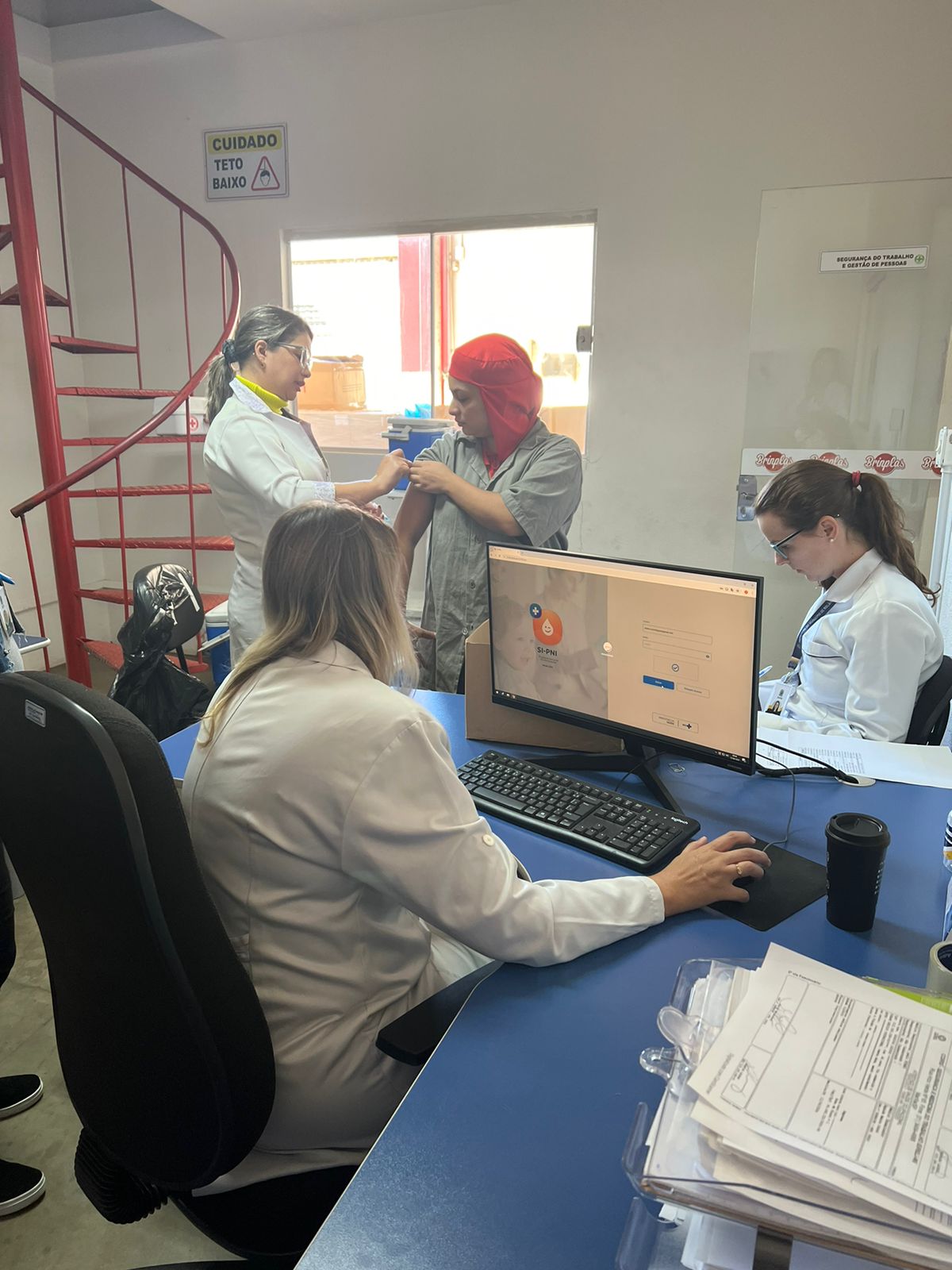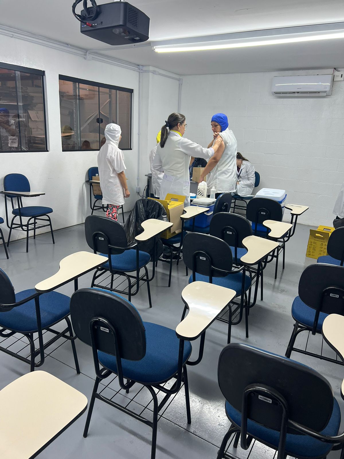 Nesta terça-feira (12), o trabalho de vacinação foi realizado na empresa Brinquedos União, onde foram aplicadas 145 doses da vacina em colaboradores.