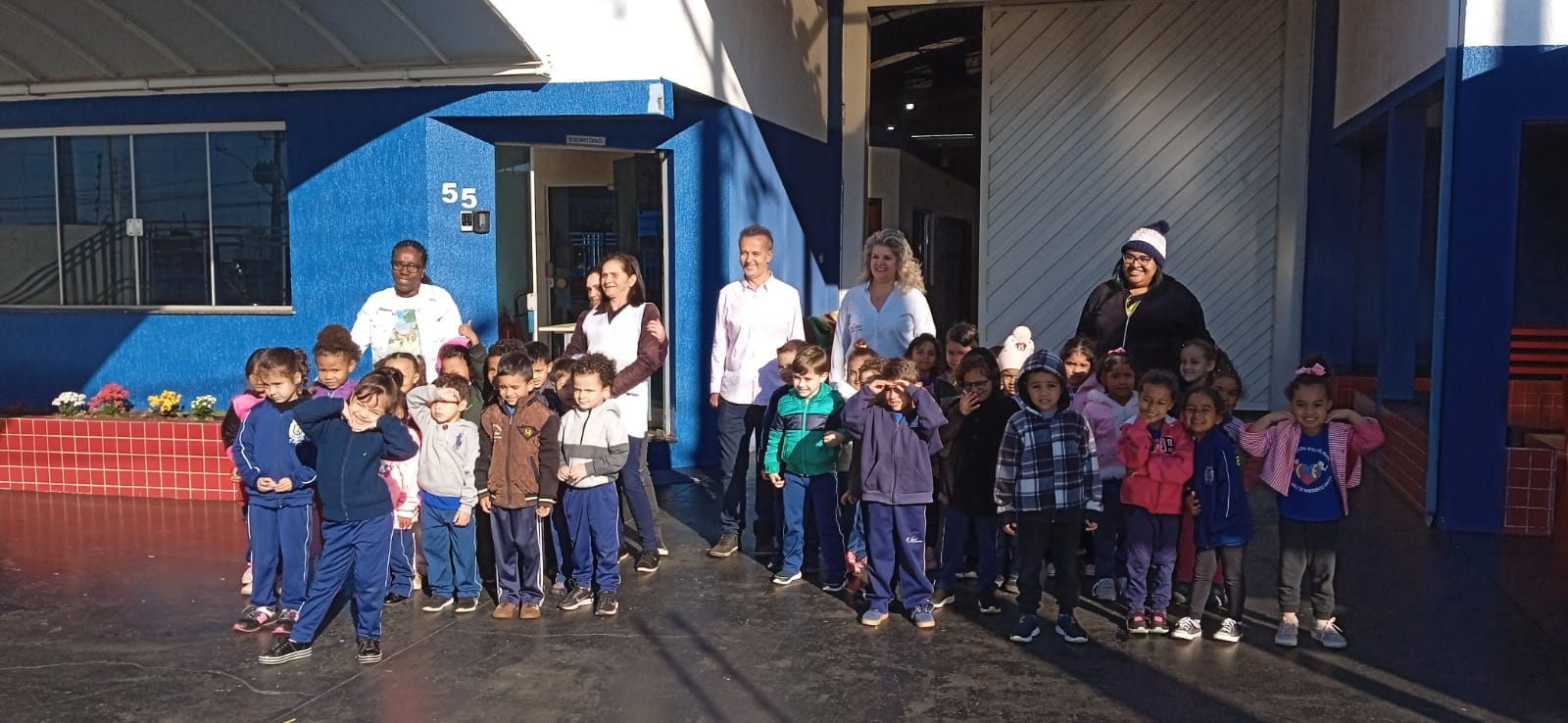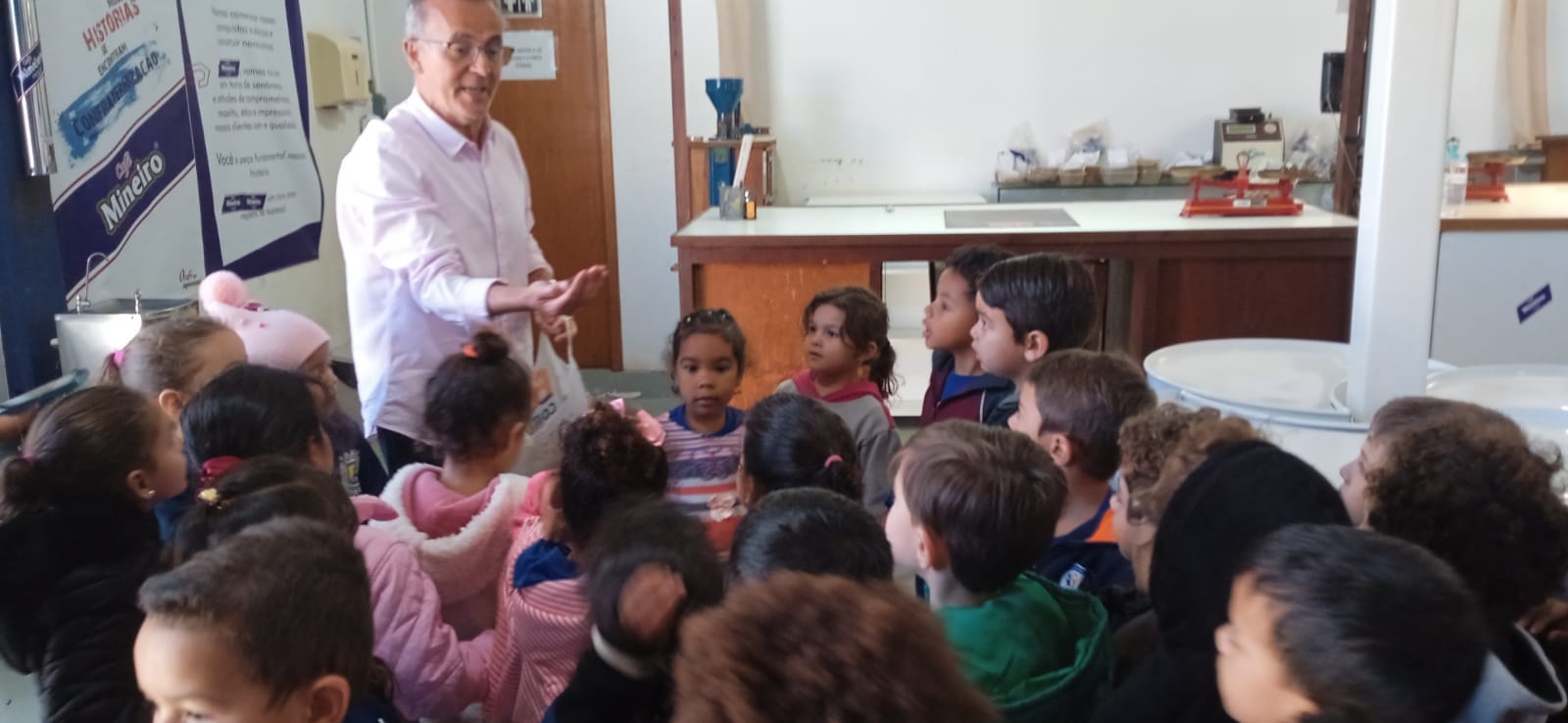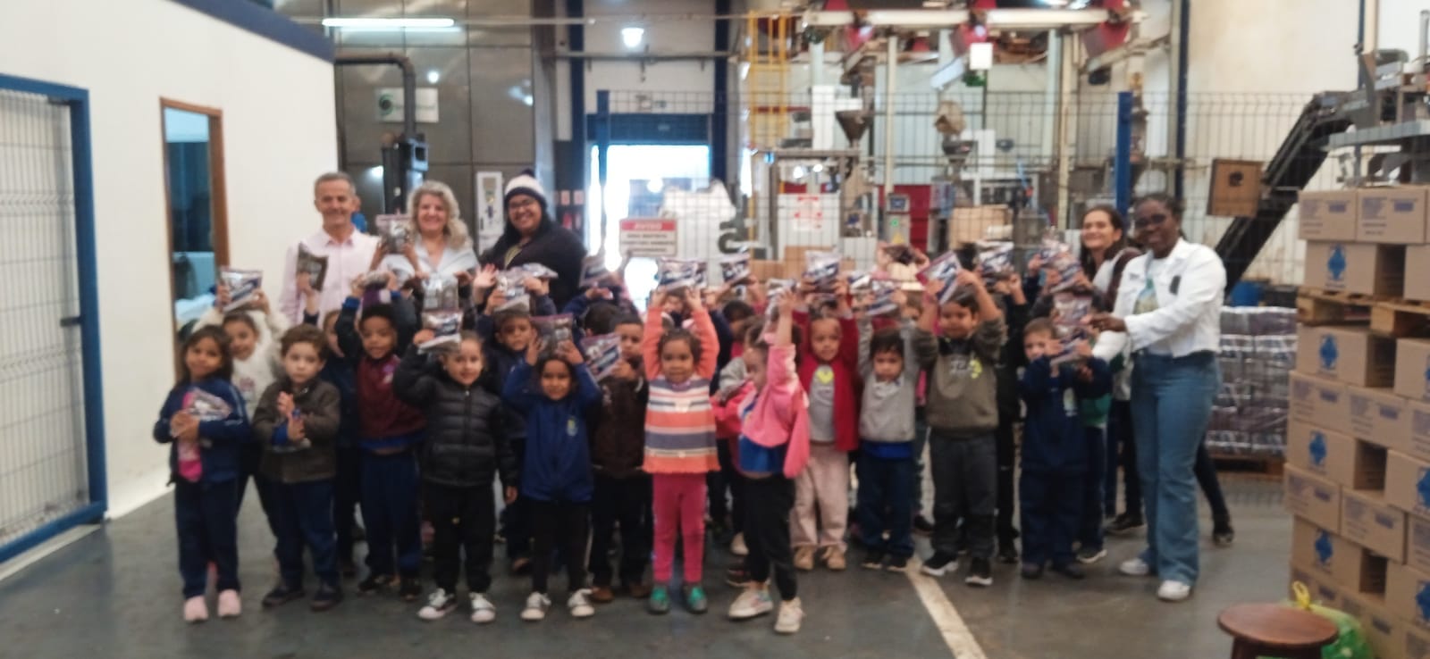 Na quarta-feira, dia 05 de junho, as turmas do Infantil 4 A, B, D e E das professoras Neusa Serafim Gomes e Rosemery Chabude Silva de Carvalho, do Cmei Marly do Nascimento Santos, do Parigot de Souza, dos dois turnos matutino e vespertino, visitaram a indústria do Café Mineiro do município de Rolândia.