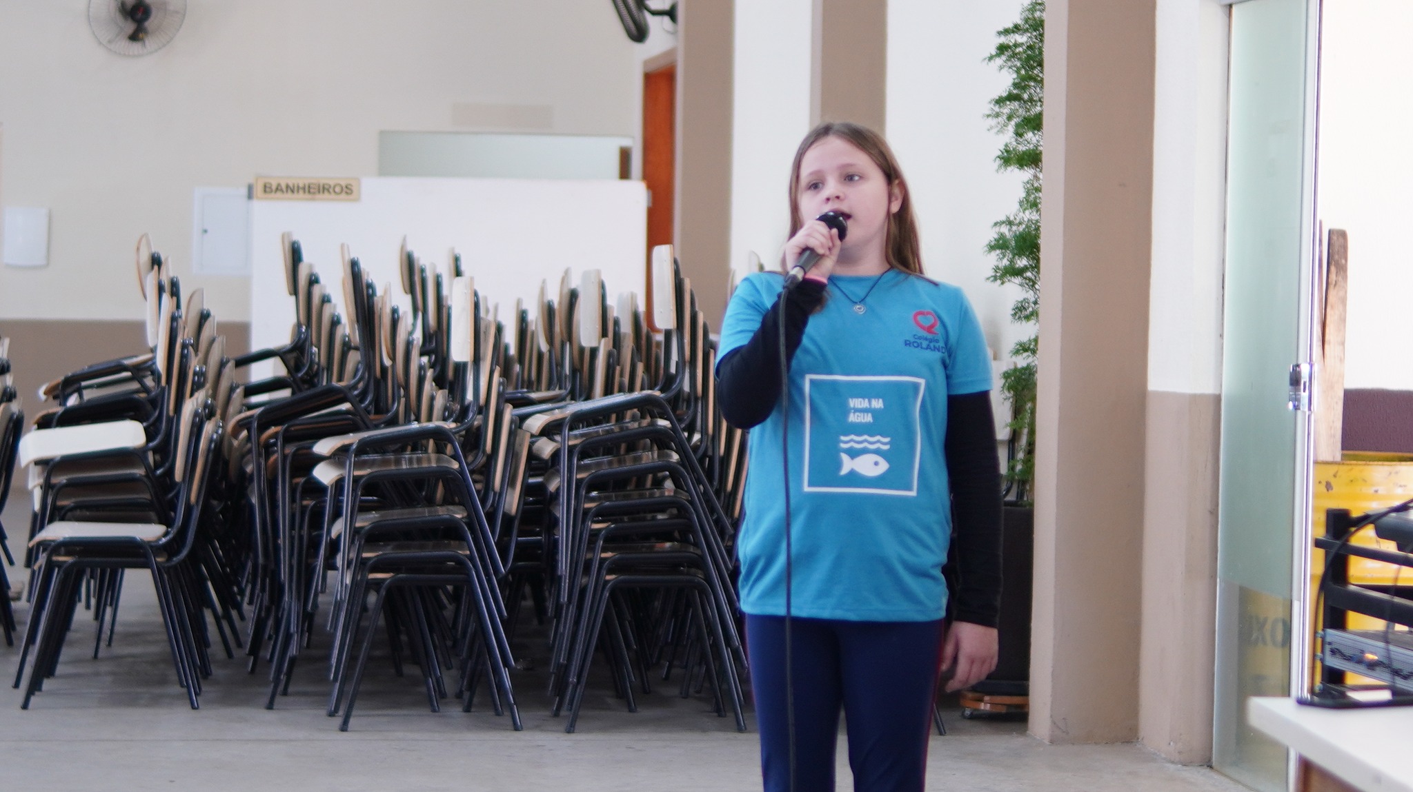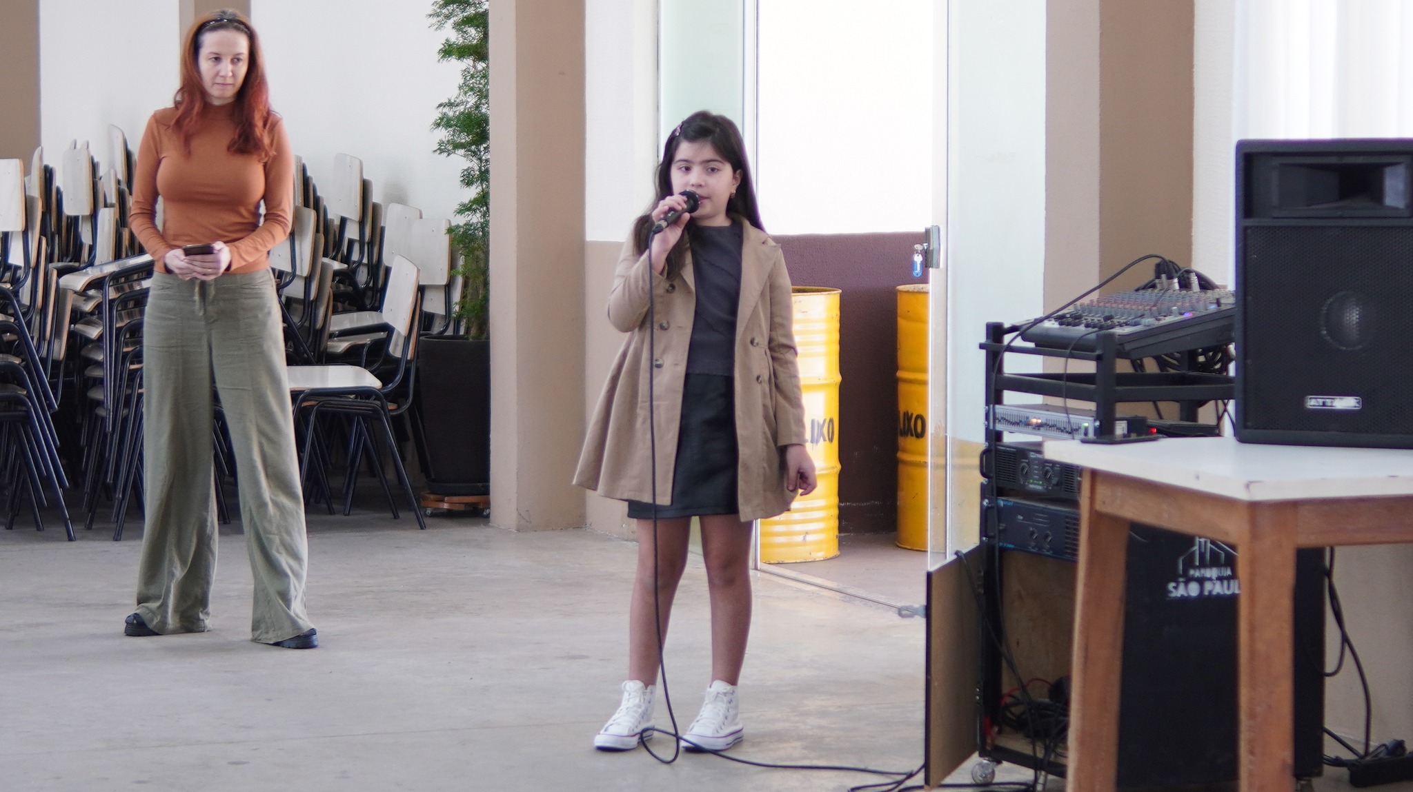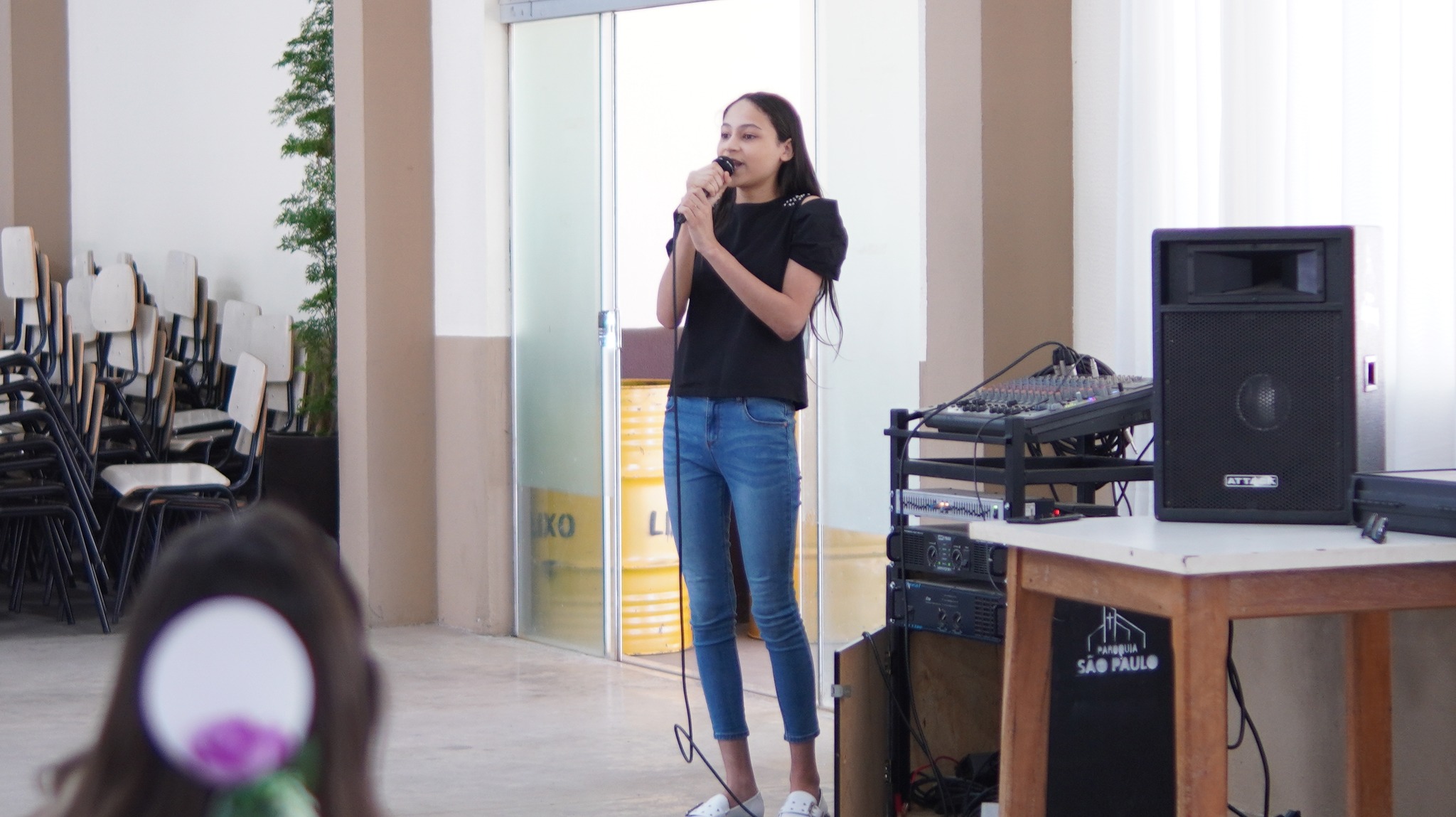 A professora Keidma Juliana levou seus alunos para fazerem uma apresentação musical aos presentes.