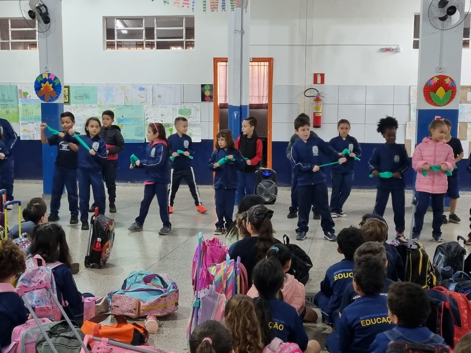 A dança trabalhou a imaginação, o movimento psicomotor e sensorial dos alunos.