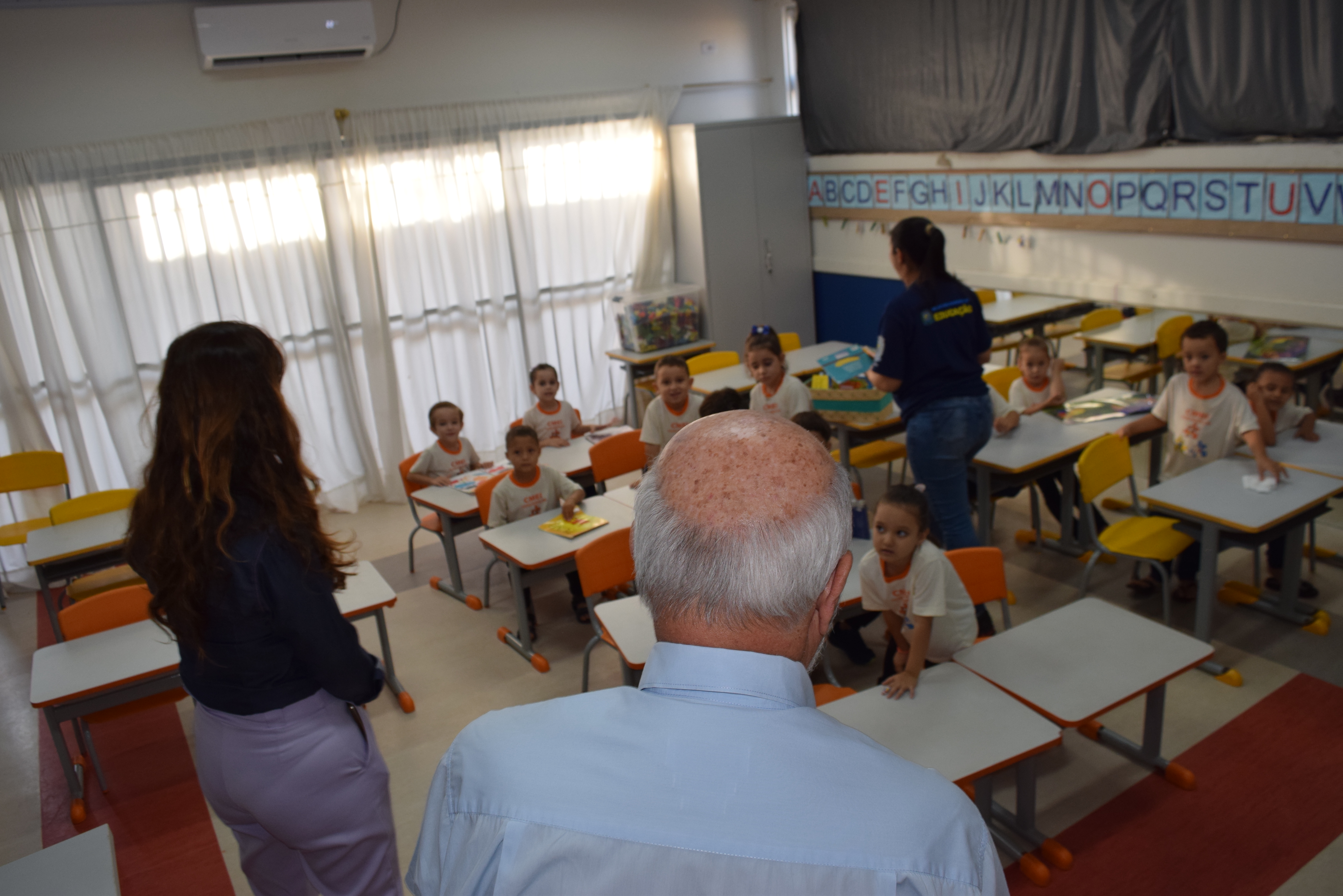 Como parte do projeto, a direção do CMEI através da sua diretora Flaviane Ramos Moreira e sua coordenadora pedagógica, Luciana Di Pietro convidaram o prefeito Ailton Maistro para conferir os trabalhos.