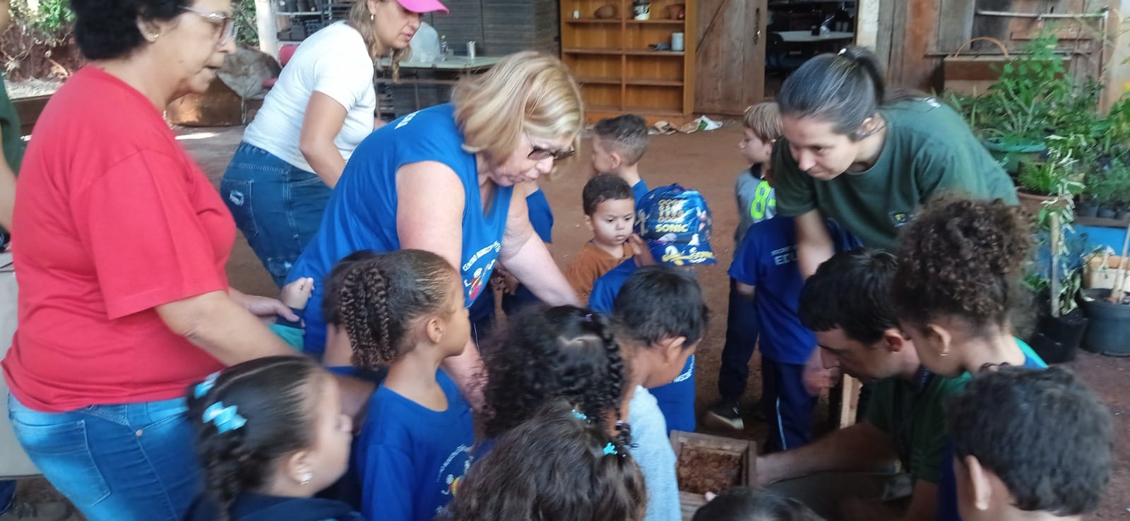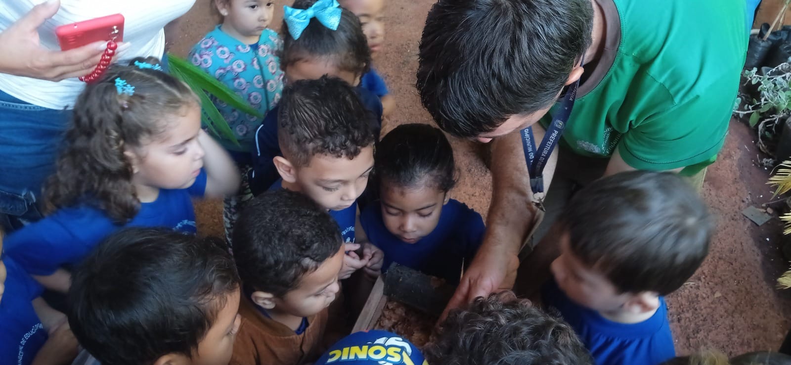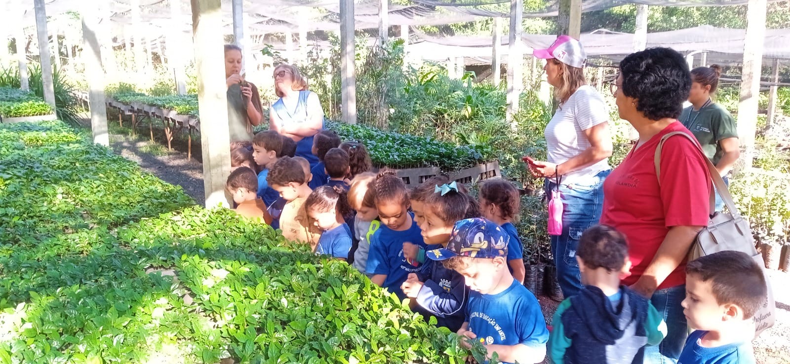 No dia 20 de junho a turma do Infantil 3 E do período matutino, da professora Adriana Cristina Fernandes, e a turma do Infantil 3 G do período vespertino, da professora Dolores de Oliveira Lopes, do Cmei Marly do Nascimento Santos, do conjunto Parigot de Souza, visitaram o Viveiro Municipal de Rolândia.
