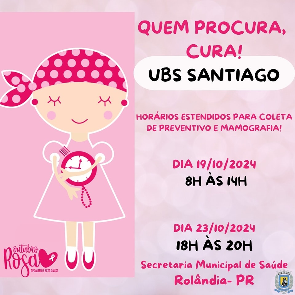 A secretaria de Saúde adotou para o “Outubro Rosa”, em Rolândia, o tema “Quem procura, cura!”.
