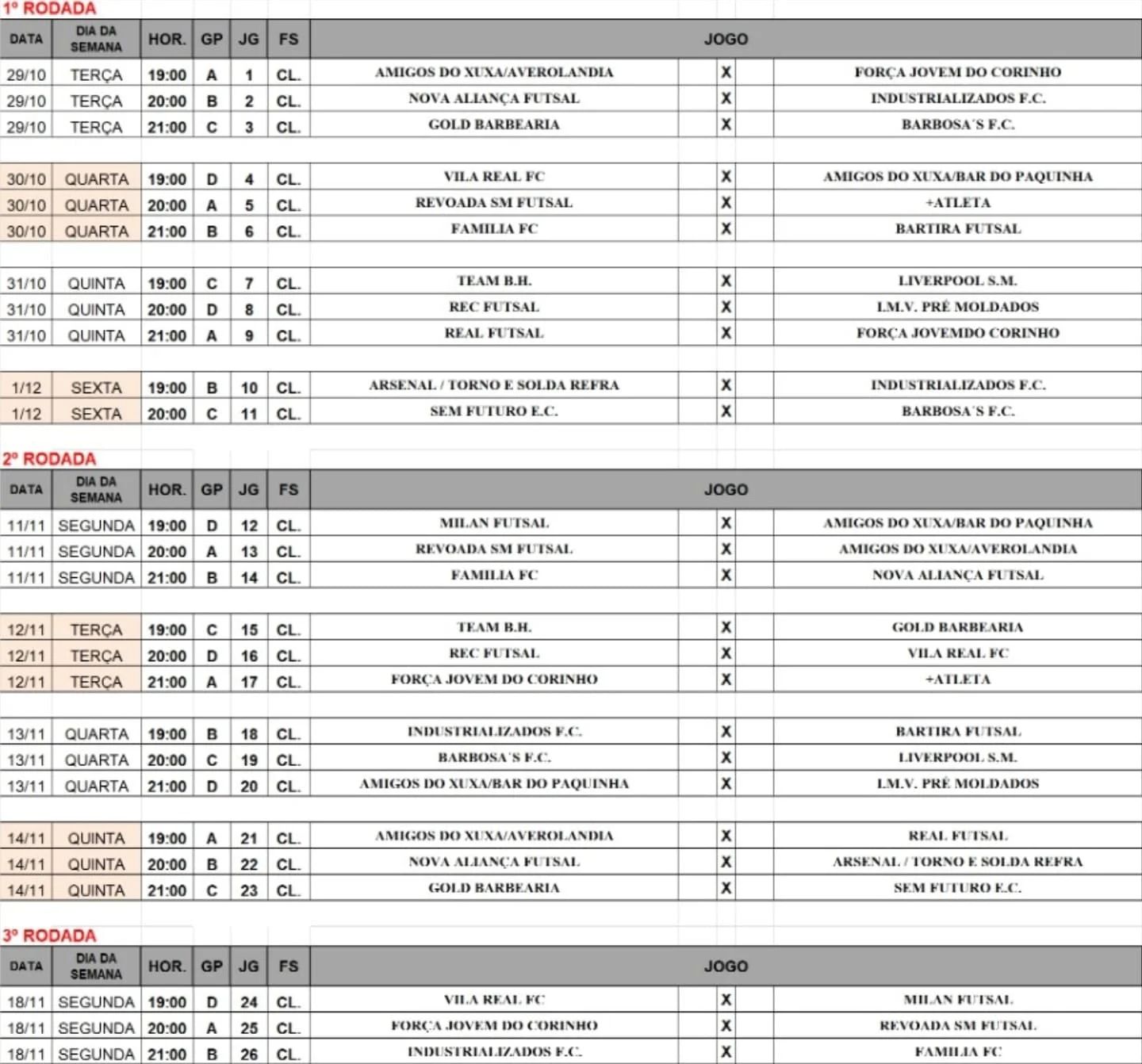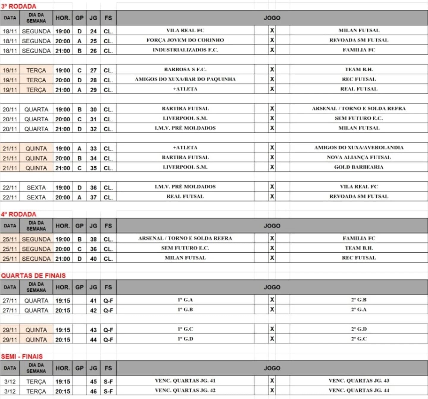 Confira nas imagens em anexo a tabela e o chaveamento do certame!