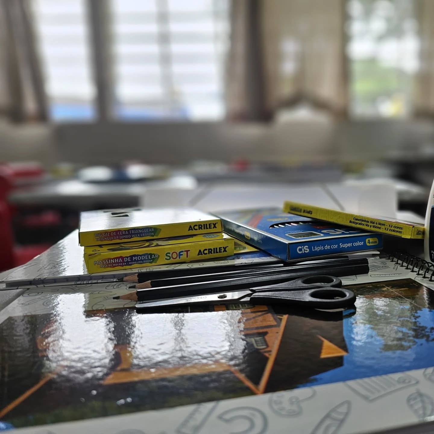 O material escolar recebido ficará em posse do aluno na instituição, sendo levado para casa aquilo que a instituição julgar necessário, conforme organização das mesmas.