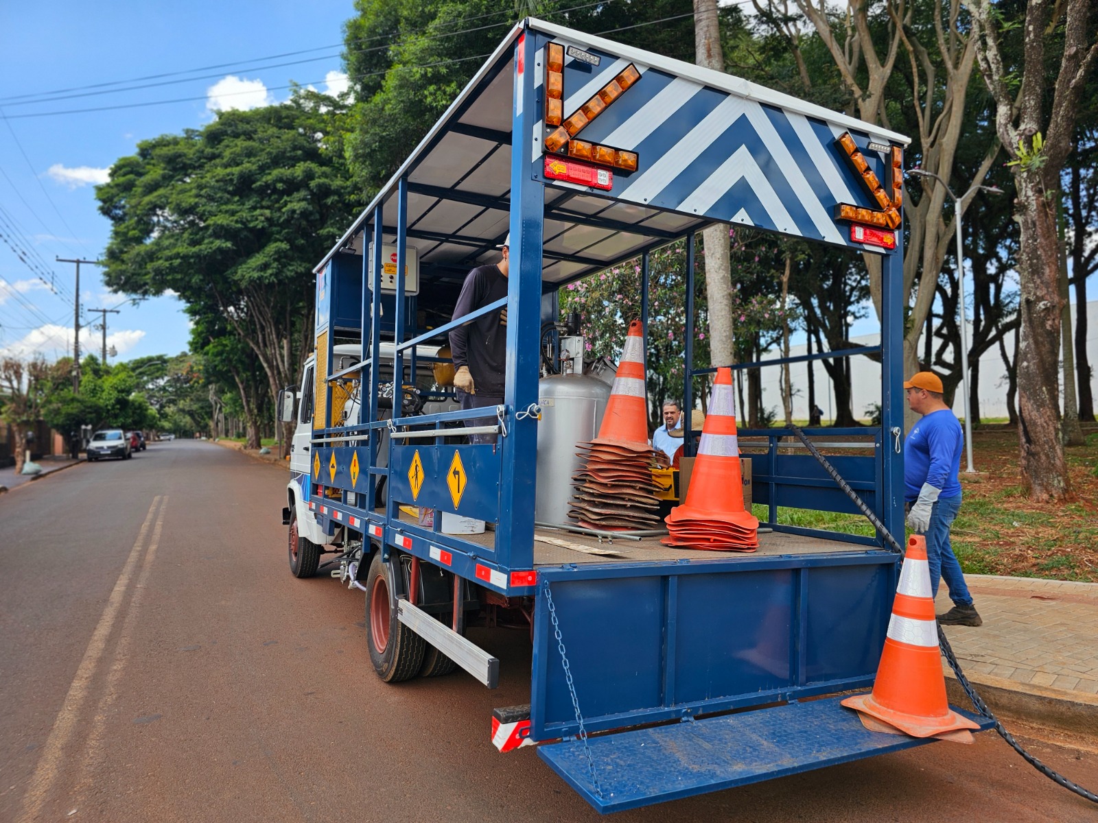 Com esse caminhão de pintura viária e sinalização é possível produzir faixas e outros elementos de trânsito, agilizando e otimizando o serviço, que fica muito mais fácil e rápido aos servidores municipais.