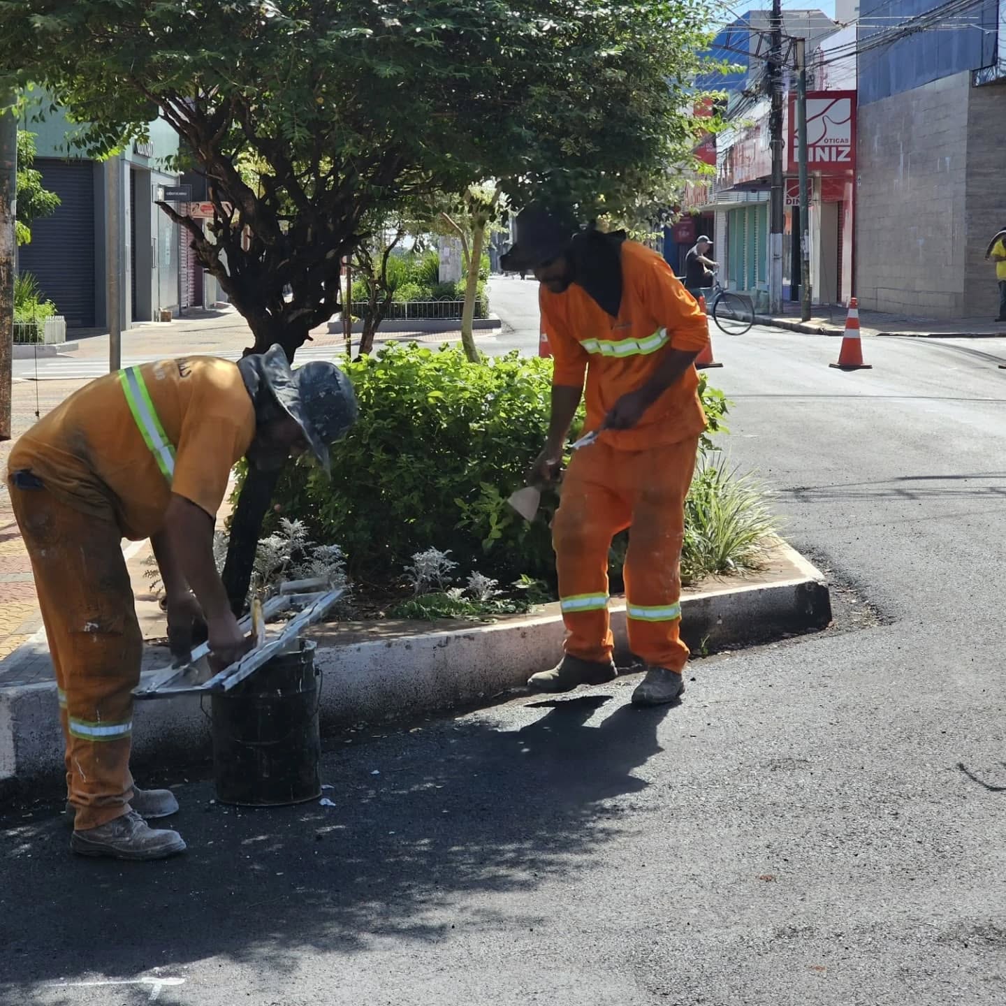 A pintura dos novos tipos de vagas de estacionamento começou nesta quarta-feira (19), aproveitando o feriado municipal do Dia do Padroeiro da cidade, São José.