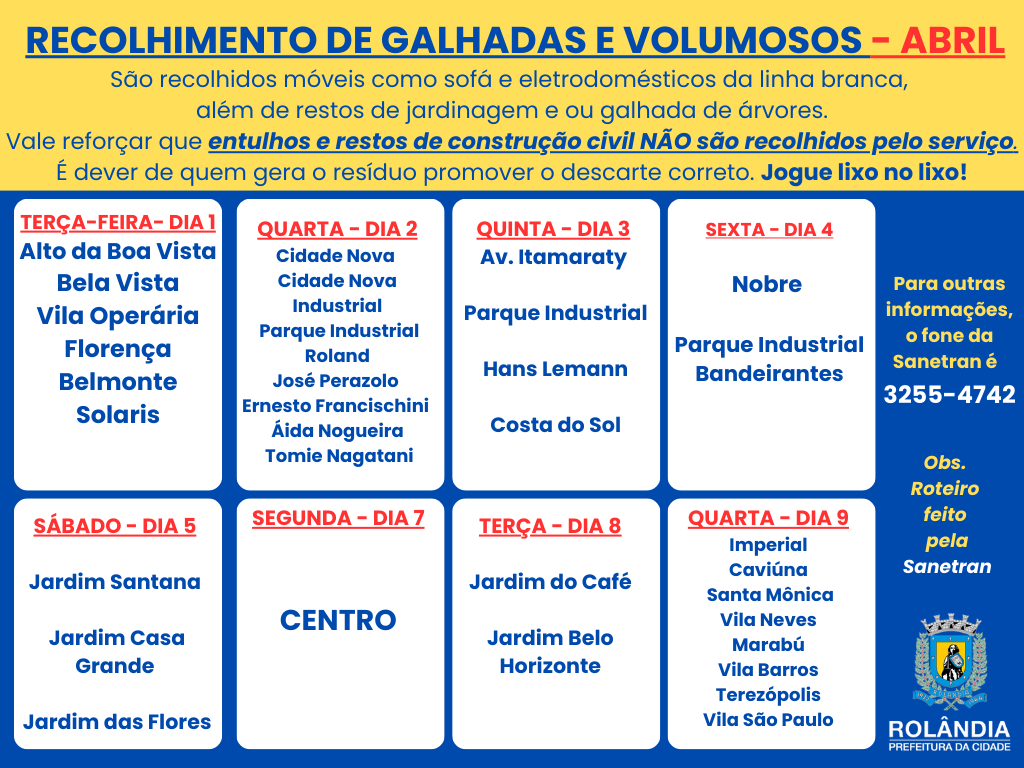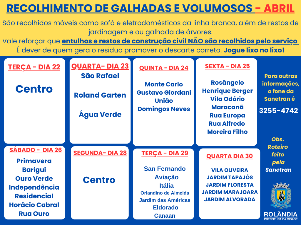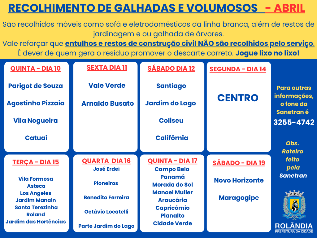 AGENDA DA SANETRAN PARA RECOLHER GALHADAS E VOLUMOSOS - ABRIL