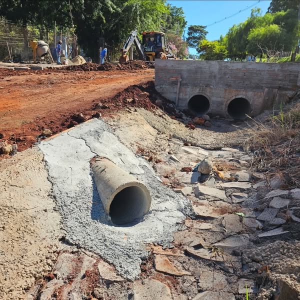 A obra contempla melhorias nas galerias de águas pluviais, com a ampliação da tubulação. Com isso, vai escoar de modo mais adequado a água da chuva.