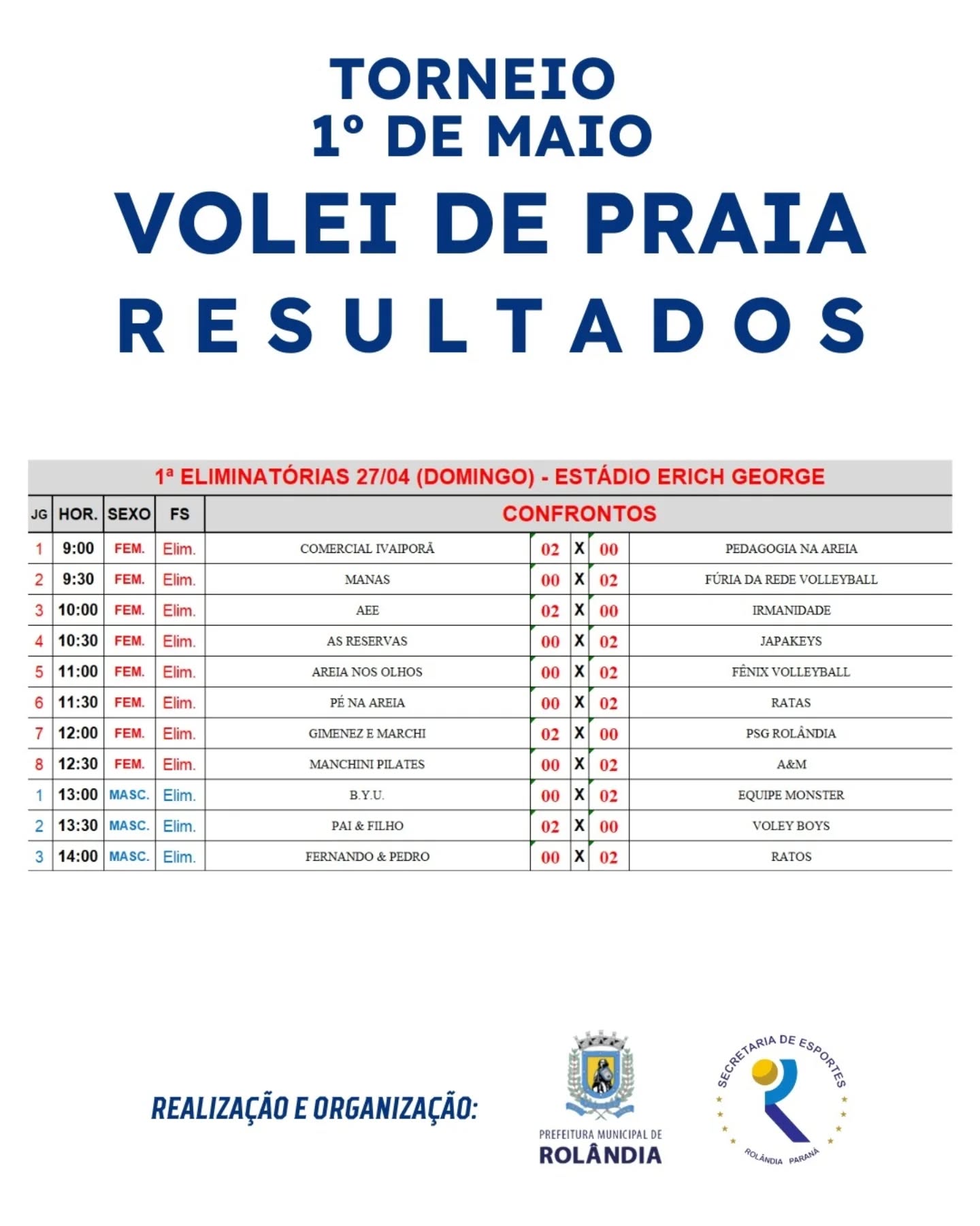 E na quinta, dia 01/05, tem a fase final, também no Erich Georg!