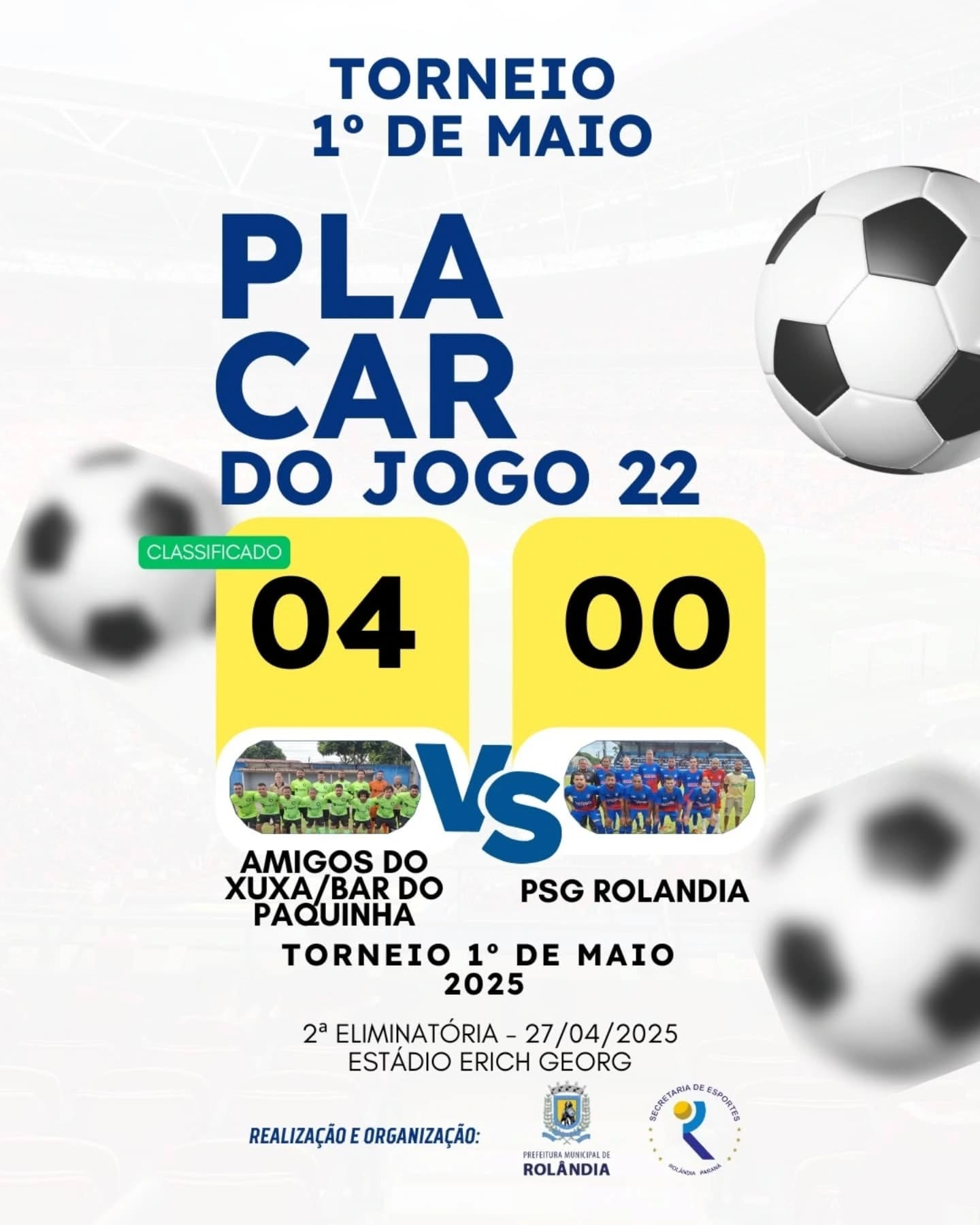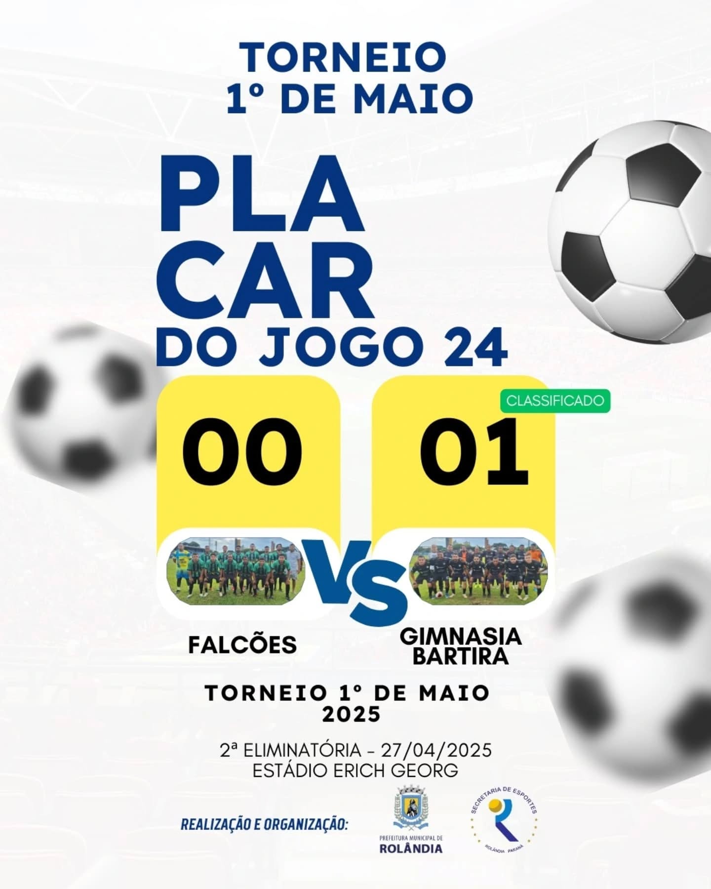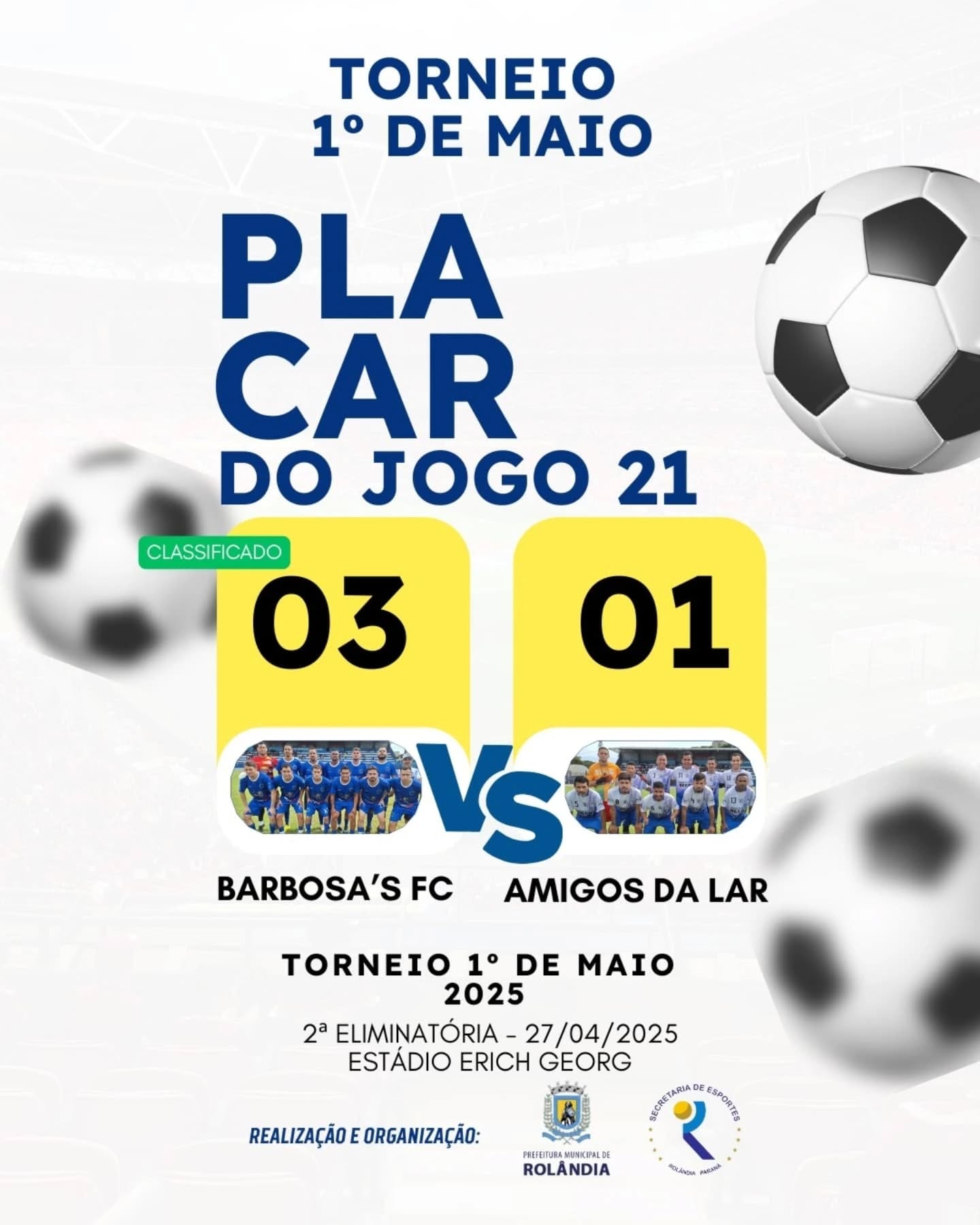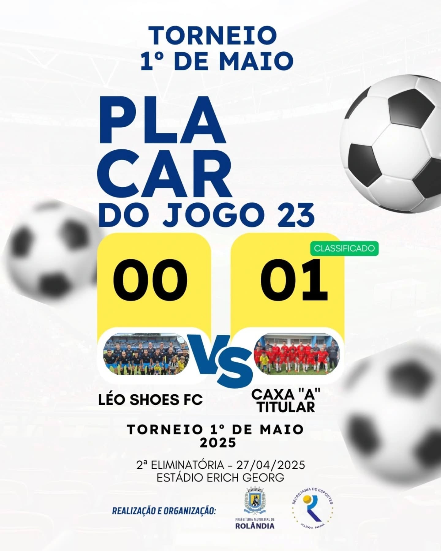A secretaria de Esportes informa que neste domingo, dia 27 de abril, o estádio Erich Georg sediou mais uma etapa, da fase Eliminatória, do futebol de campo masculino, do Torneio do Trabalhador "1° de Maio".