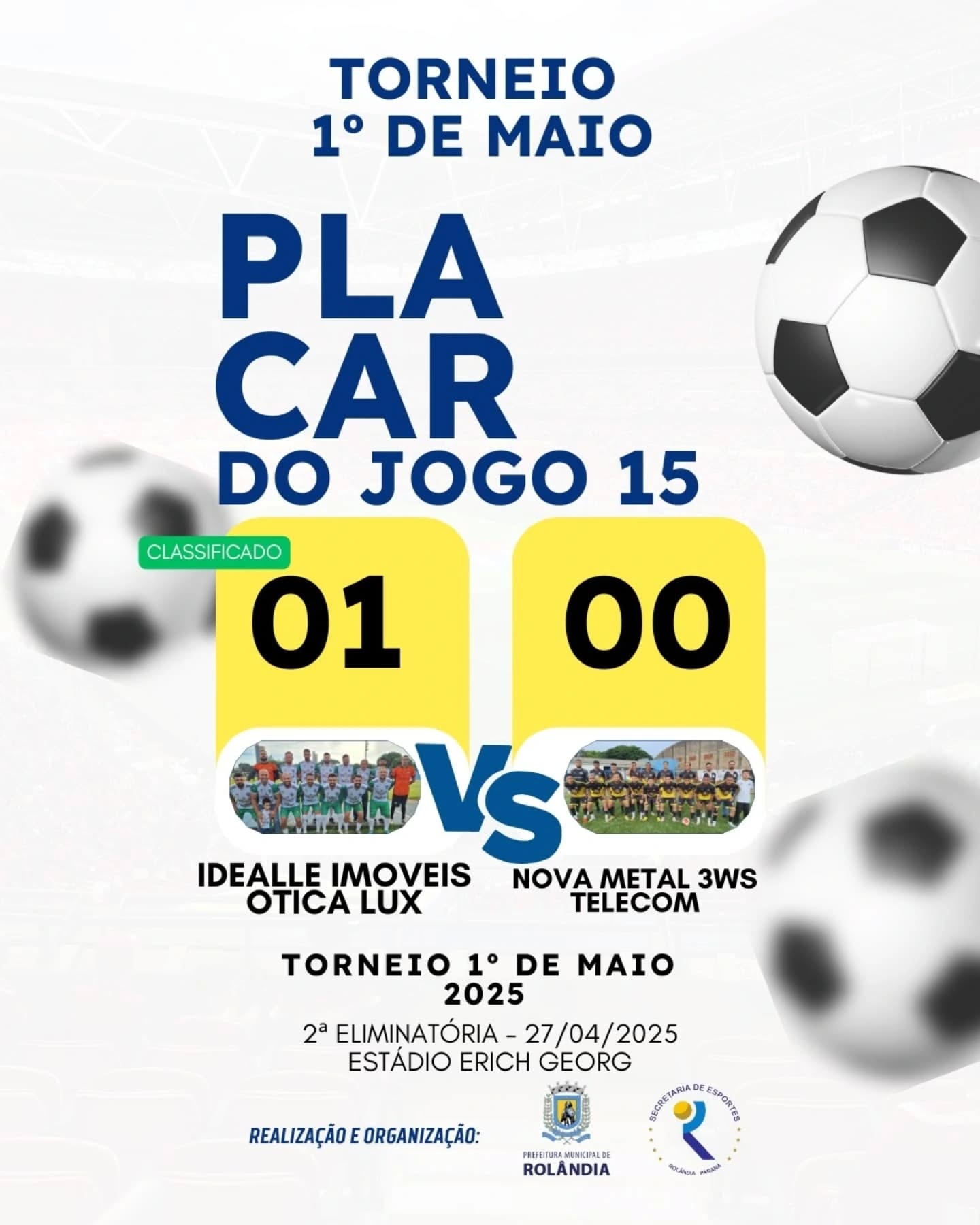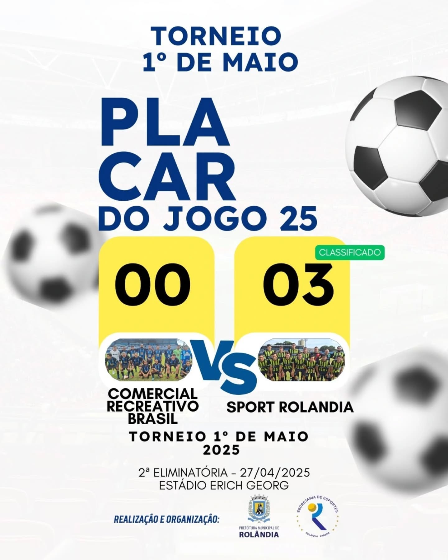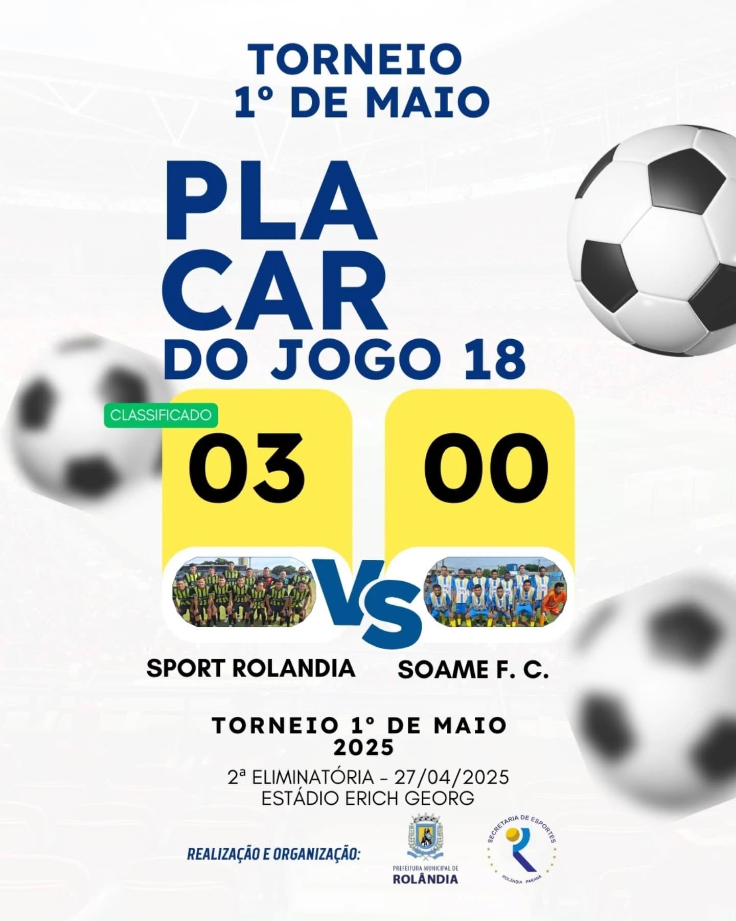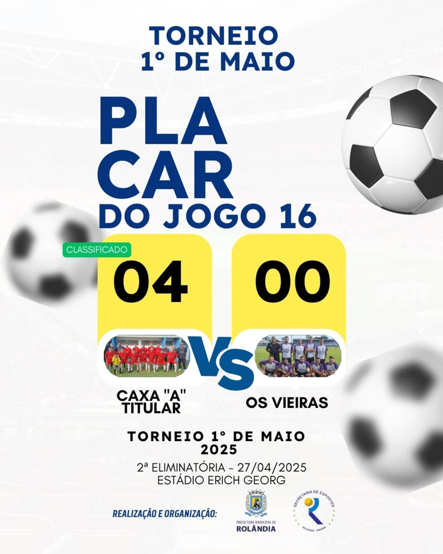 A secretaria de Esportes informa que neste domingo, dia 27 de abril, o estádio Erich Georg sediou mais uma etapa, da fase Eliminatória, do futebol de campo masculino, do Torneio do Trabalhador "1° de Maio".