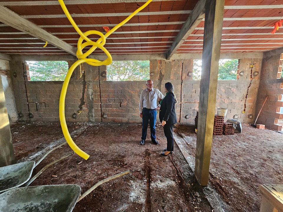 O prefeito Ailton Maistro e a secretária de Saúde, Erika Bezerra Ludwig, foram conferir o andamento da construção.