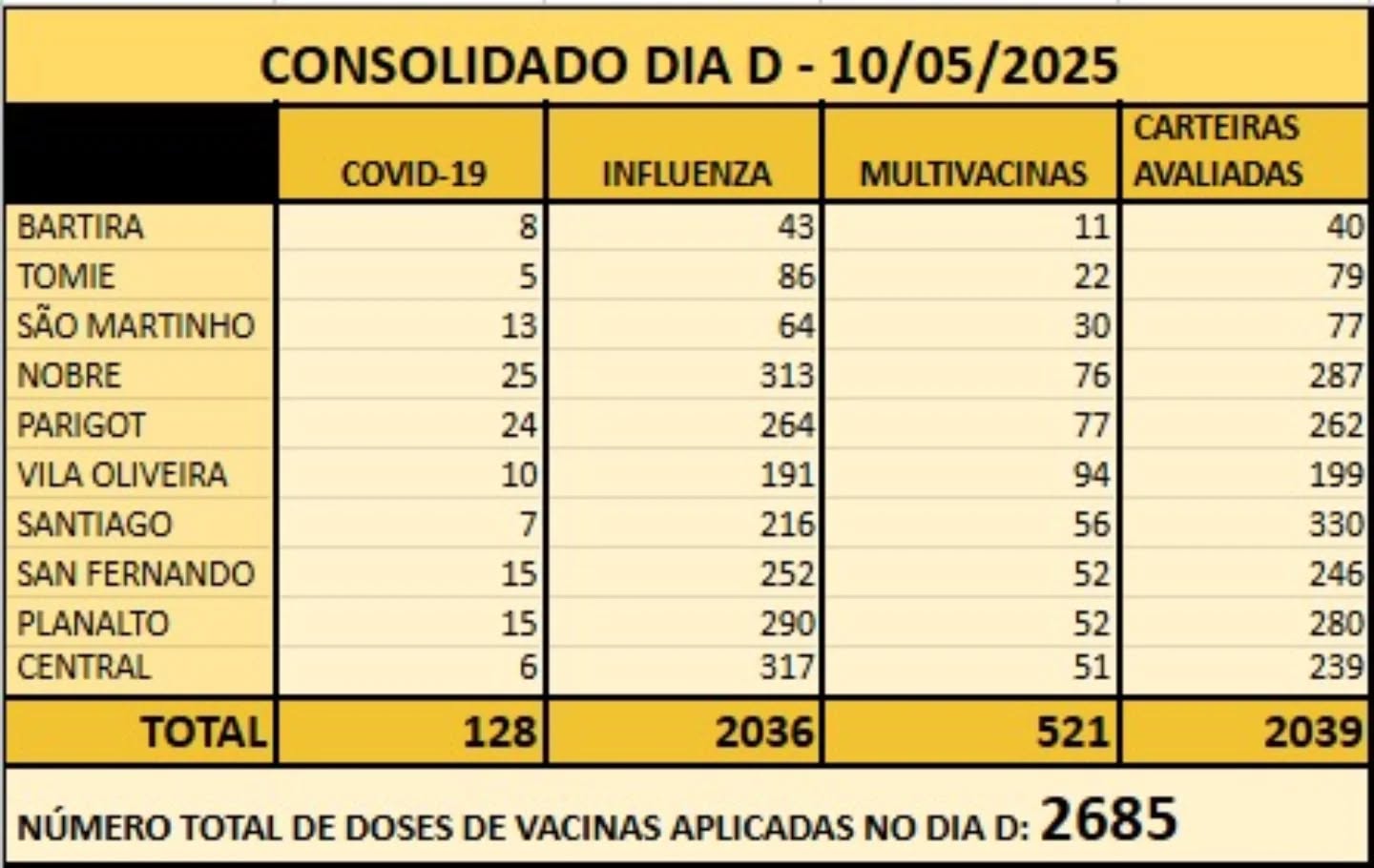 Mais de 2.600 doses aplicadas (veja banner com o detalhamento das aplicações).