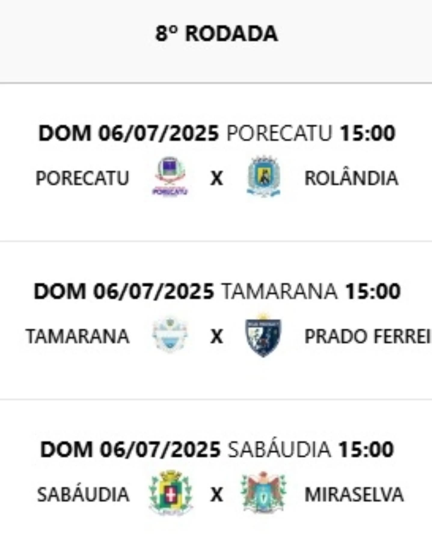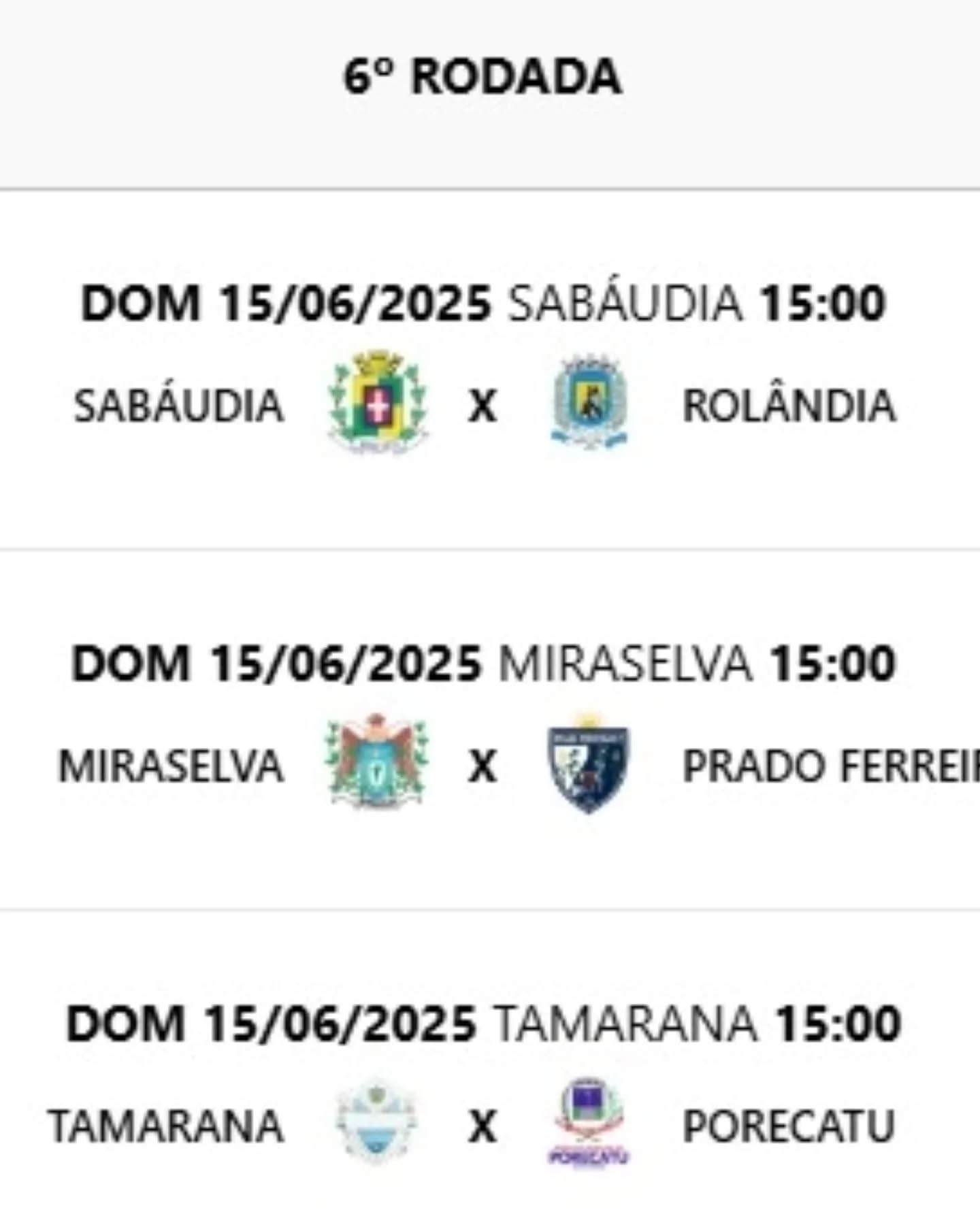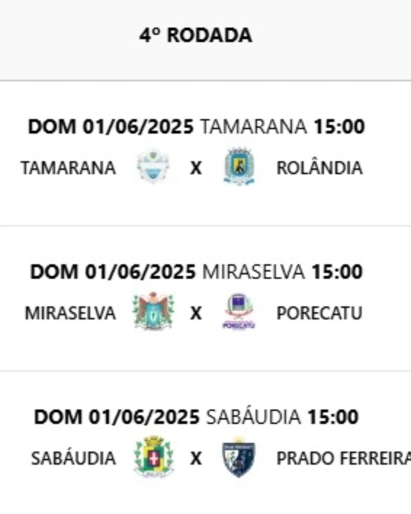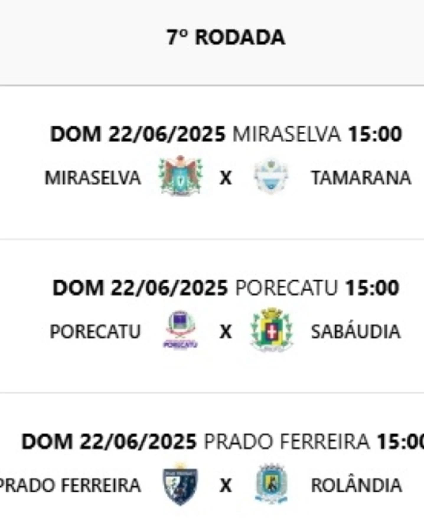 No grupo A, se enfrentam Rolândia, Sabáudia, Miraselva, Porecatu, Prado Ferreira e Tamarana.