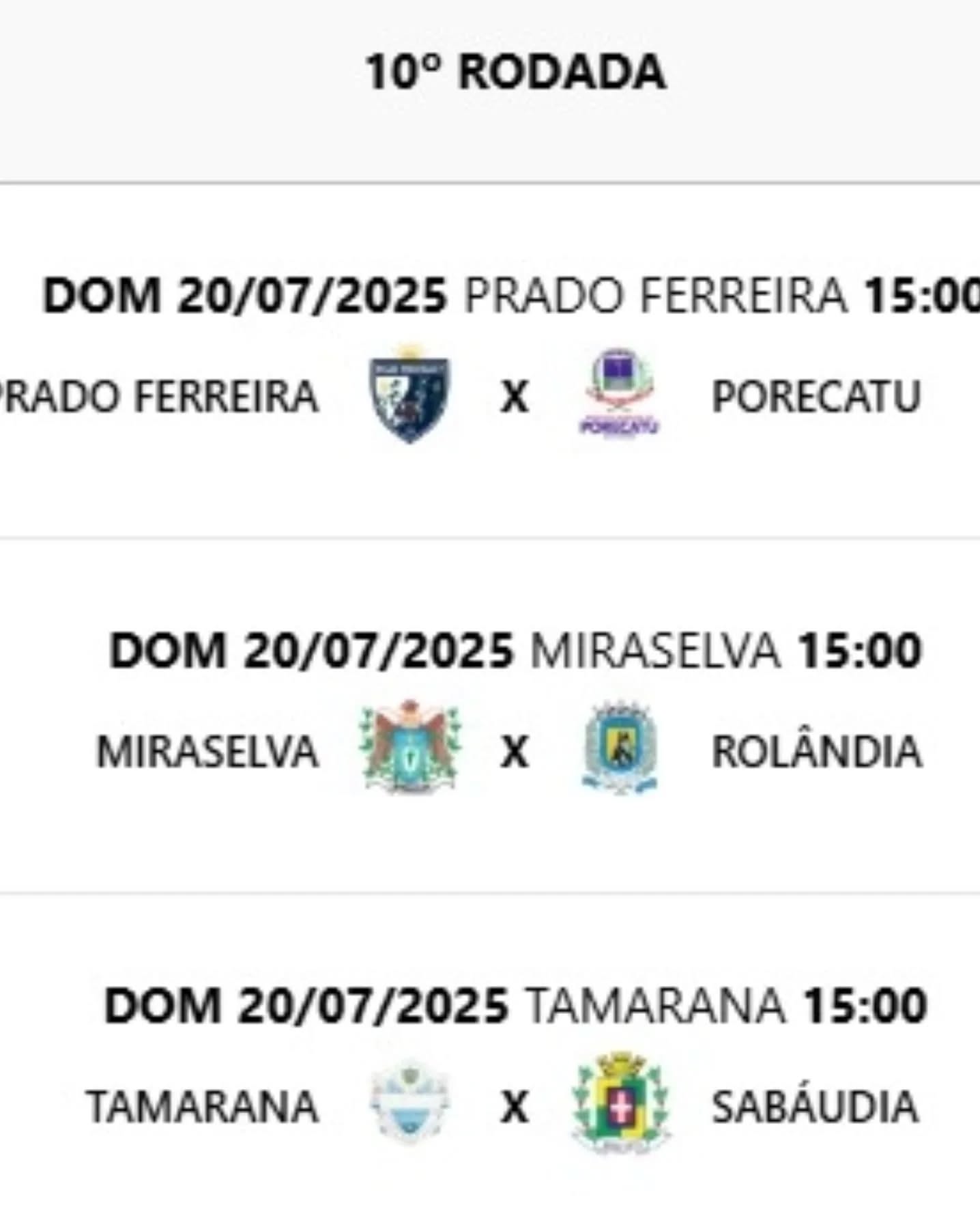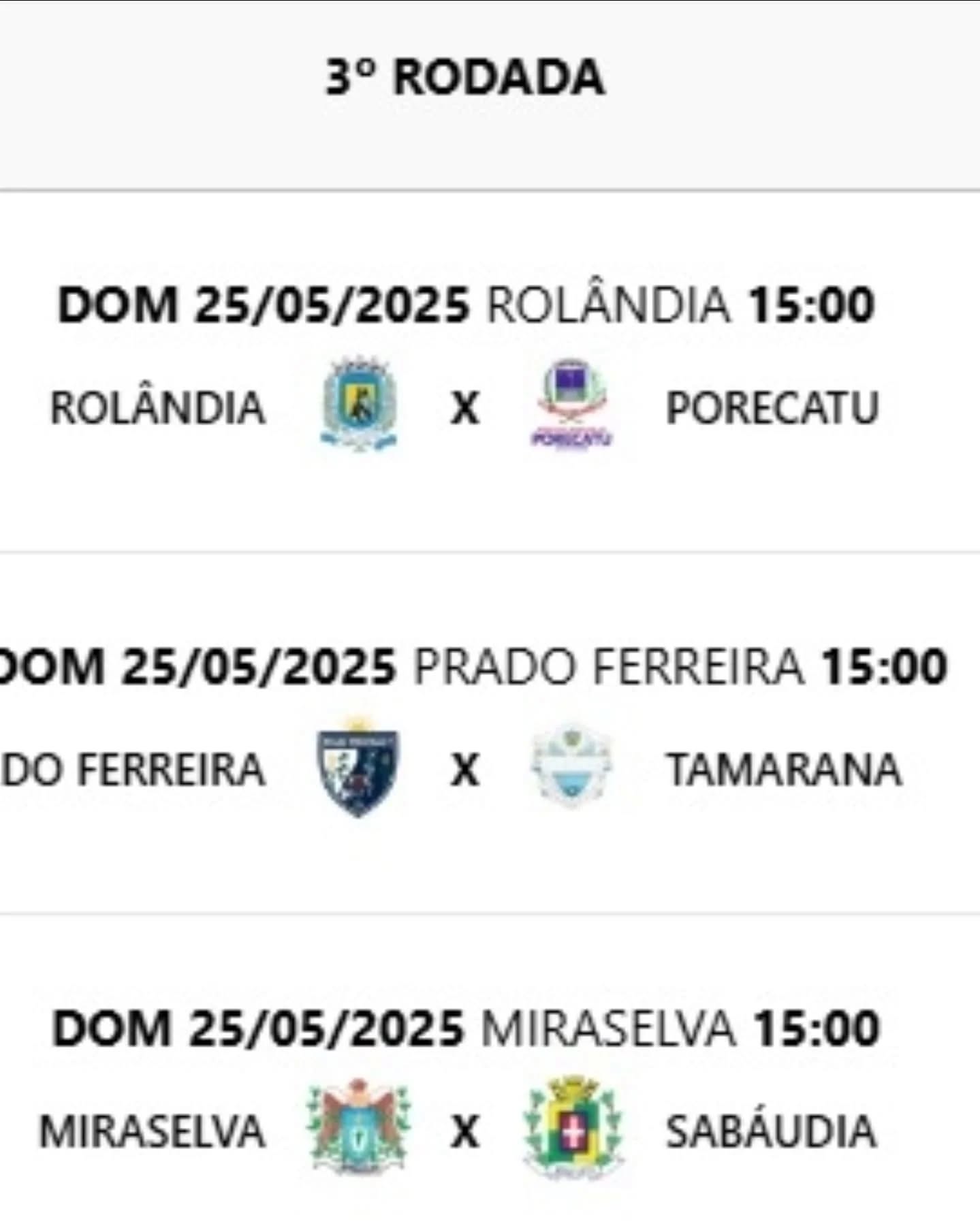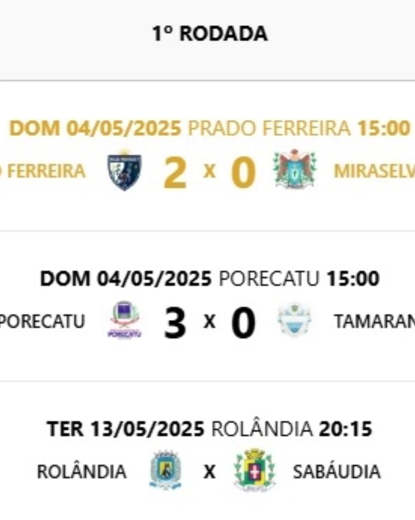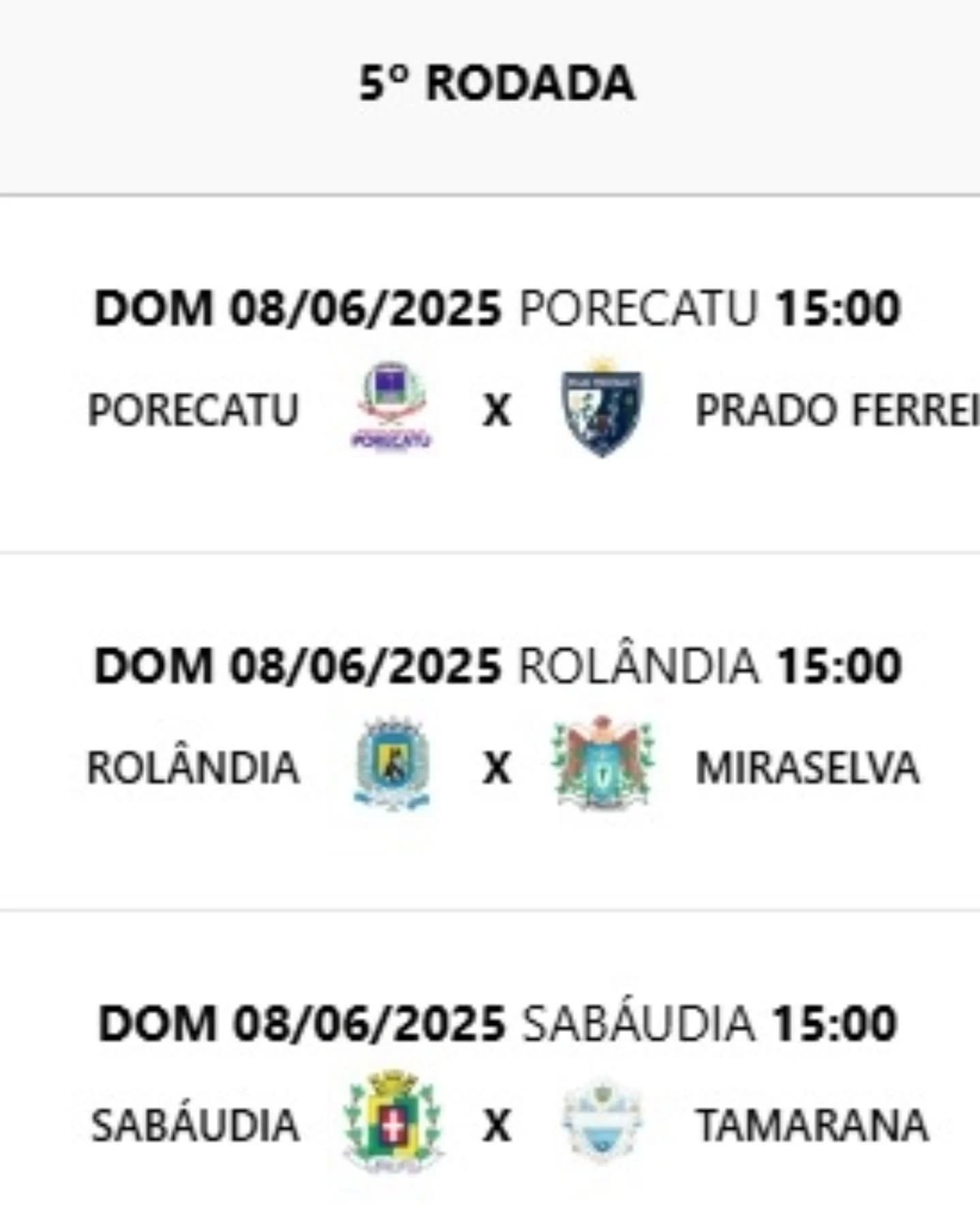 No grupo A, se enfrentam Rolândia, Sabáudia, Miraselva, Porecatu, Prado Ferreira e Tamarana.