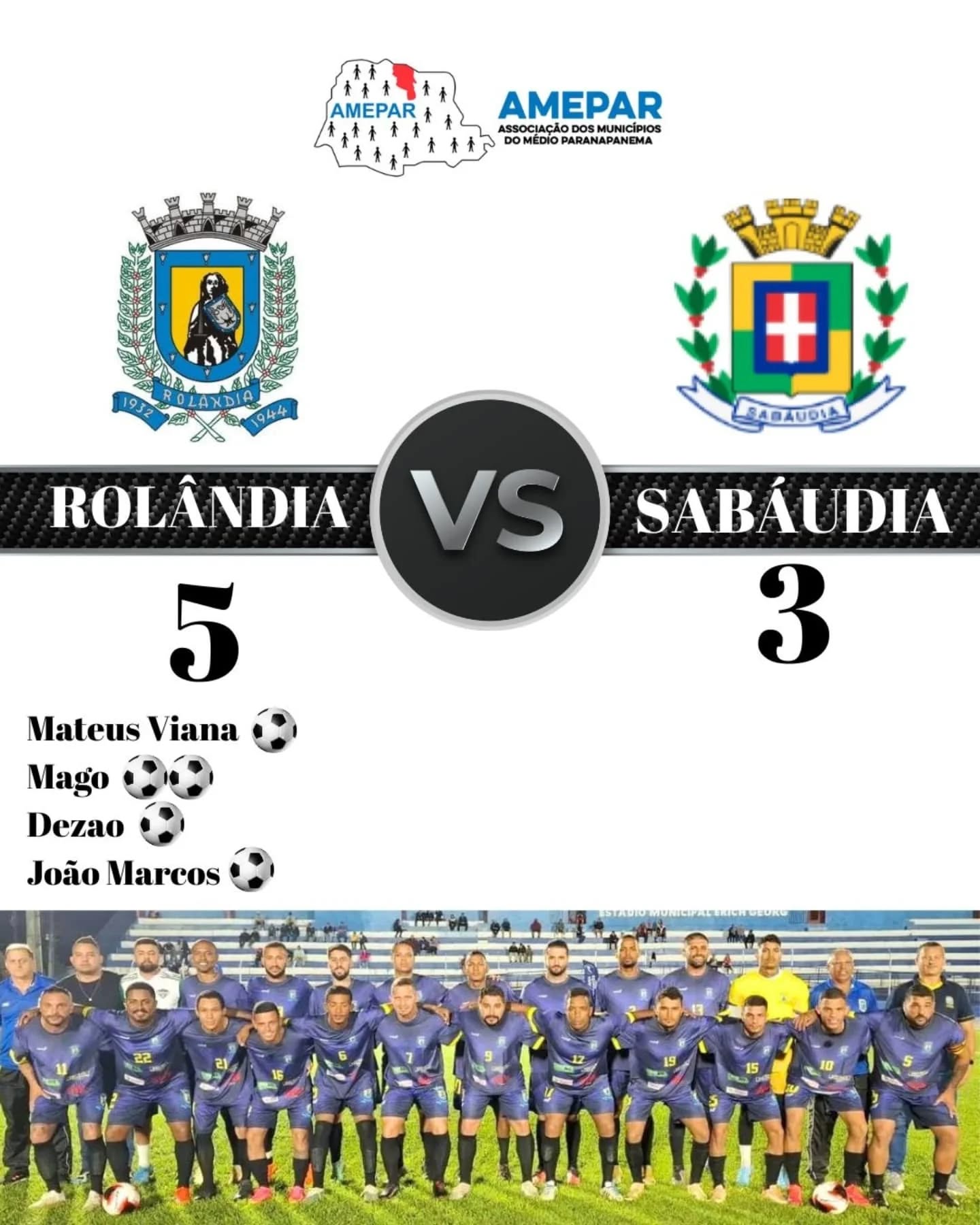 A escalação inicial do time de Rolândia, que tem o apoio da secretaria de Esportes, para o jogo: Daniel; Fernando, Ataíde, Leonardo e Jackson; Dezão, Bruno, Mateus Viana e Nicael; Mago e Mateus Paraná