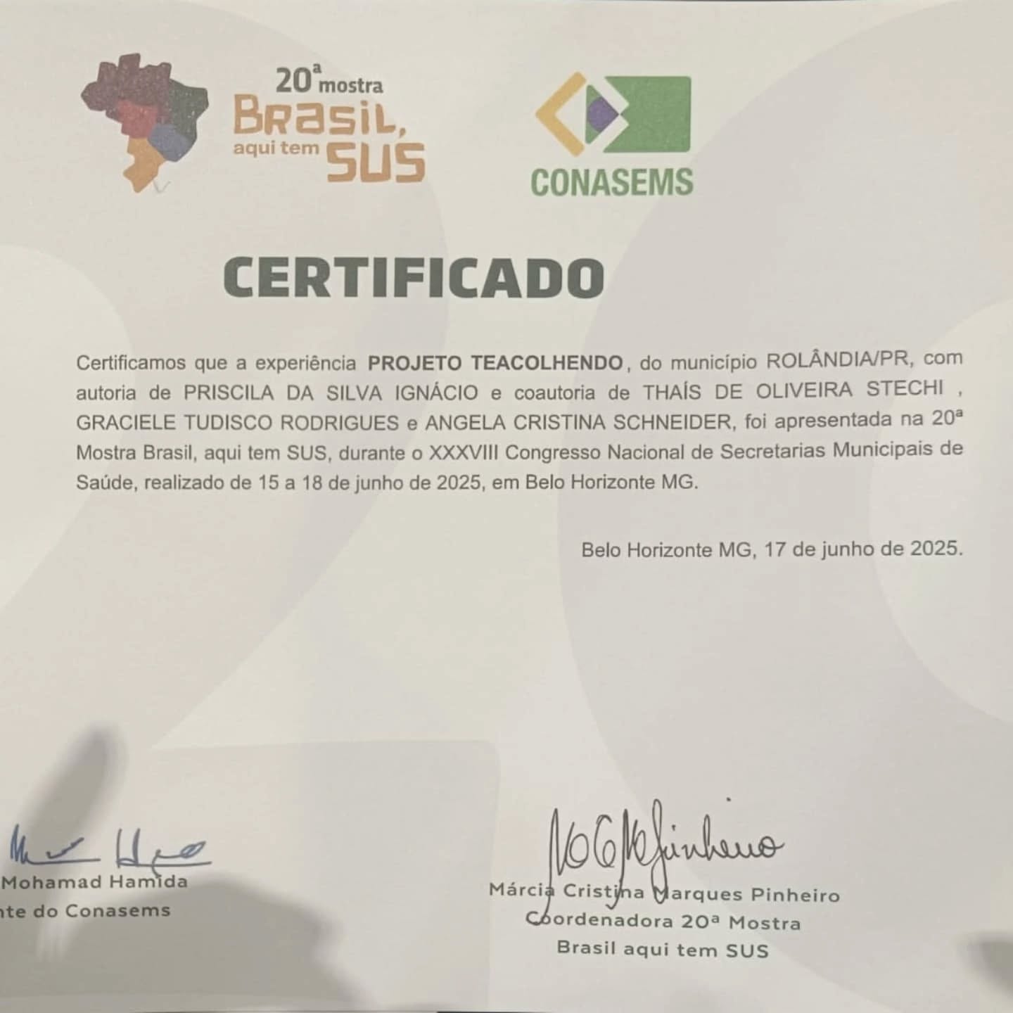 O município de Rolândia, por meio da Secretaria Municipal de Saúde, foi selecionado para apresentar uma experiência exitosa na 20ª edição da Mostra “Brasil, Aqui Tem SUS”, que está acontecendo de 15 a 18 de junho de 2025, em Belo Horizonte (MG), maior evento de saúde pública do mundo.