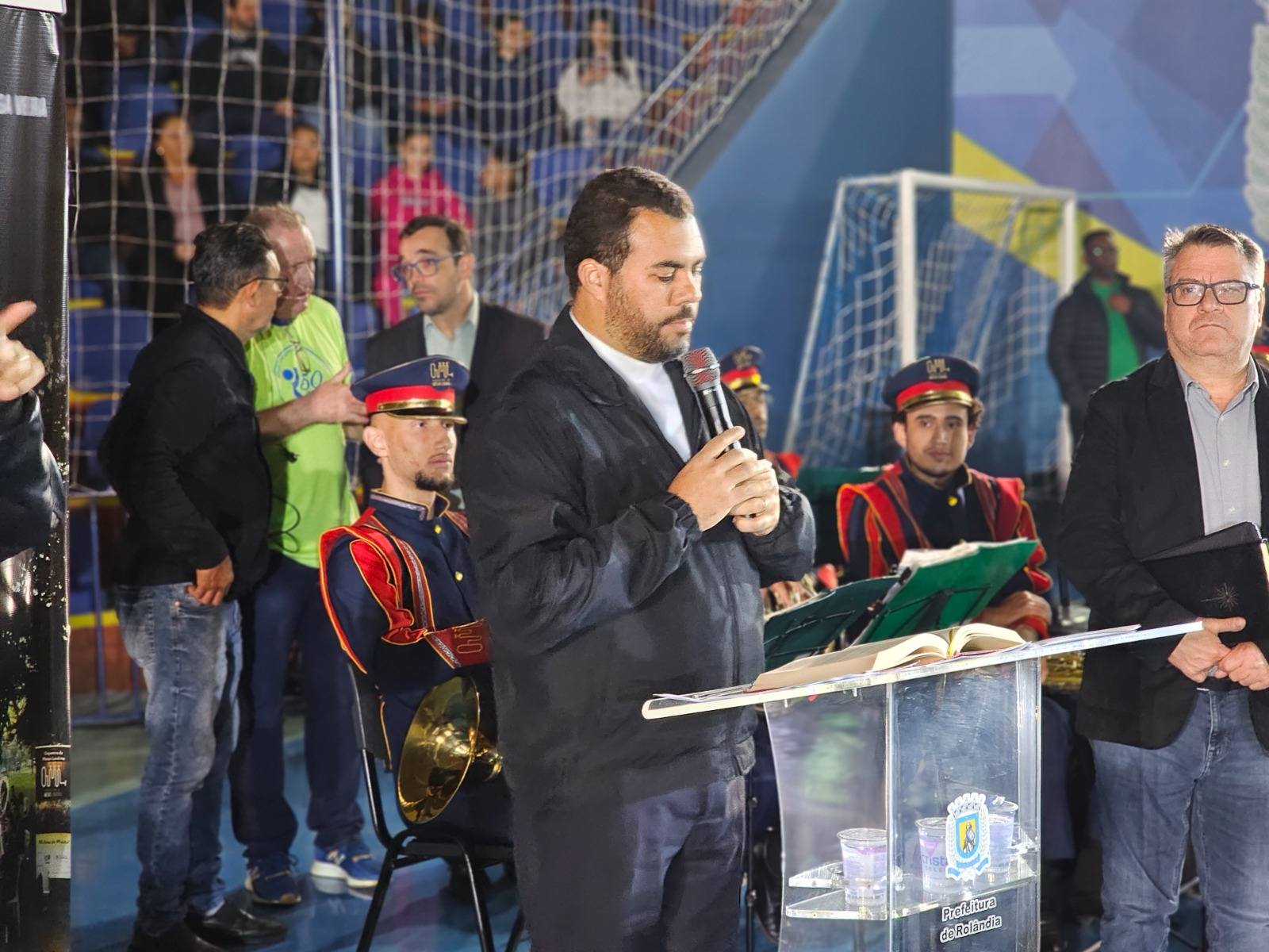 Foi um momento histórico e inesquecível! E agora o ginásio está pronto para valorizar, unir e alegrar a comunidade esportiva rolandense! Padre Rodrigo Nunes dos Santose oPastor Silas de Souza conduziram um Ato Ecumênico e levaram uma mensagem de fé aos presentes, e proferiram palavras proféticas para que o Ginásio Emilio Gomes seja um local de paz, união, convivência e vitória para todos.