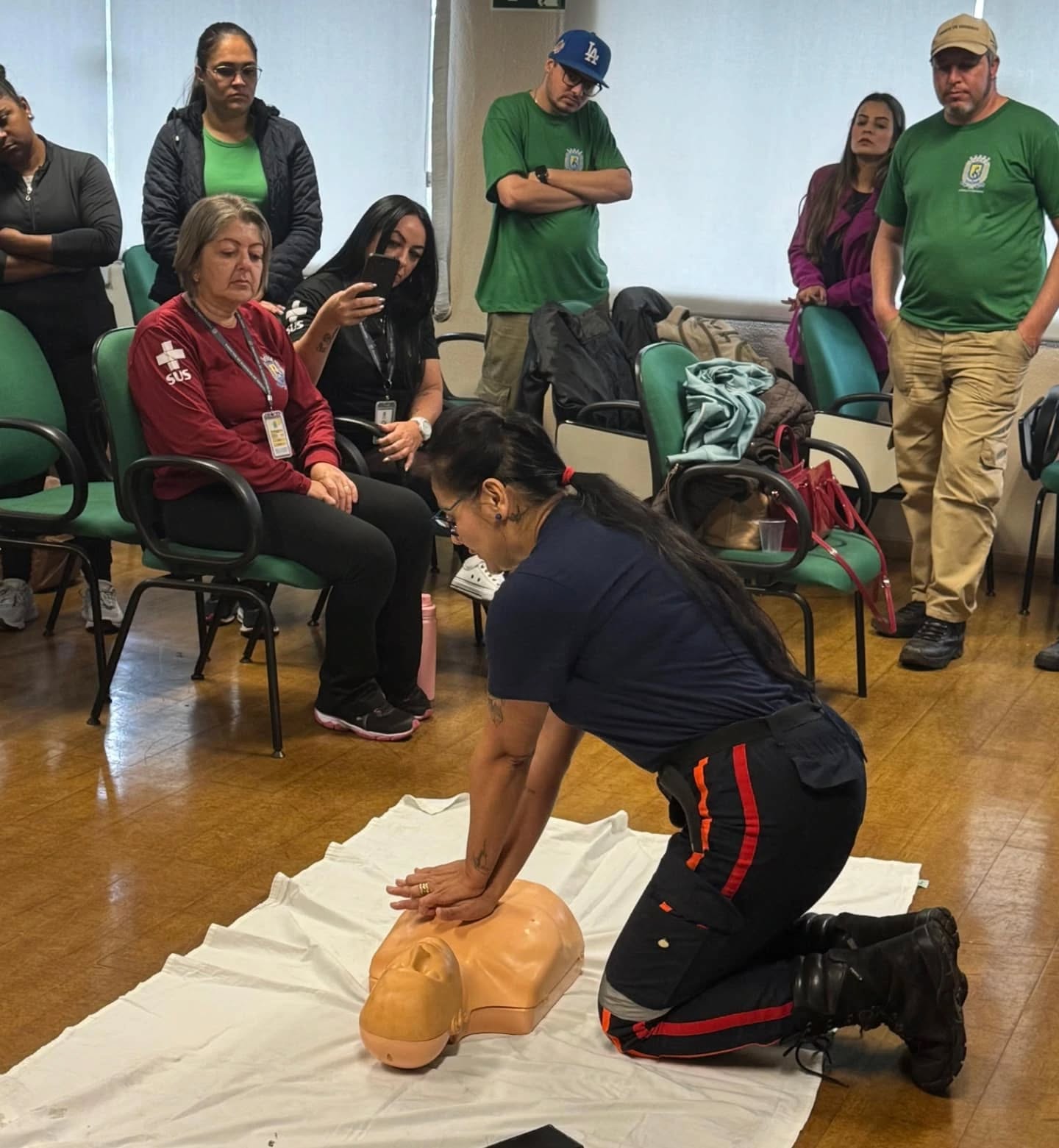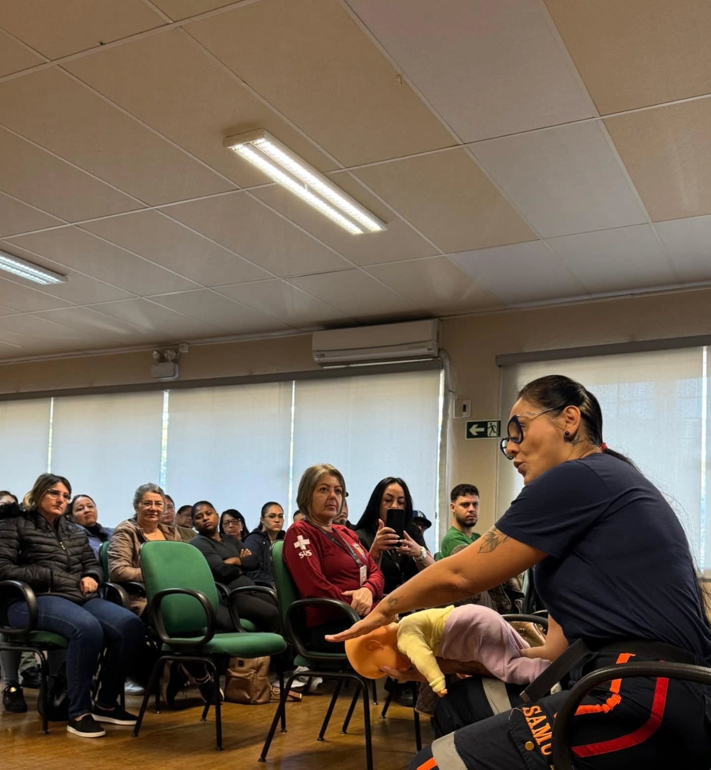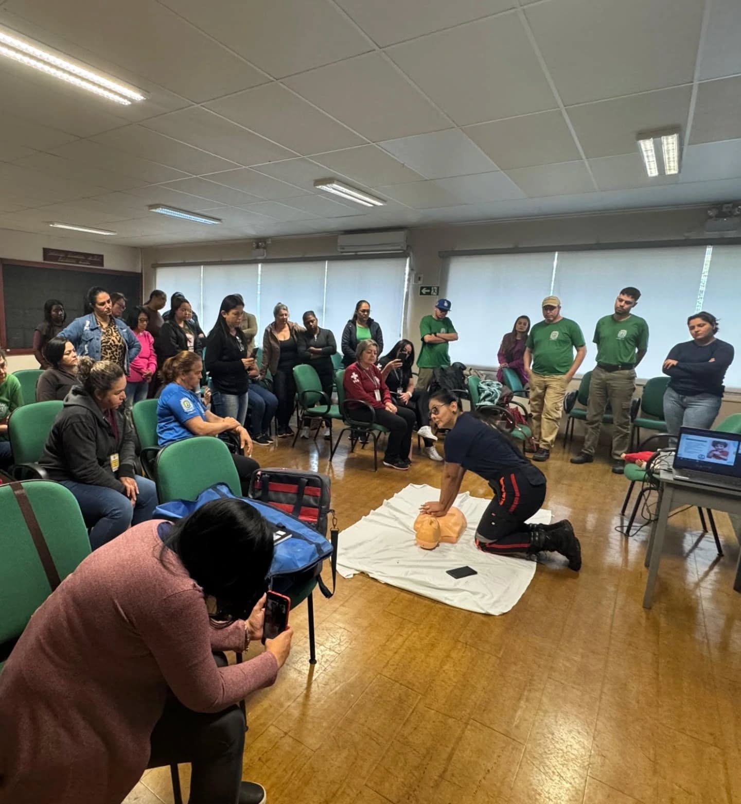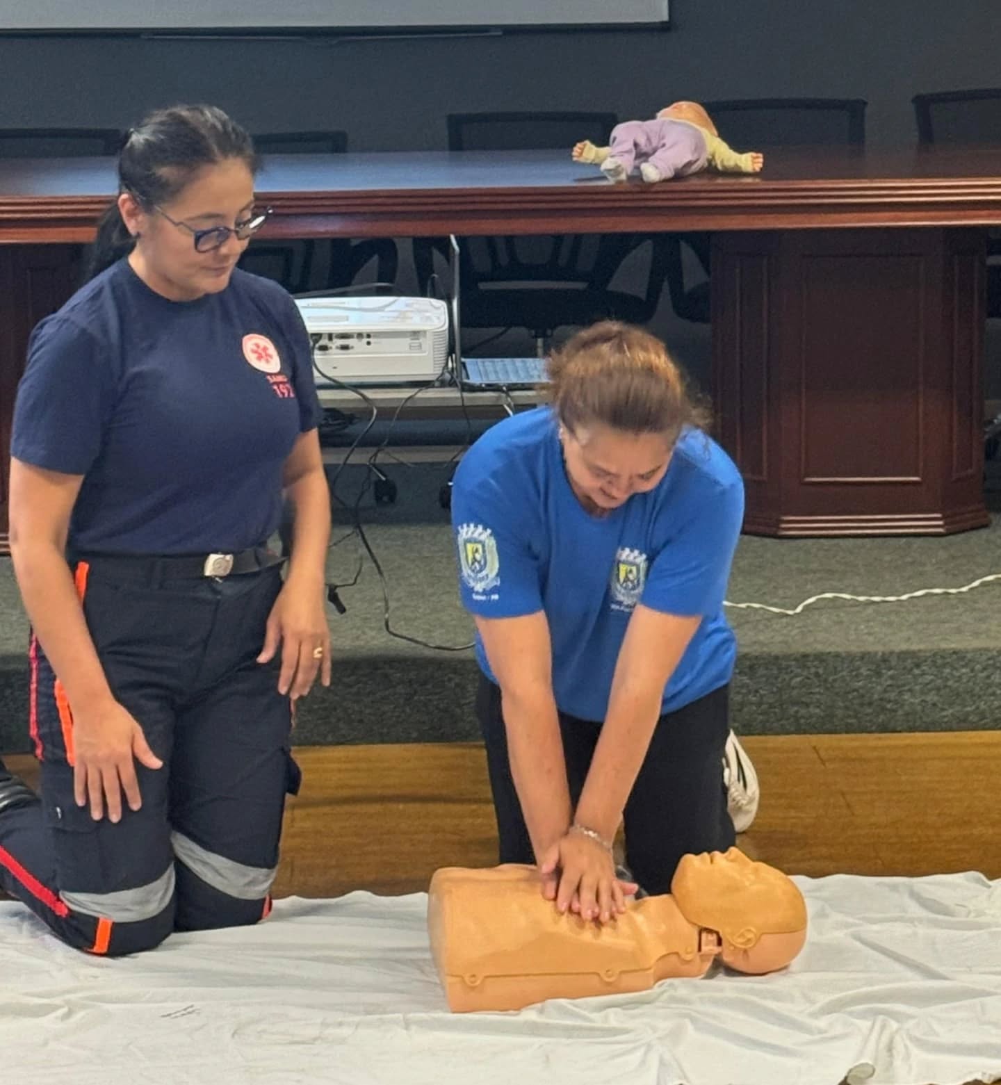 Durante a capacitação, os participantes tiveram a oportunidade de aprender e revisar técnicas básicas de atendimento em casos como desmaios, convulsões, engasgos, quedas, parada cardiorrespiratória, entre outras situações comuns.