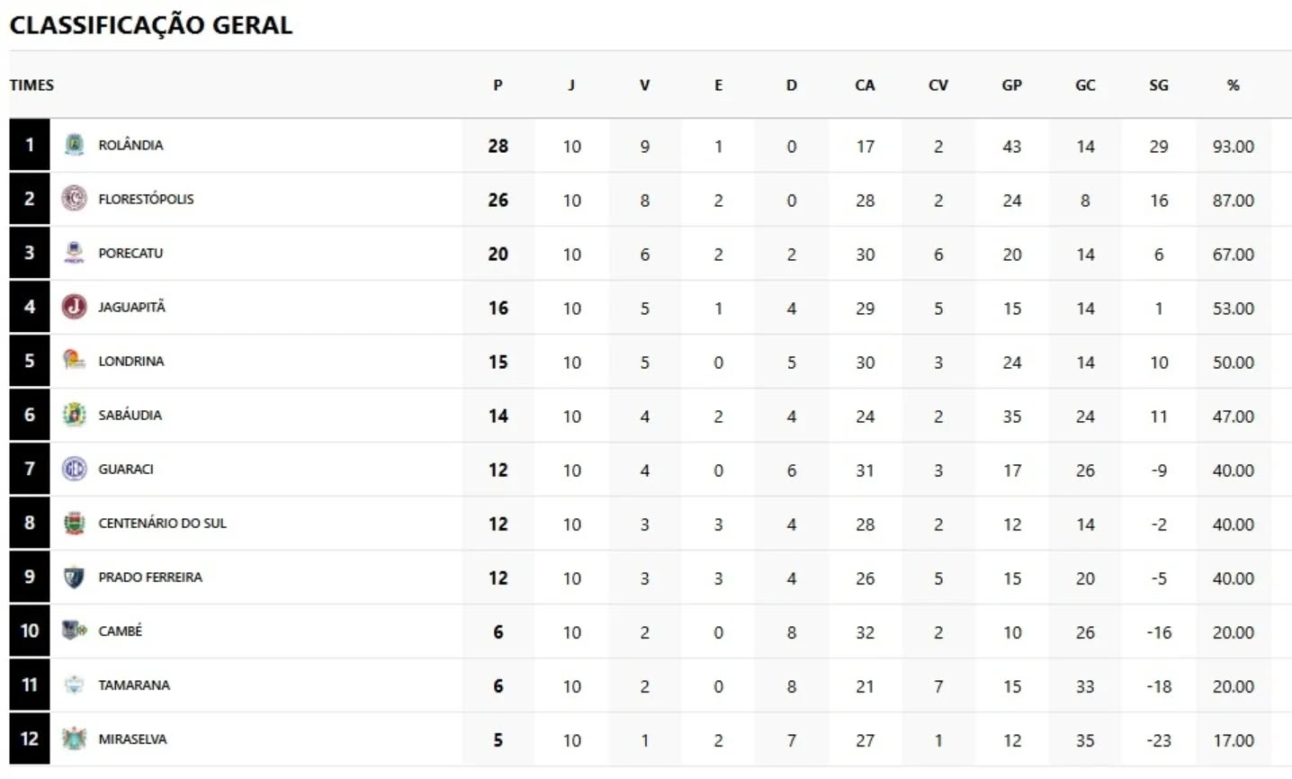 Após fechar a primeira fase com uma vitória por 5x0 contra Miraselva, fora de casa, e finalizando como o melhor time no geral, na primeira fase, a secretaria de Esportes informa que a equipe de Centenário do Sul será a adversária de Rolândia na fase de quartas-de-final, da 3º Copa Amepar de Futebol de Campo”, categoria livre – masculino, promovida pela Associação dos Municípios do Médio Paranapanema (Amepar).