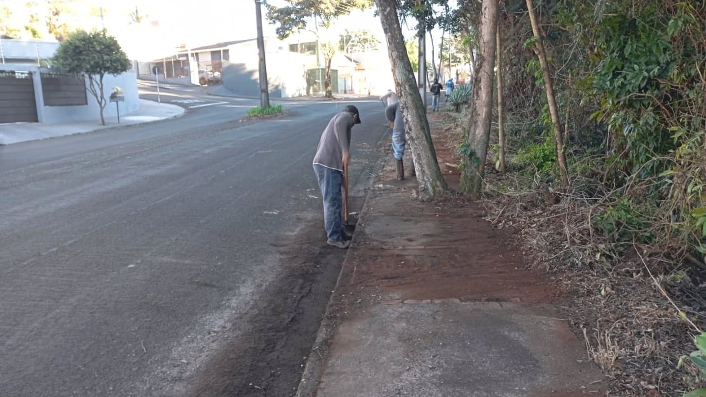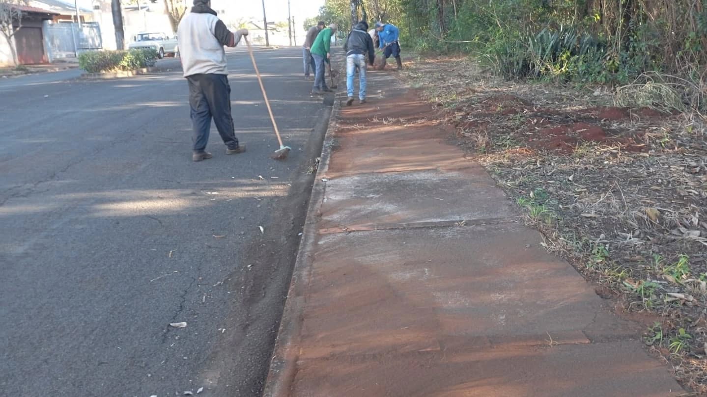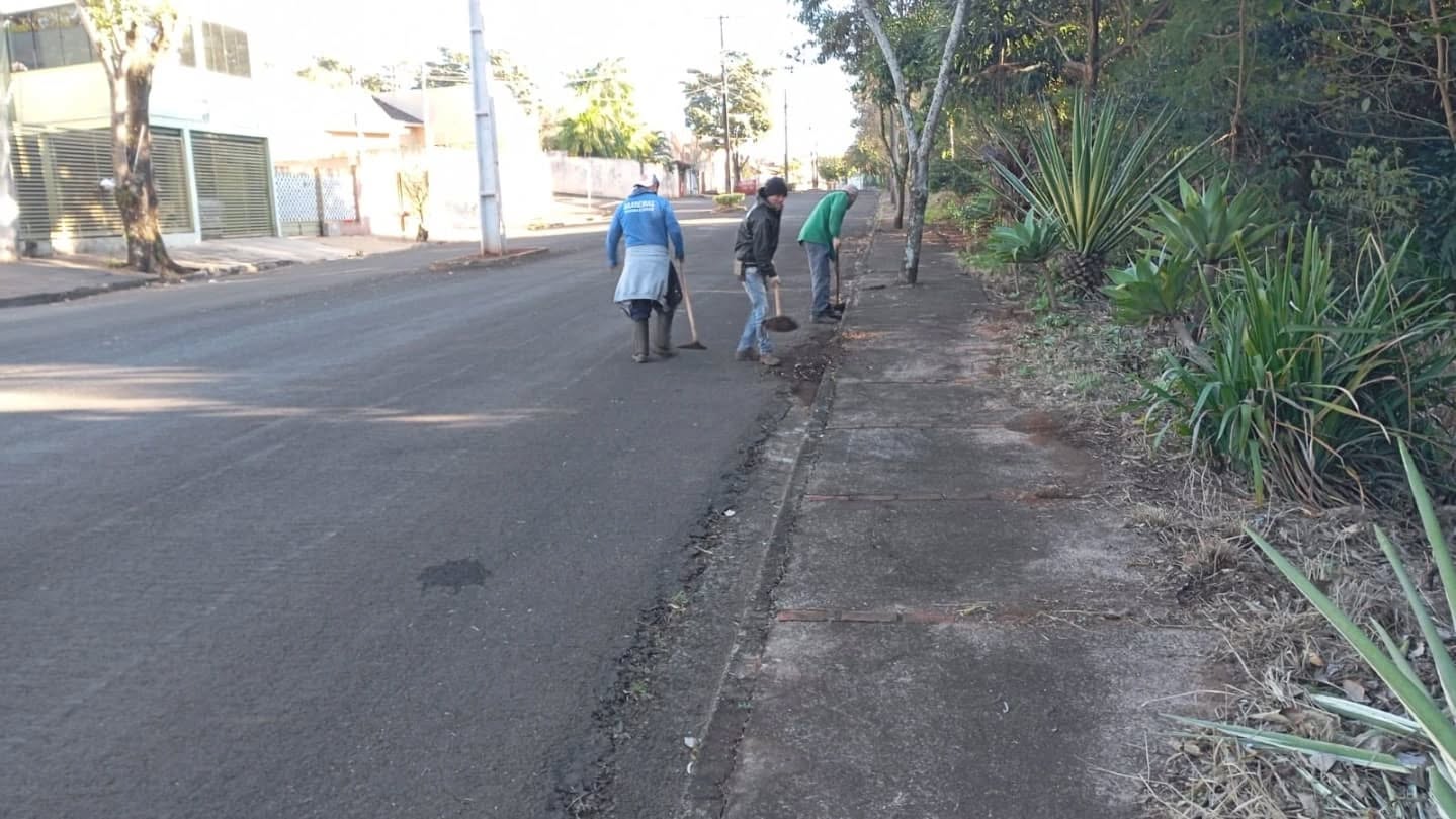 Equipes das Secretarias de Infraestrutura e de Serviços Públicos promovem um grande serviço de limpeza e roçagem em áreas da Avenida Leopardos, que corta diversos bairros.