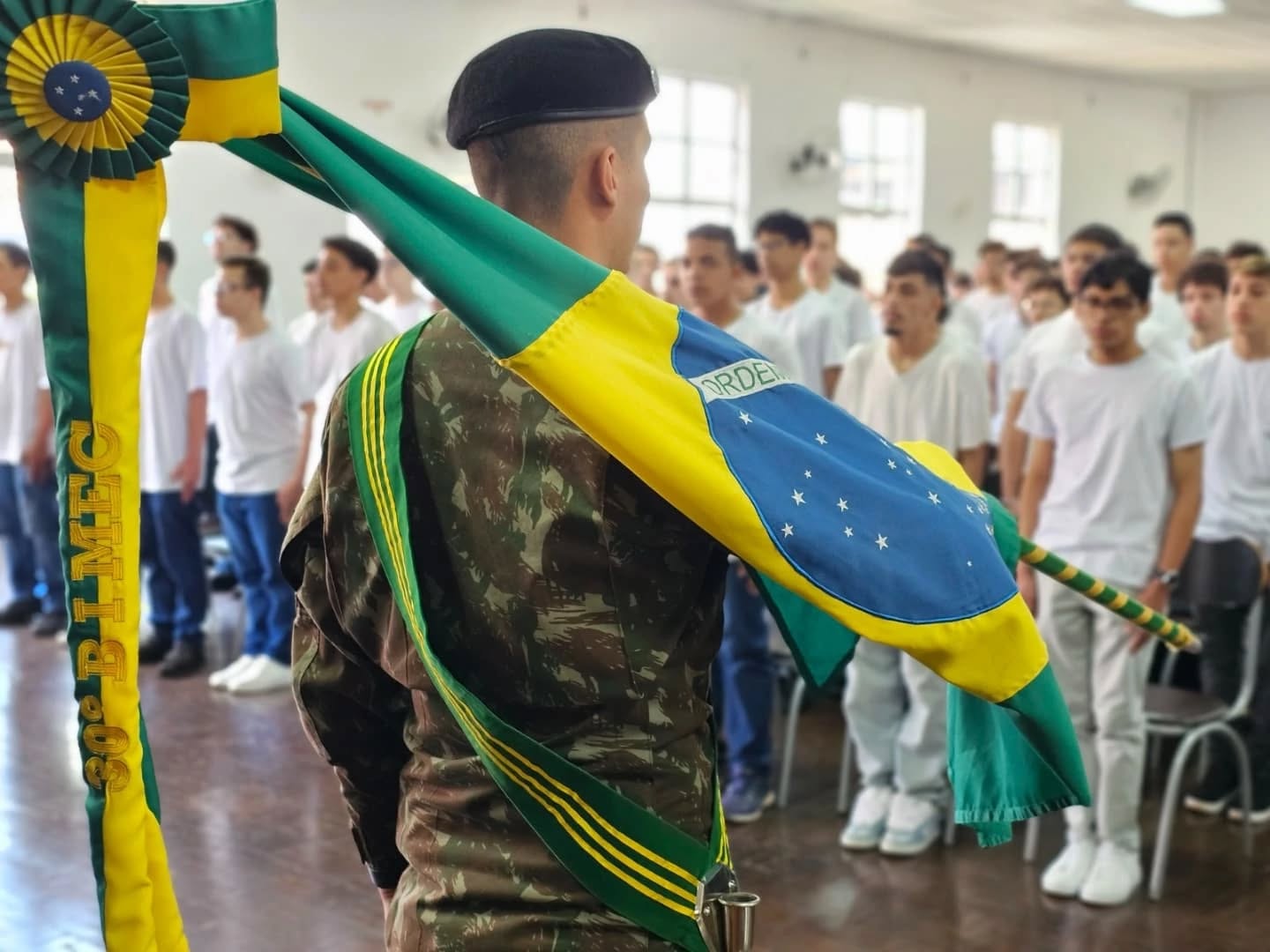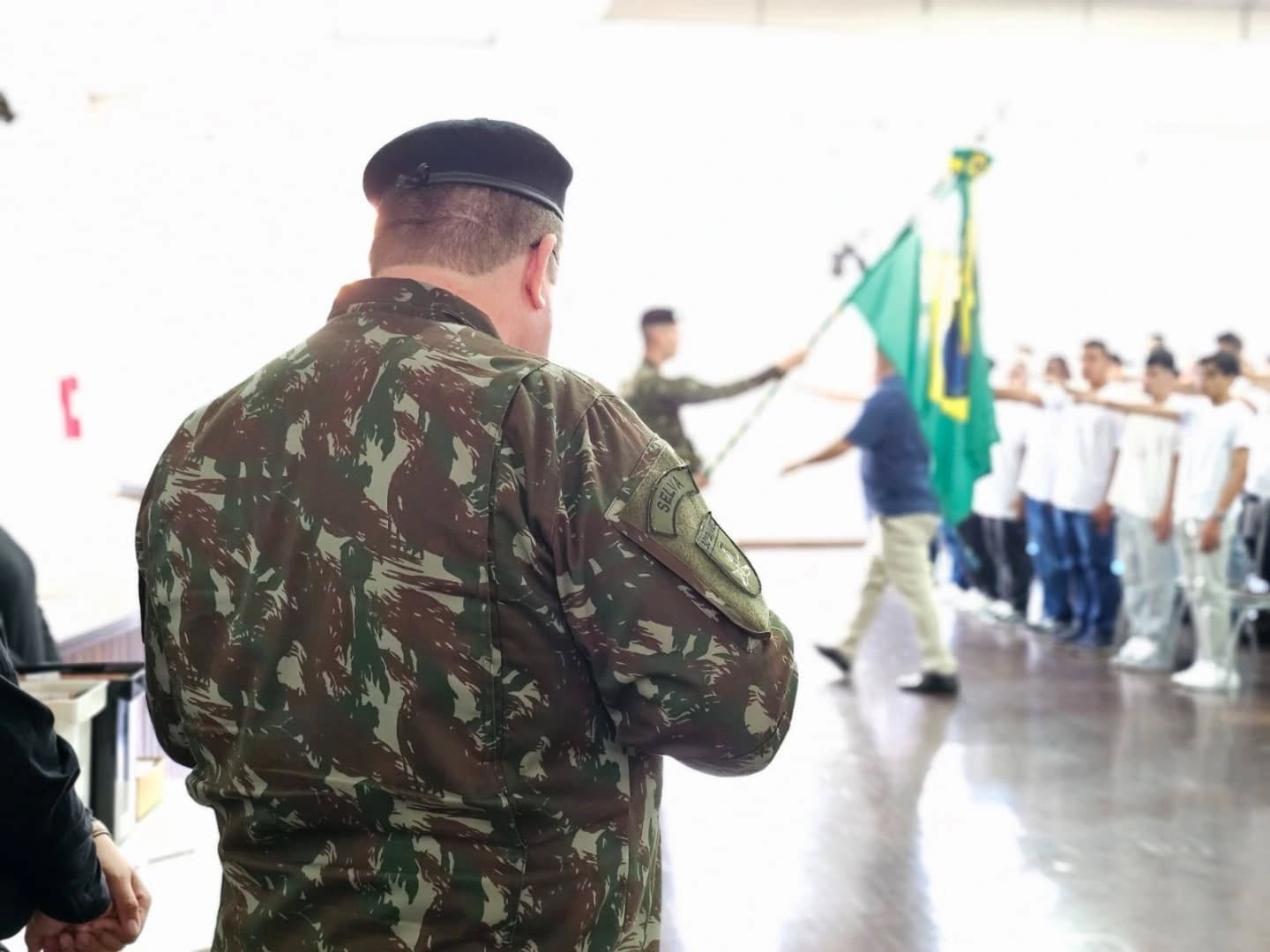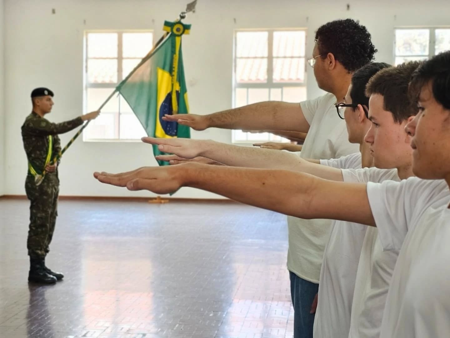 JOVENS FAZEM O JURAMENTO À BANDEIRA E SÃO DISPENSADOS DO SERVIÇO MILITAR OBRIGATÓRIO