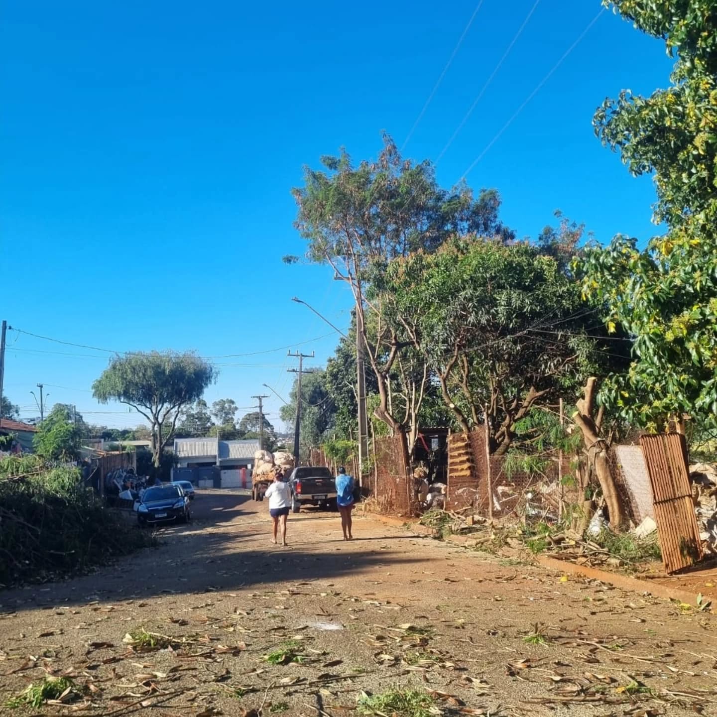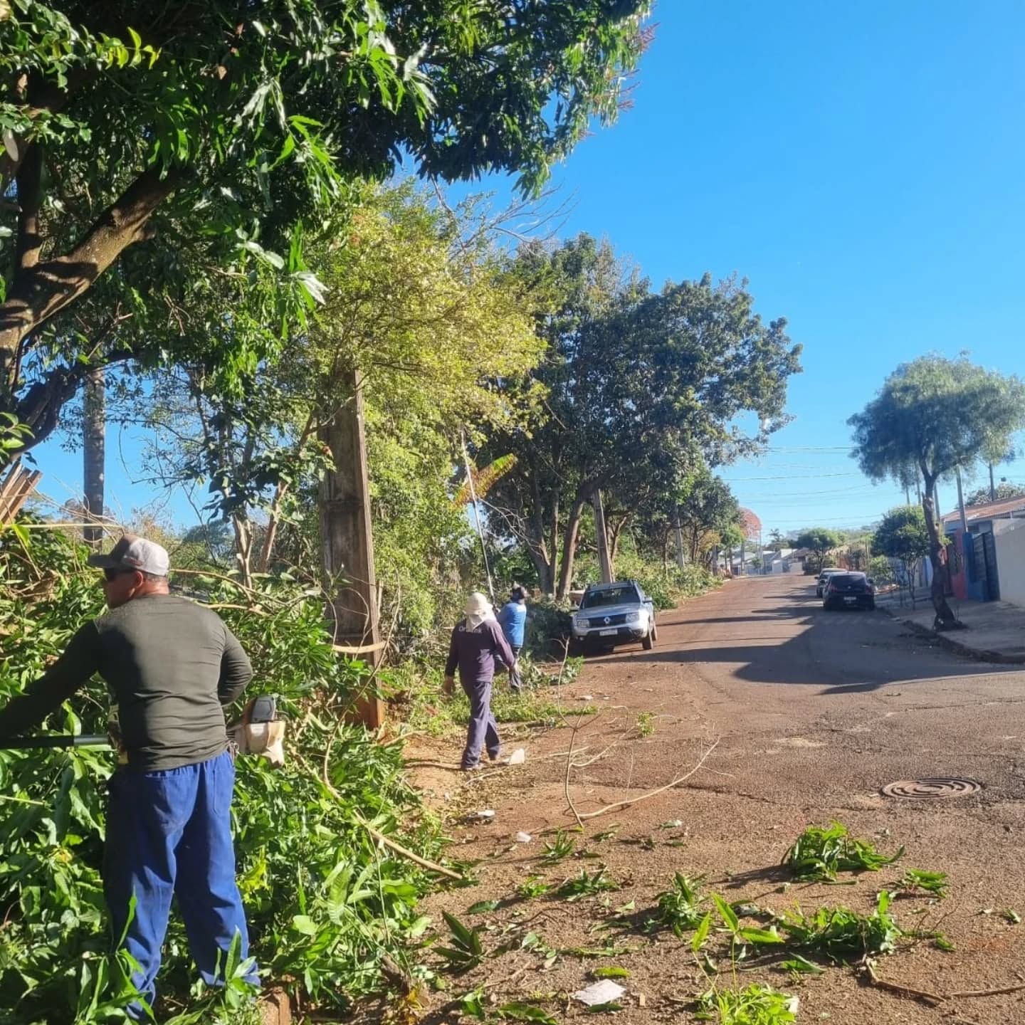 Os servidores, liderados por Miguel Consani Nogueira, fizeram os serviços de poda de levantamento, poda de limpeza, poda para desobstrução da iluminação pública e supressão de árvores exóticas invasoras, como a leucena e o ipê de jardim.