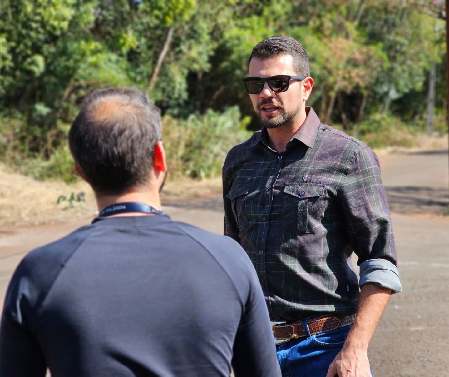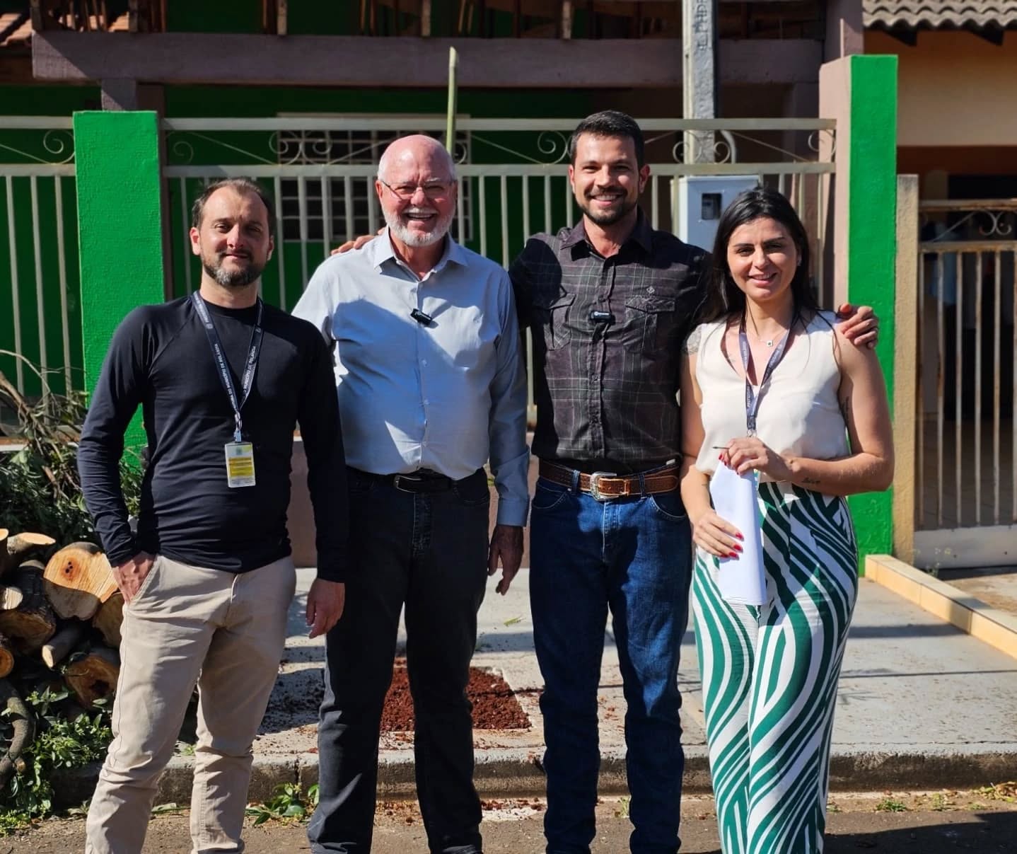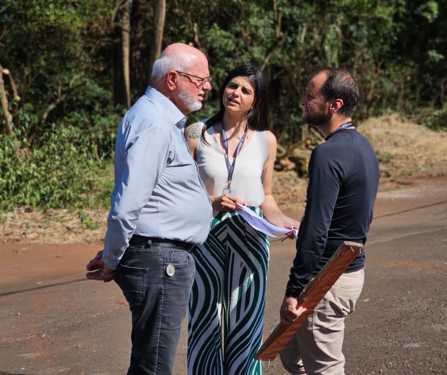 O prefeito Ailton Maistro, o secretário de Agricultura e Meio Ambiente, Lucas Schauff, o diretor de arborização, Miguel Consani Nogueira, o diretor Renan Andrade e a fiscal Alessandra Silva acompanharam o início dos trabalhos, no Jardim Barigui, na tarde desta segunda-feira, dia 18 de agosto.