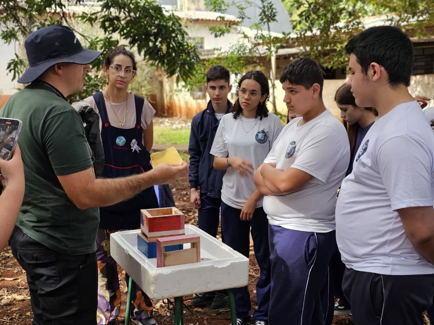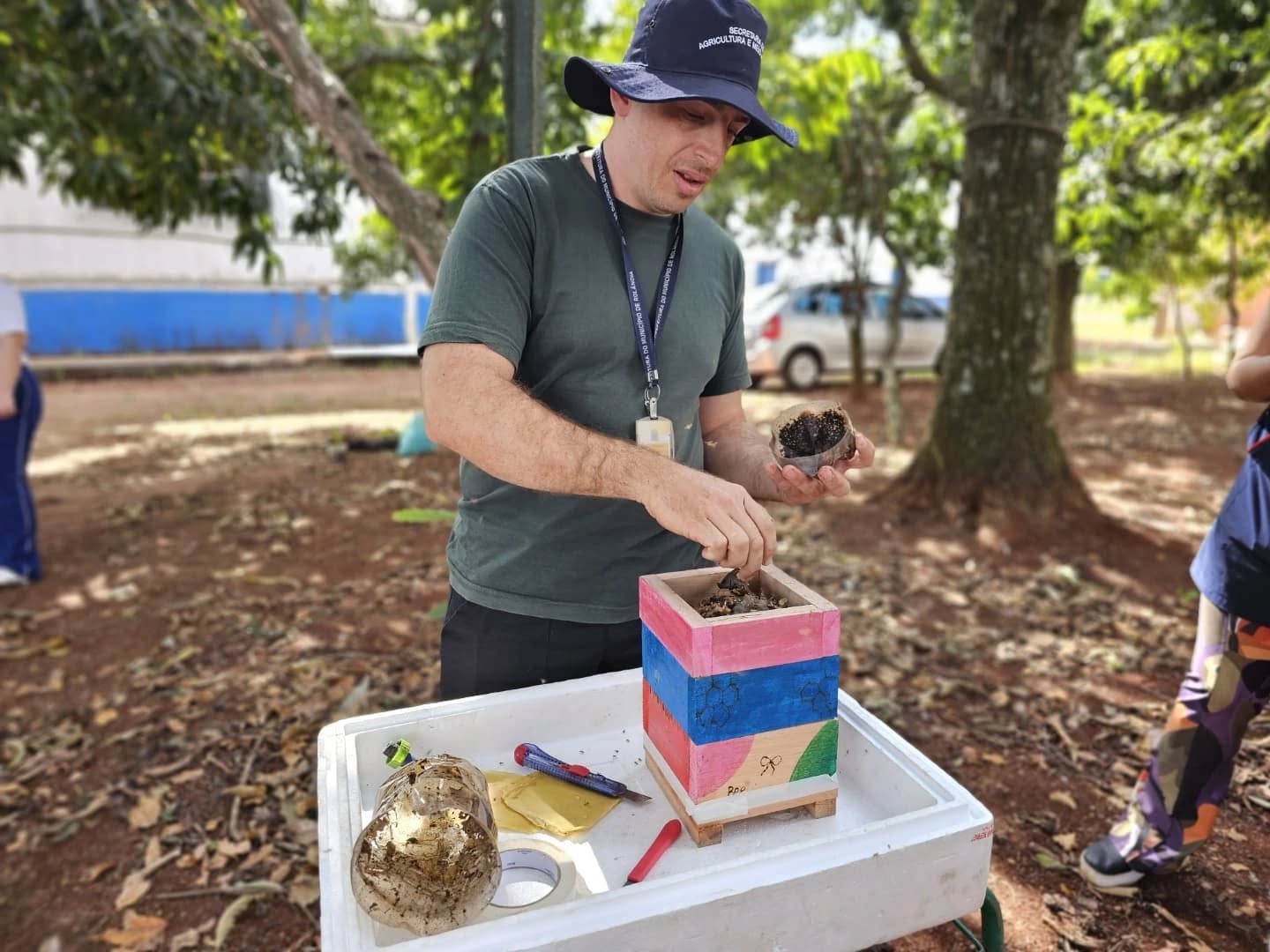 A secretaria de Agricultura e Meio Ambiente (SEMMA), por meio do servidor Marlon Gomes, ministrou uma oficina de manejo das abelhas sem ferrão aos alunos do Colégio Estadual Presidente Kennedy, centro. Lá, há uma colmeia com essa espécie.