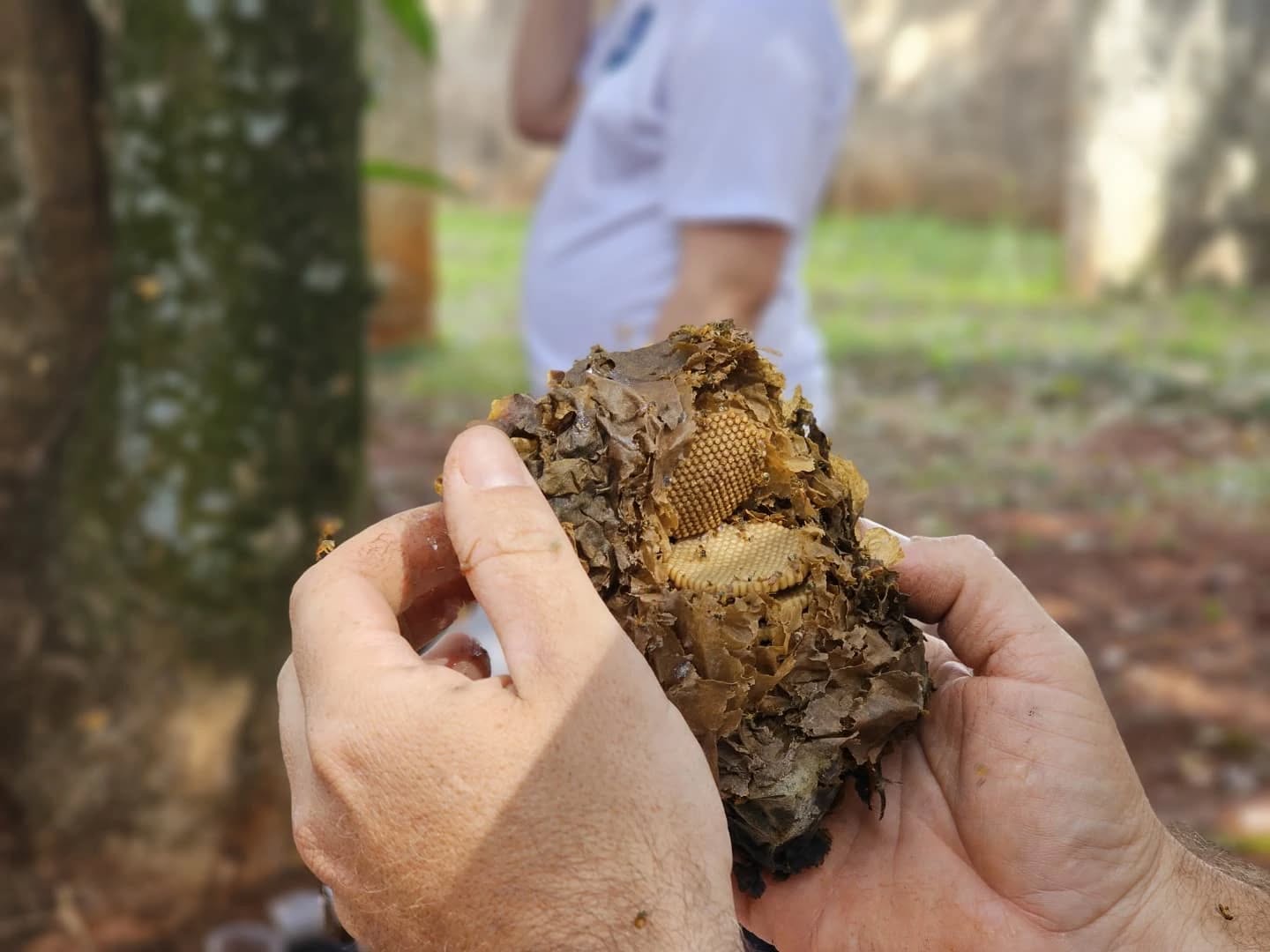 O trabalho de Meliponicultura (prática da criação de abelhas nativas sem ferrão) é uma atividade que une produção sustentável de mel e seus derivados com a conservação ambiental.