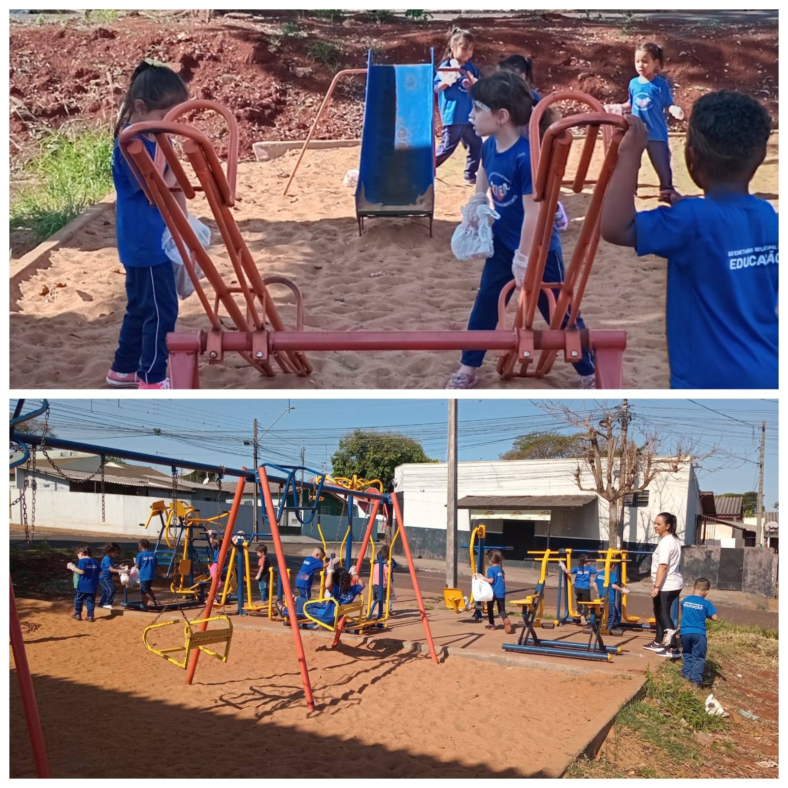 Na volta para o Cmei, as crianças puderam brincar um pouco no parquinho que tinha no caminho.
