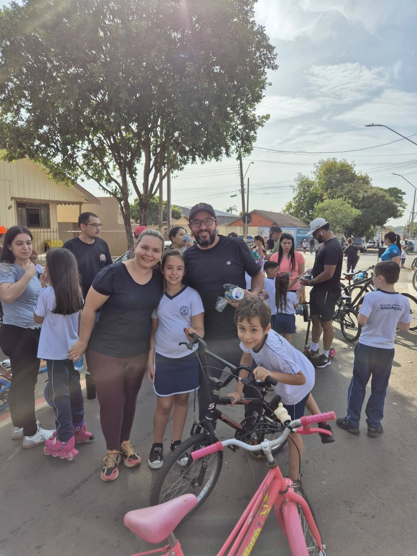 Na manhã deste sábado, 23 de agosto, a Escola Municipal Arthur da Costa e Silva, centro, realizou o seu primeiro passeio ciclístico com a comunidade escolar.